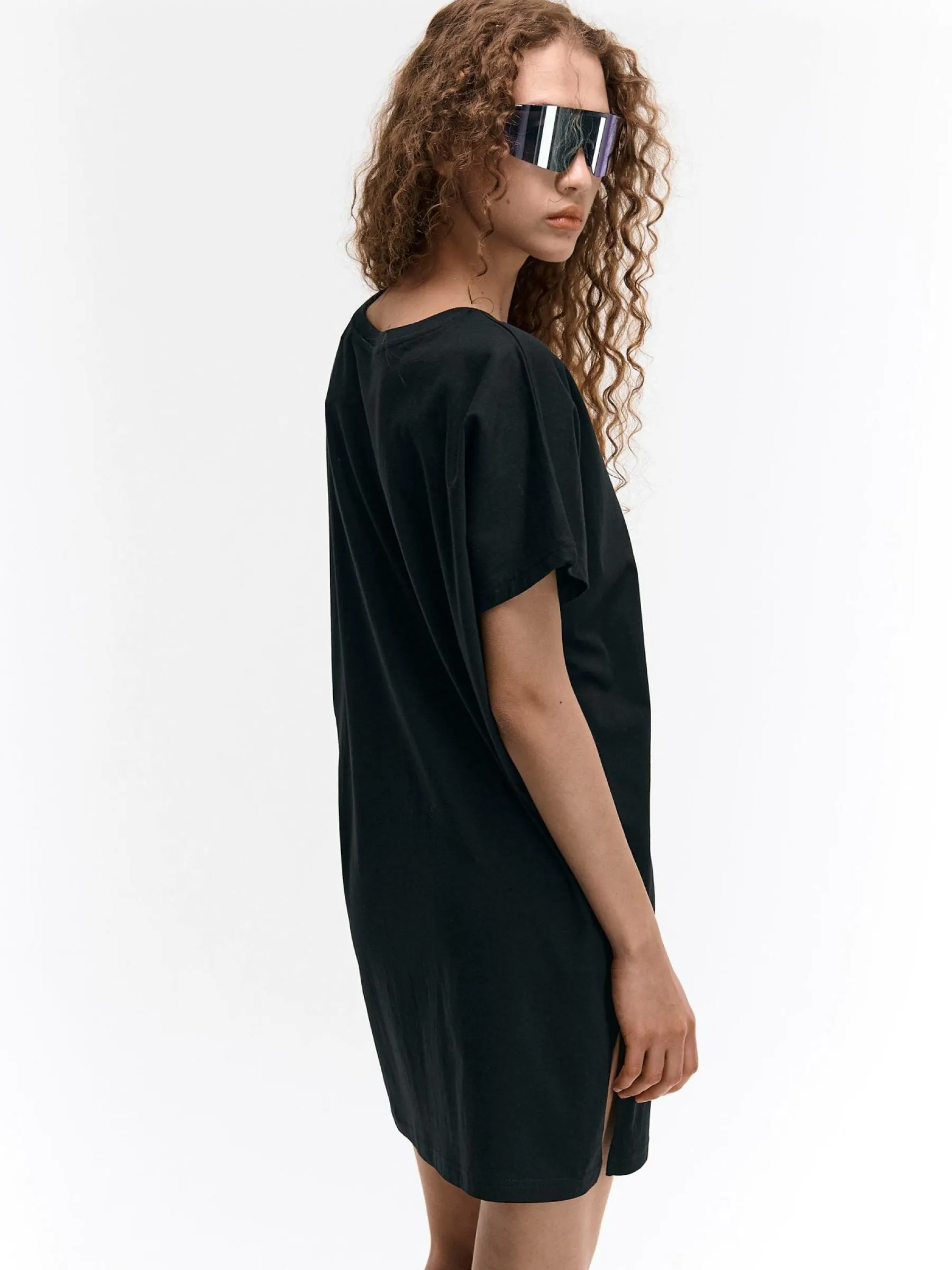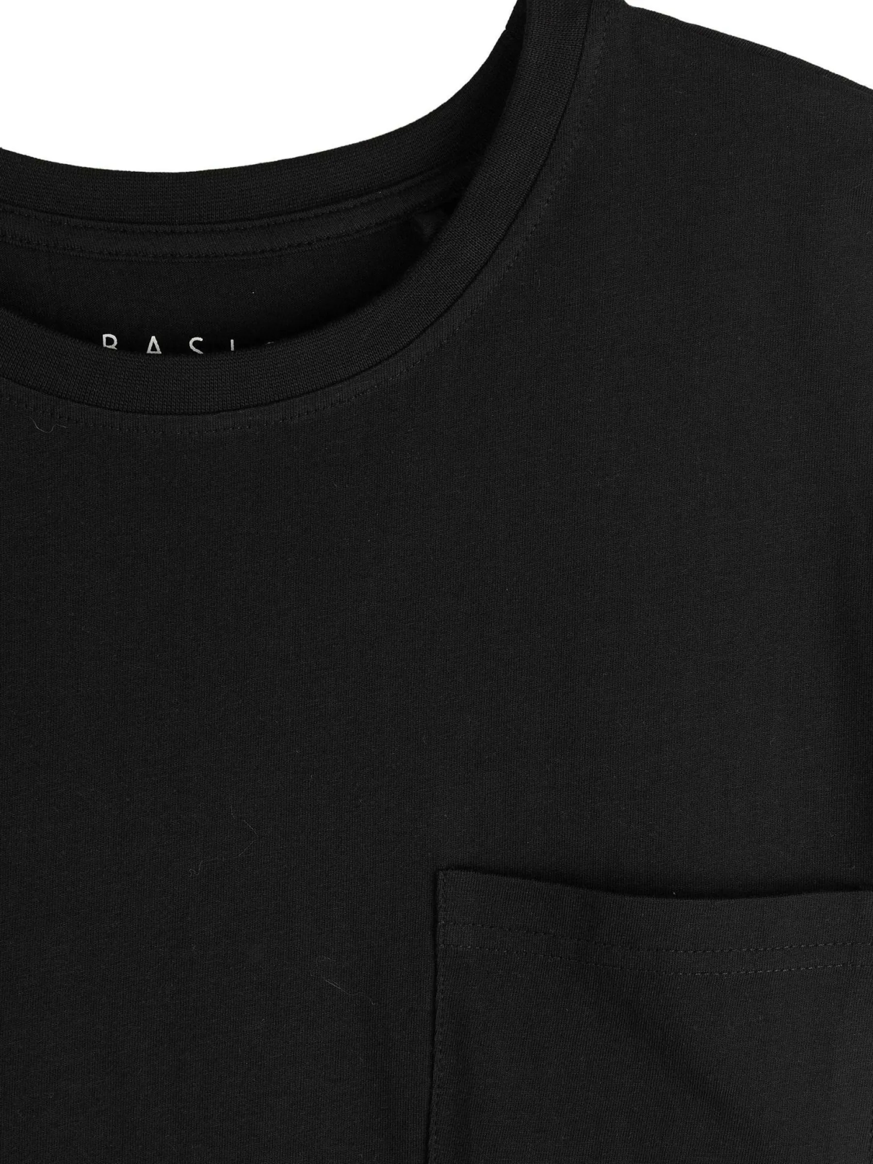 Kolor: czarnyKrój: regularTyp: koszulkaRekaw: krótki rękawDługość: dlugiePattern style: pojedynczy kolorDetal: nad…