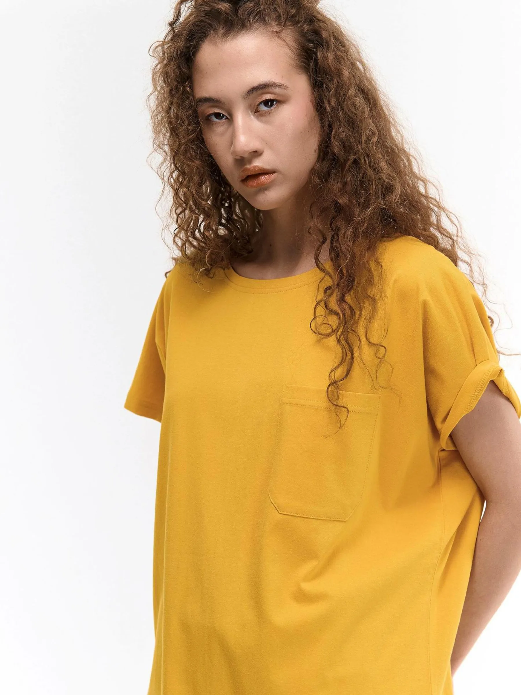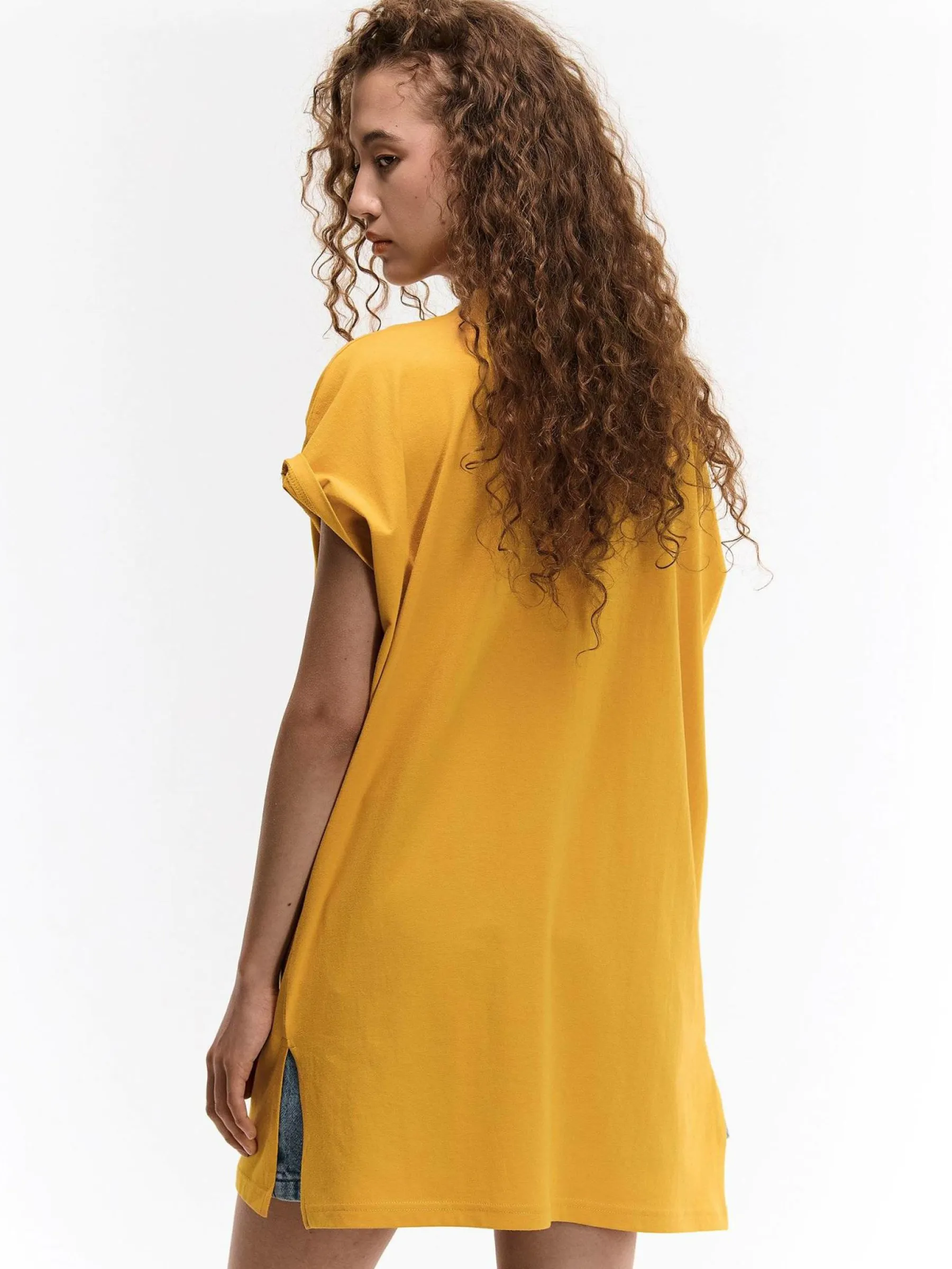 Kolor: żółty, pomarańczowyKrój: regularTyp: koszulkaRekaw: krótki rękawDługość: dlugiePattern style: pojedyncz…