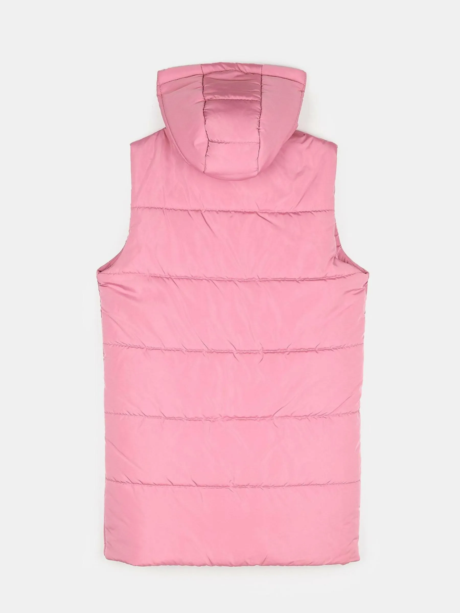 Kolor: różowyKrój: pikowaneTyp: kamizelkaRekaw: bez rękawówDługość: dlugiePattern style: pojedynczy kolorDetal: …