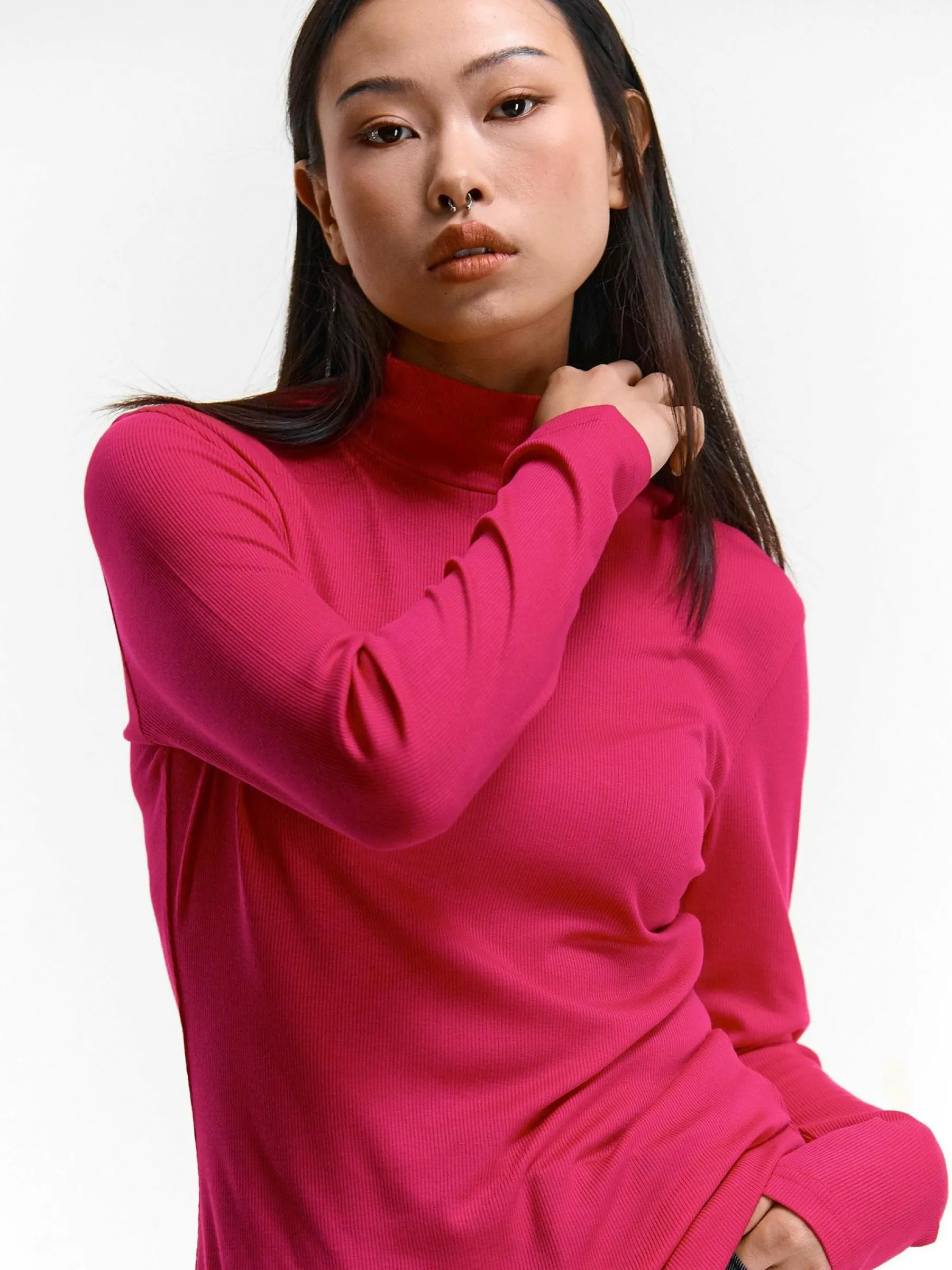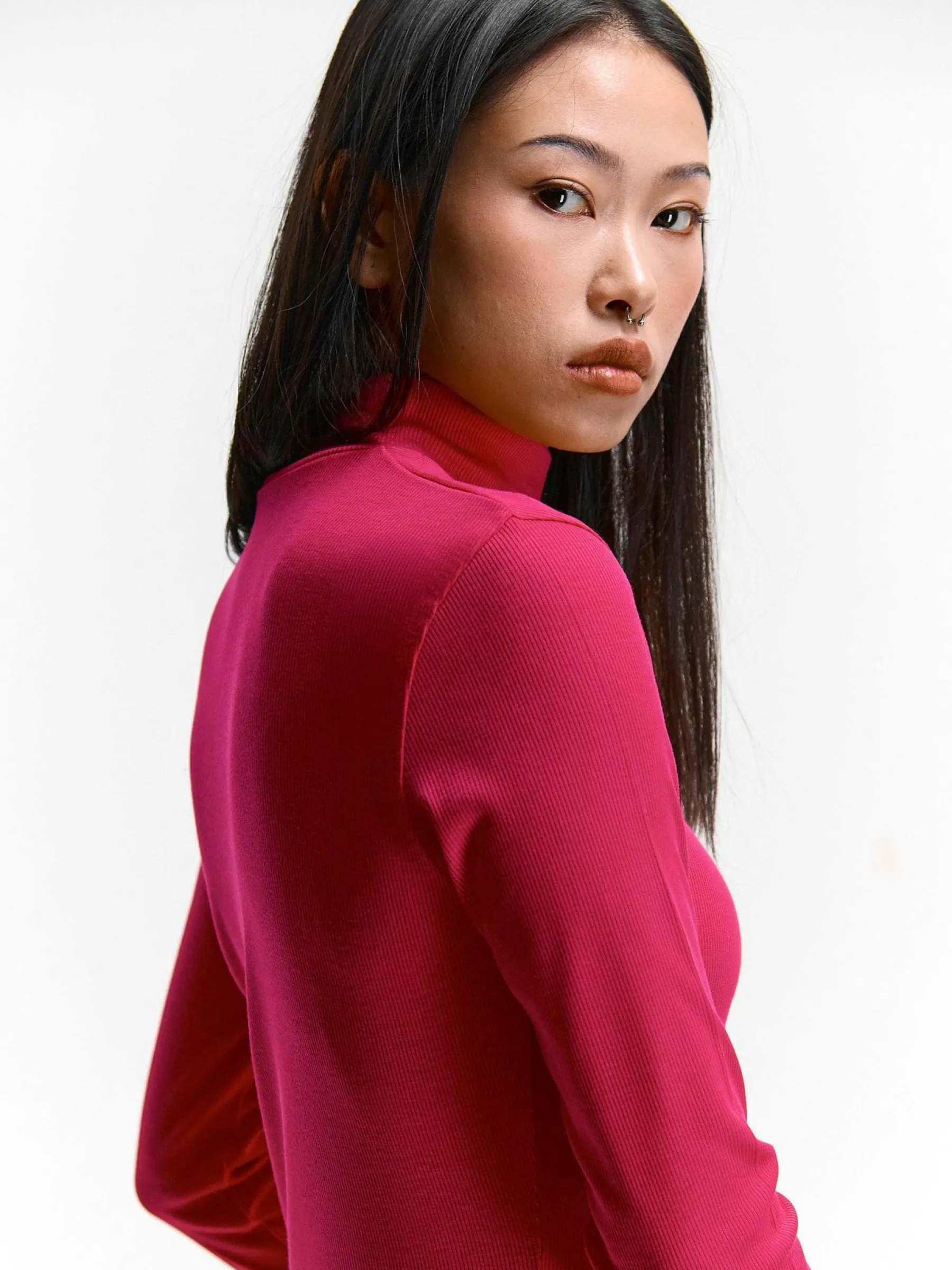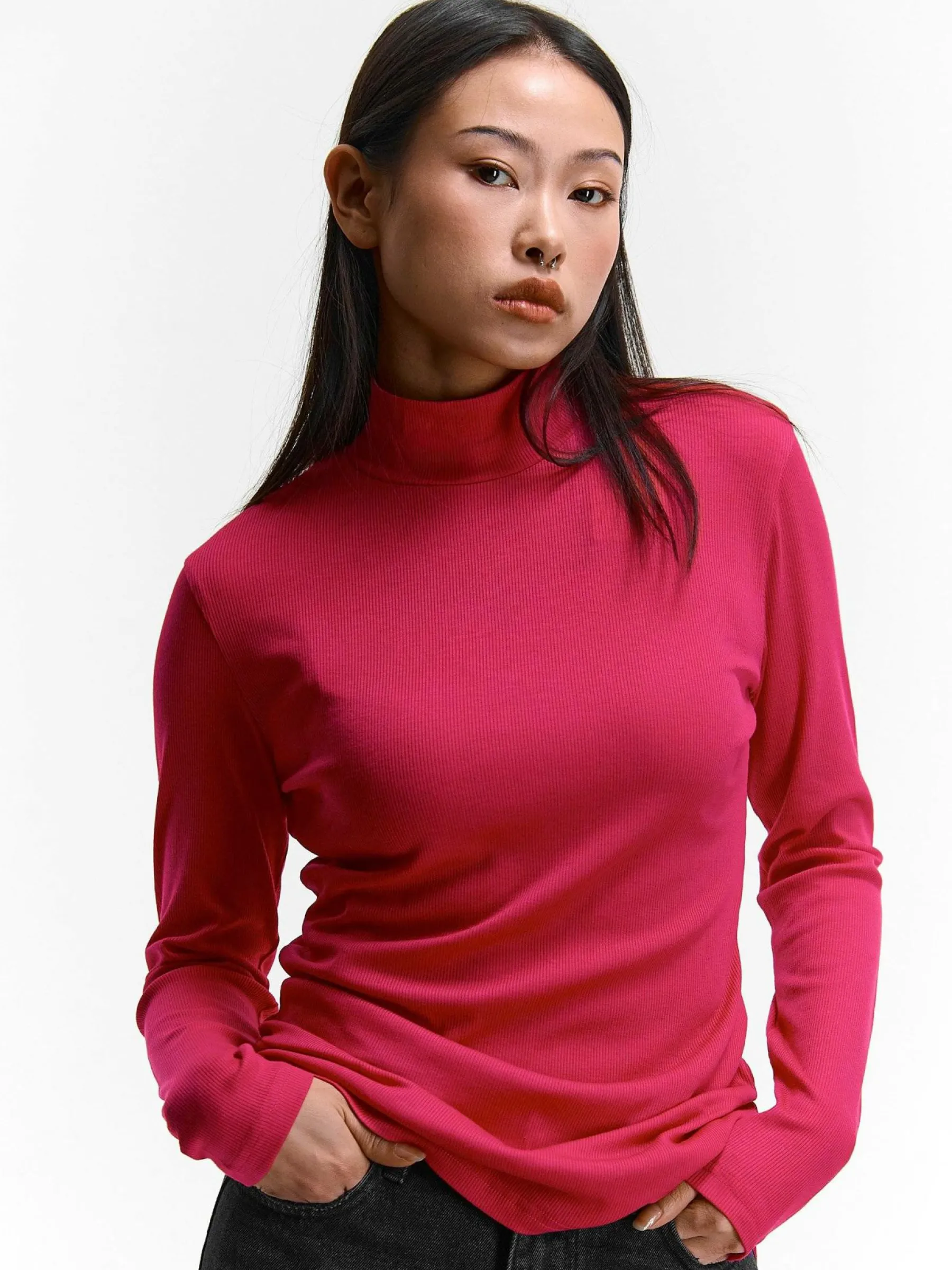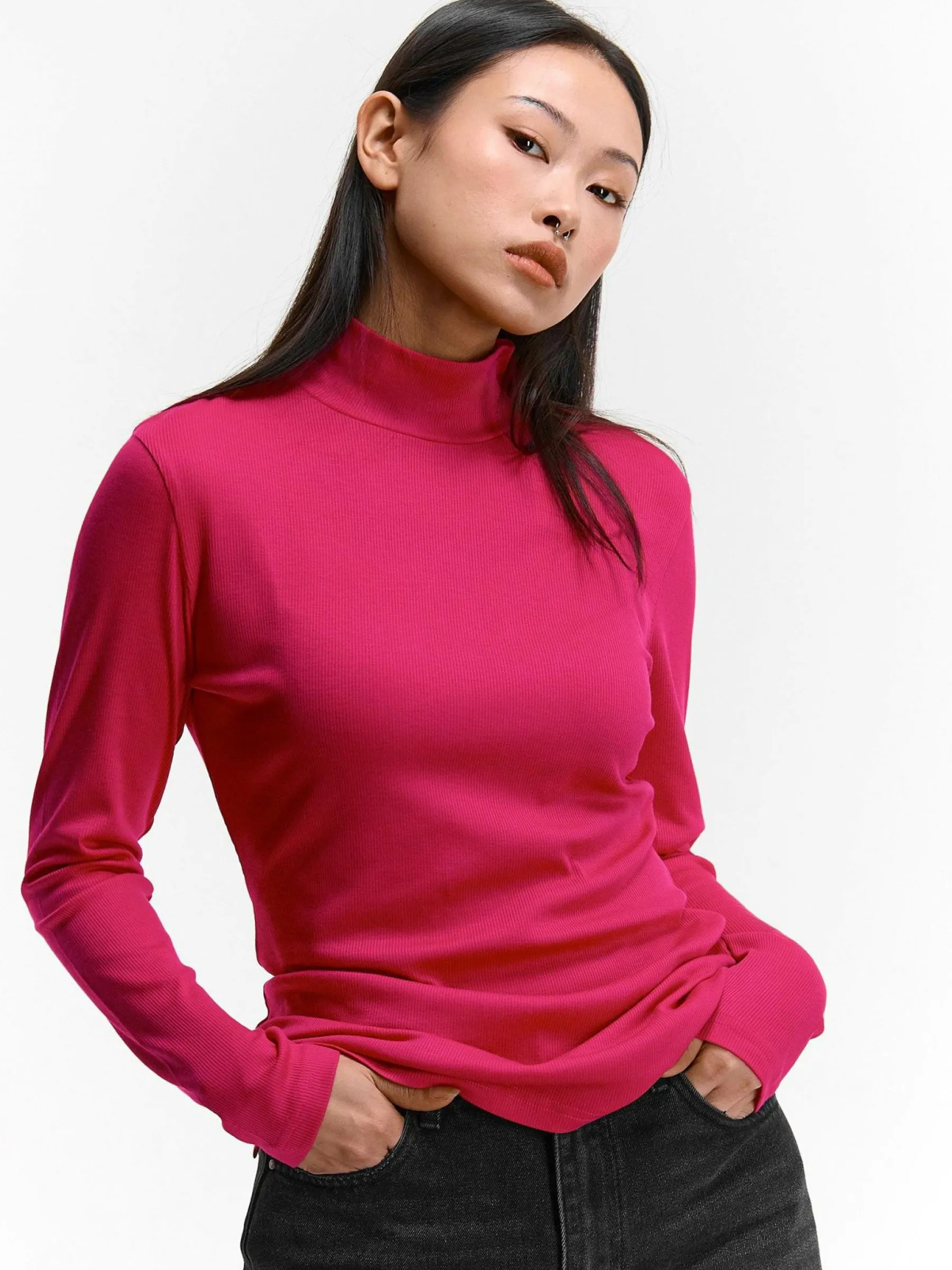 Kolor: różowyKrój: regularTyp: golfRekaw: długi rękawDługość: dlugiePattern style: pojedynczy kolor, żebrowanyD…