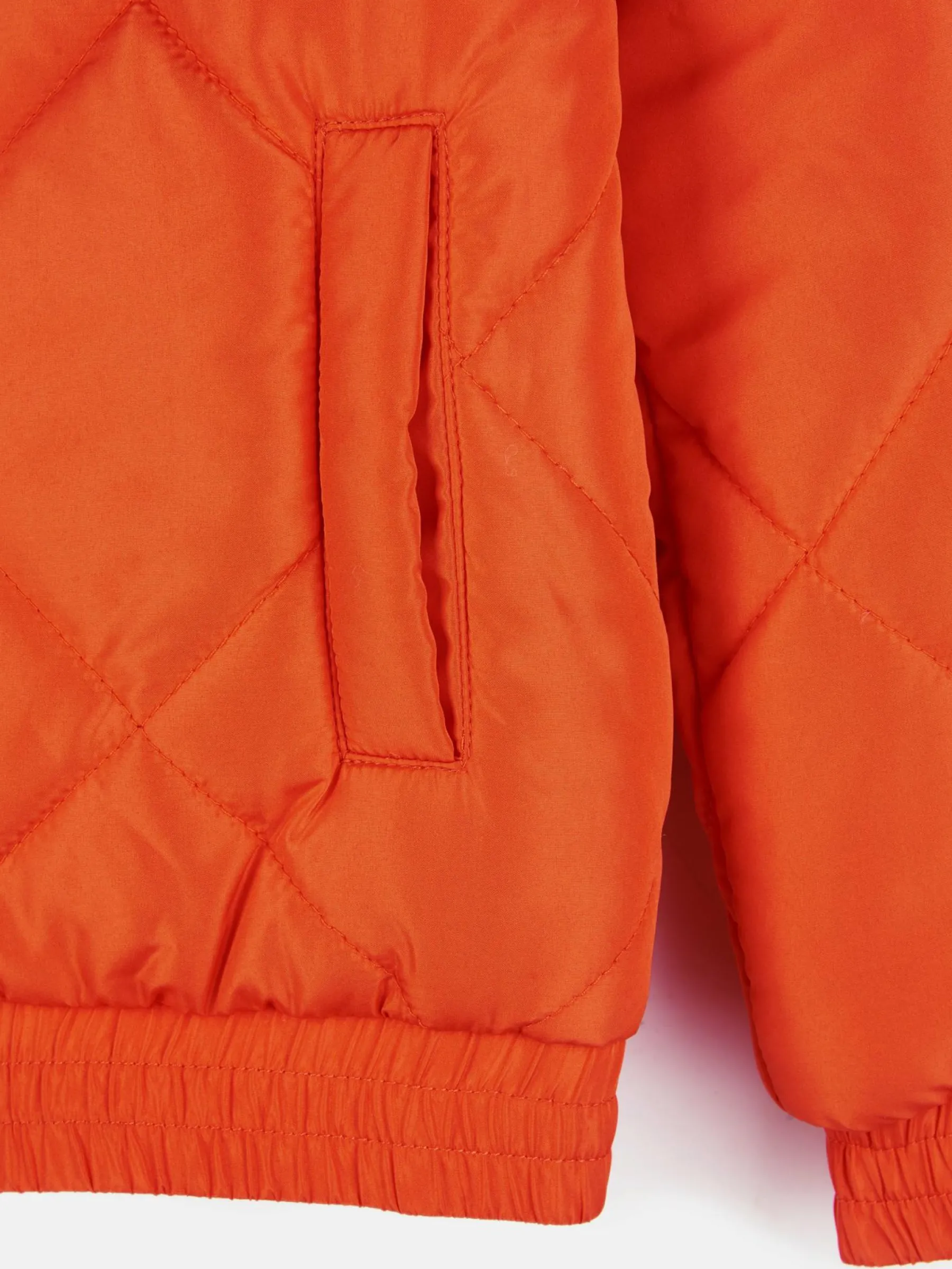 Kolor: pomarańczowyKrój: bomberTyp: kurtka przejściowaRekaw: długi rękawDługość: krótkiPattern style: pojedyncz…