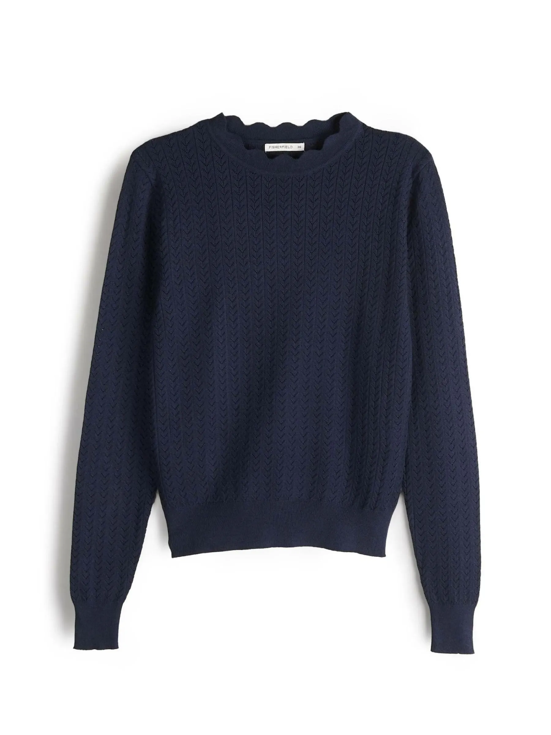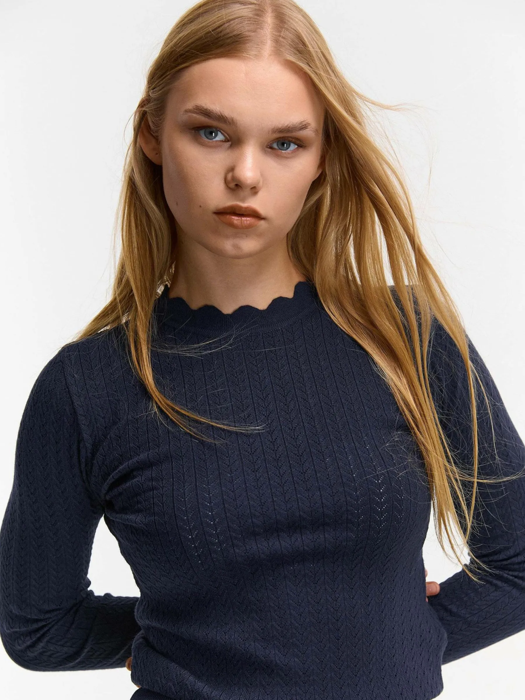 Kolor: granatowyKrój: regularTyp: swetryRekaw: długi rękawDługość: krótkiPattern style: pojedynczy kolor, struktu…