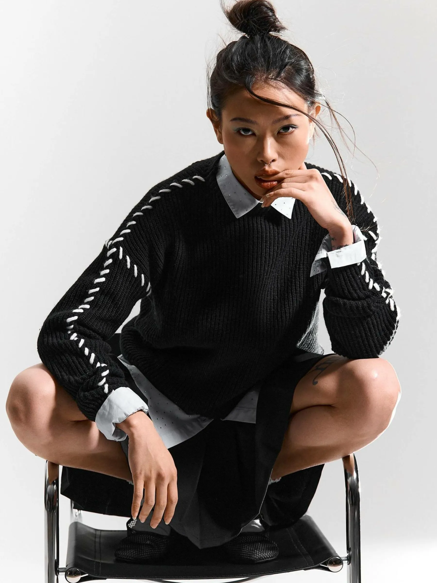 Kolor: czarnyKrój: regularTyp: swetryRekaw: długi rękawDługość: krótkiPattern style: pojedynczy kolor, żebrowany…