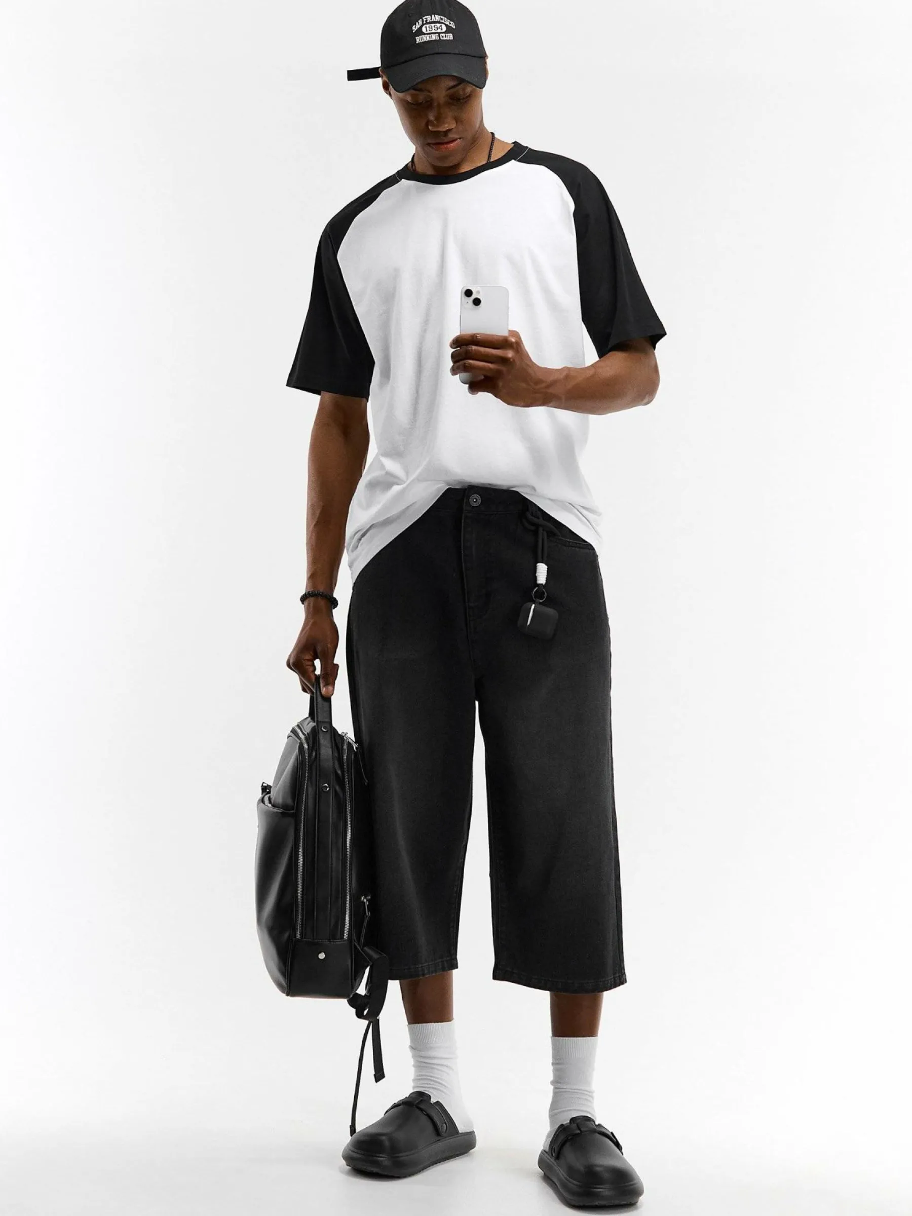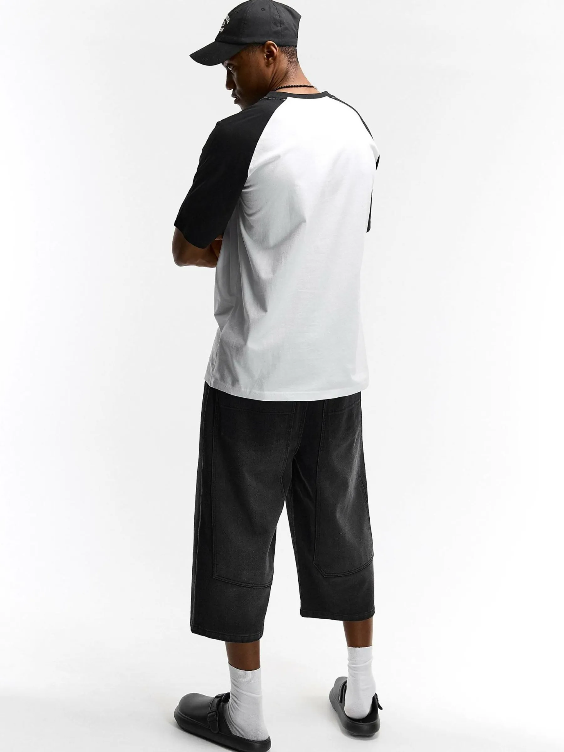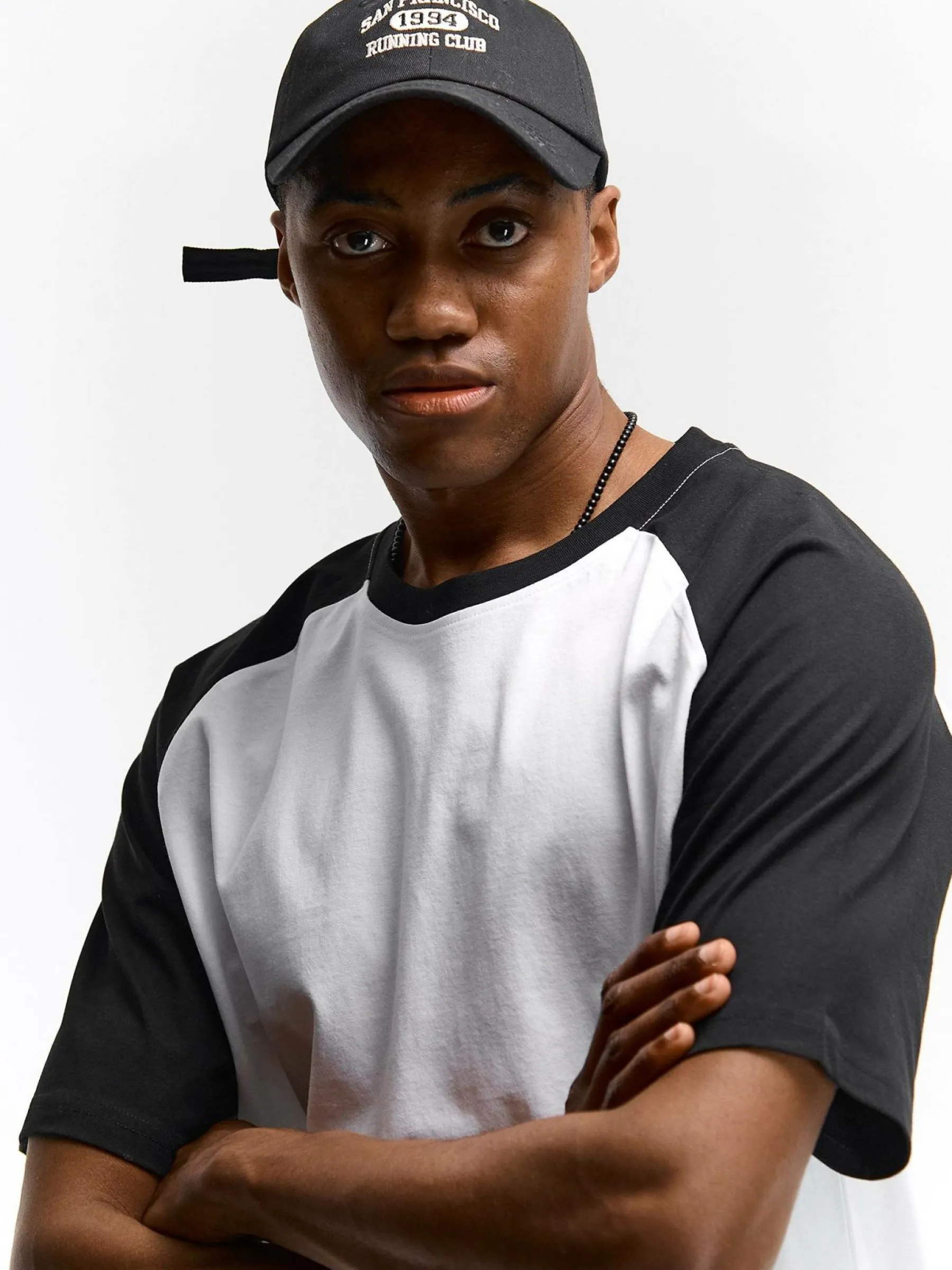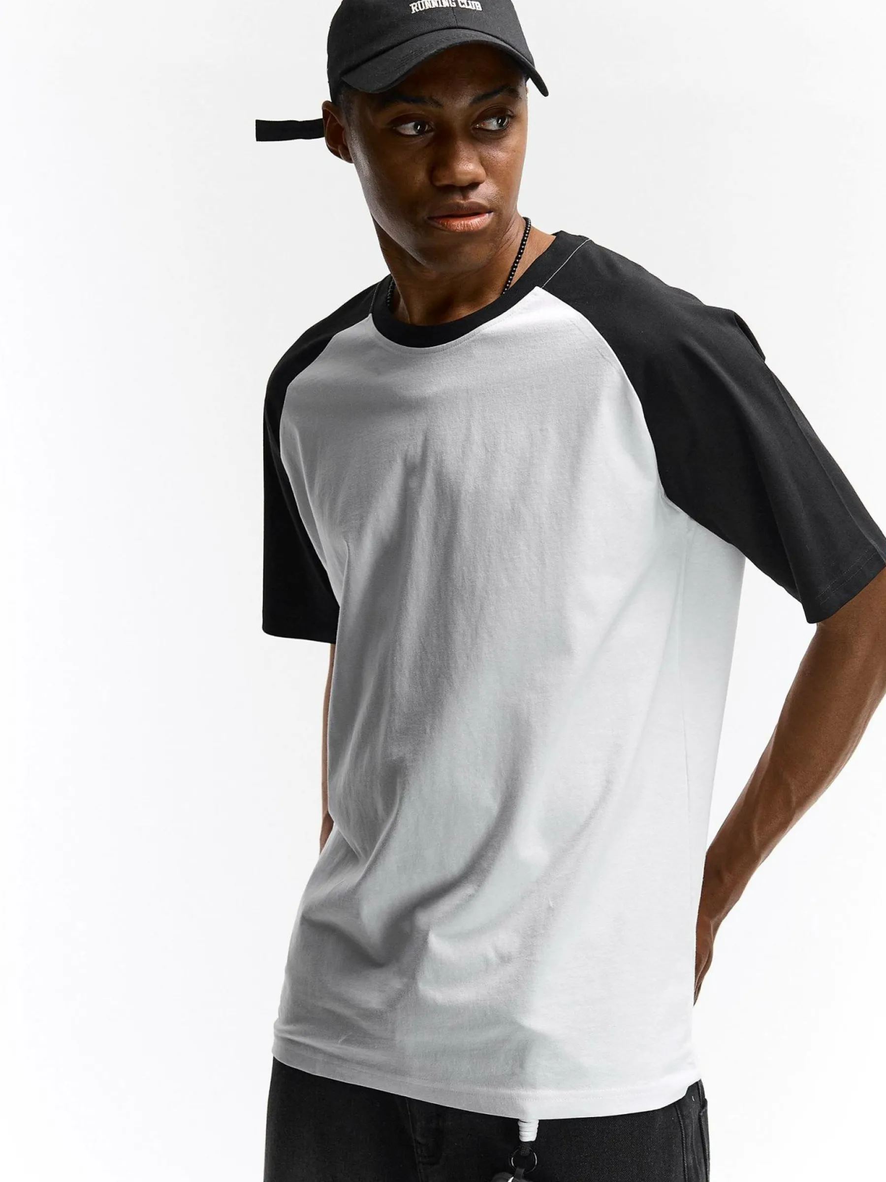 Kolor: czarnyKrój: regularTyp: koszulkaRekaw: krótki rękawPattern style: z kontrastowymi rękawamiDetal: nad głowąM…
