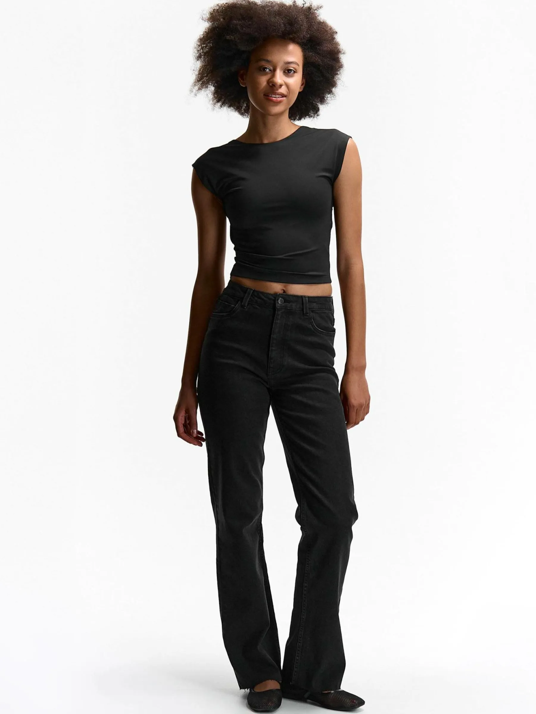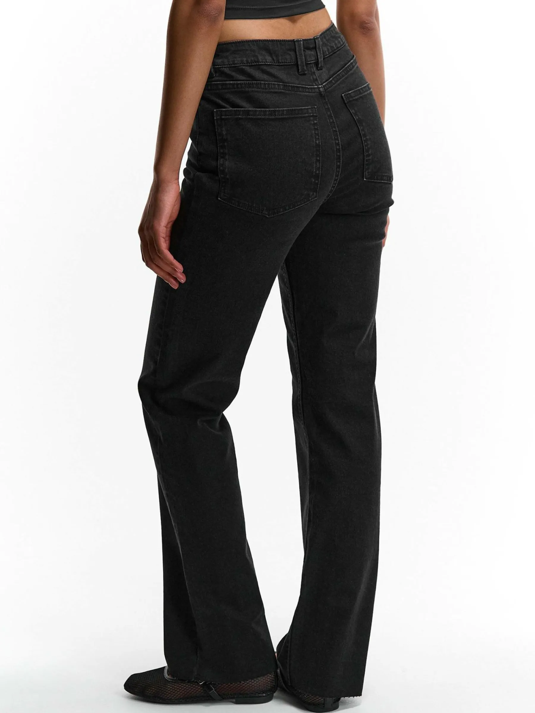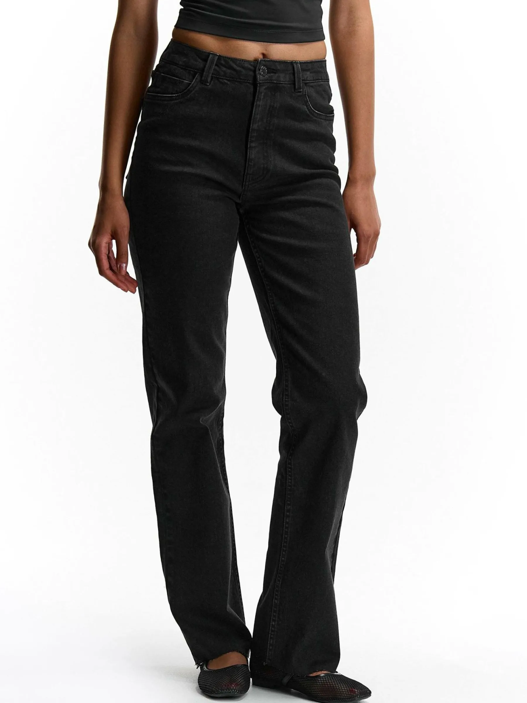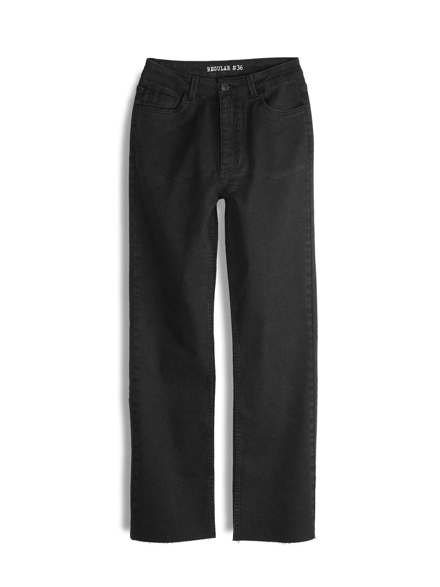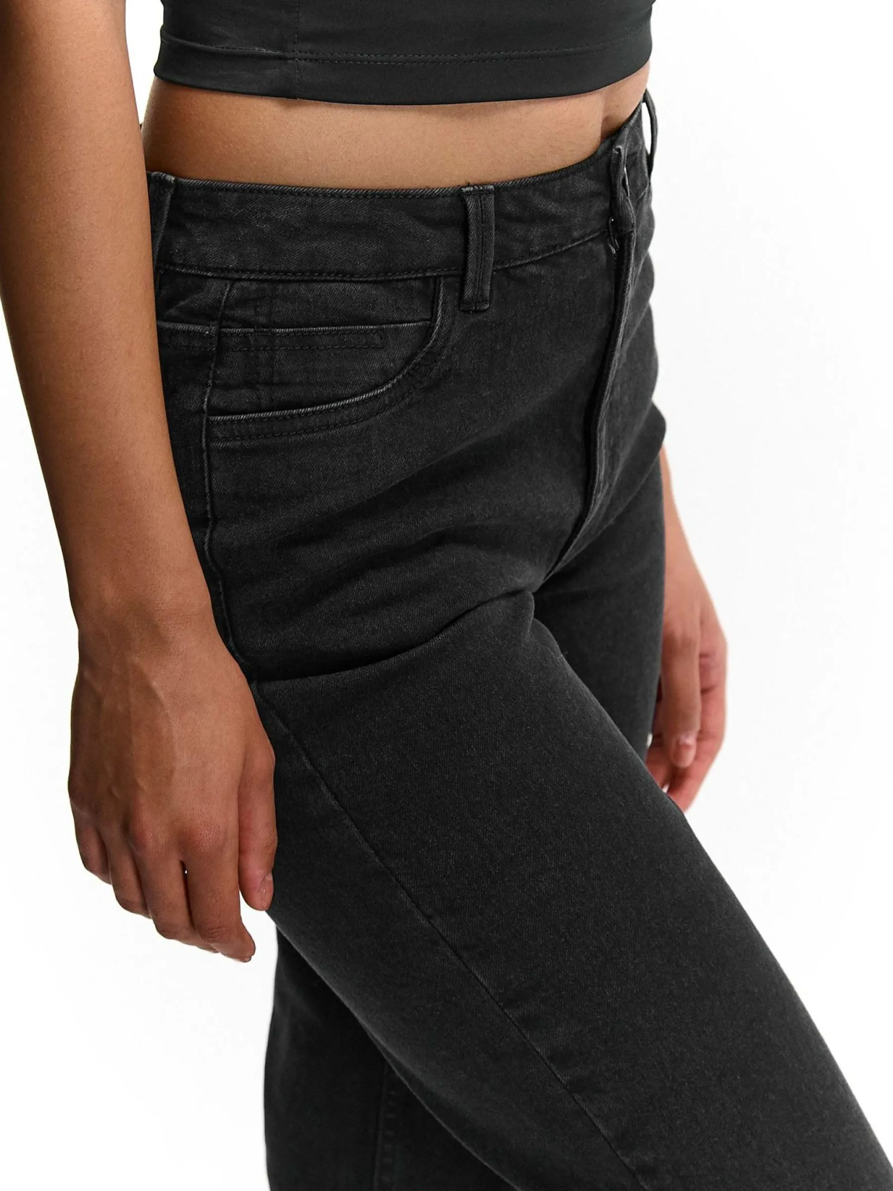 Kolor: czarnyKrój: straight, z wysokim stanemTyp: jeansPattern style: pojedynczy kolorDetal: na zamek, z kieszeniamiMat…
