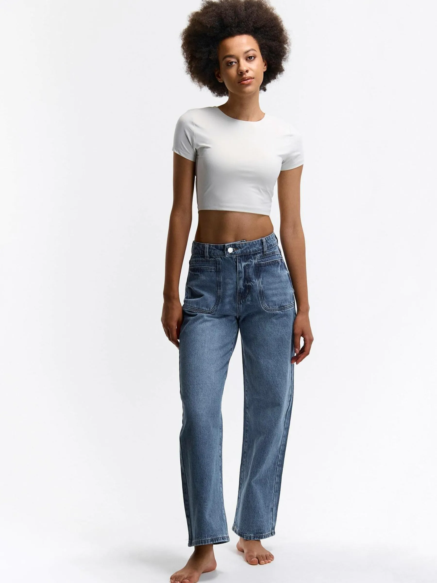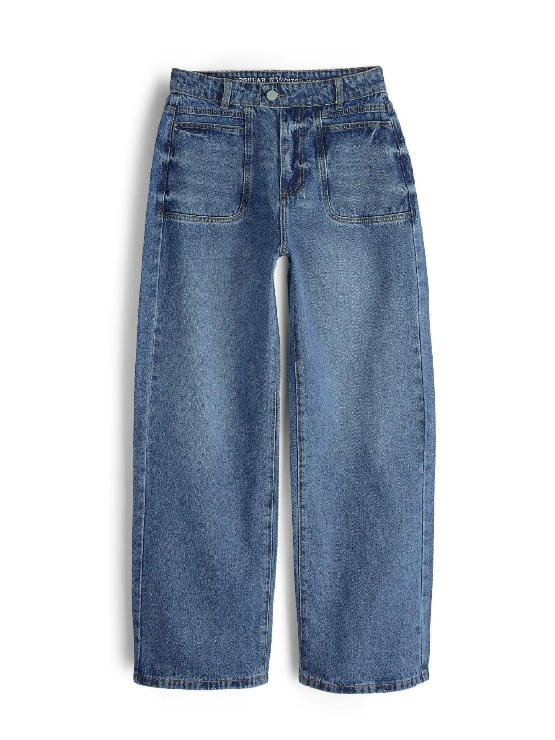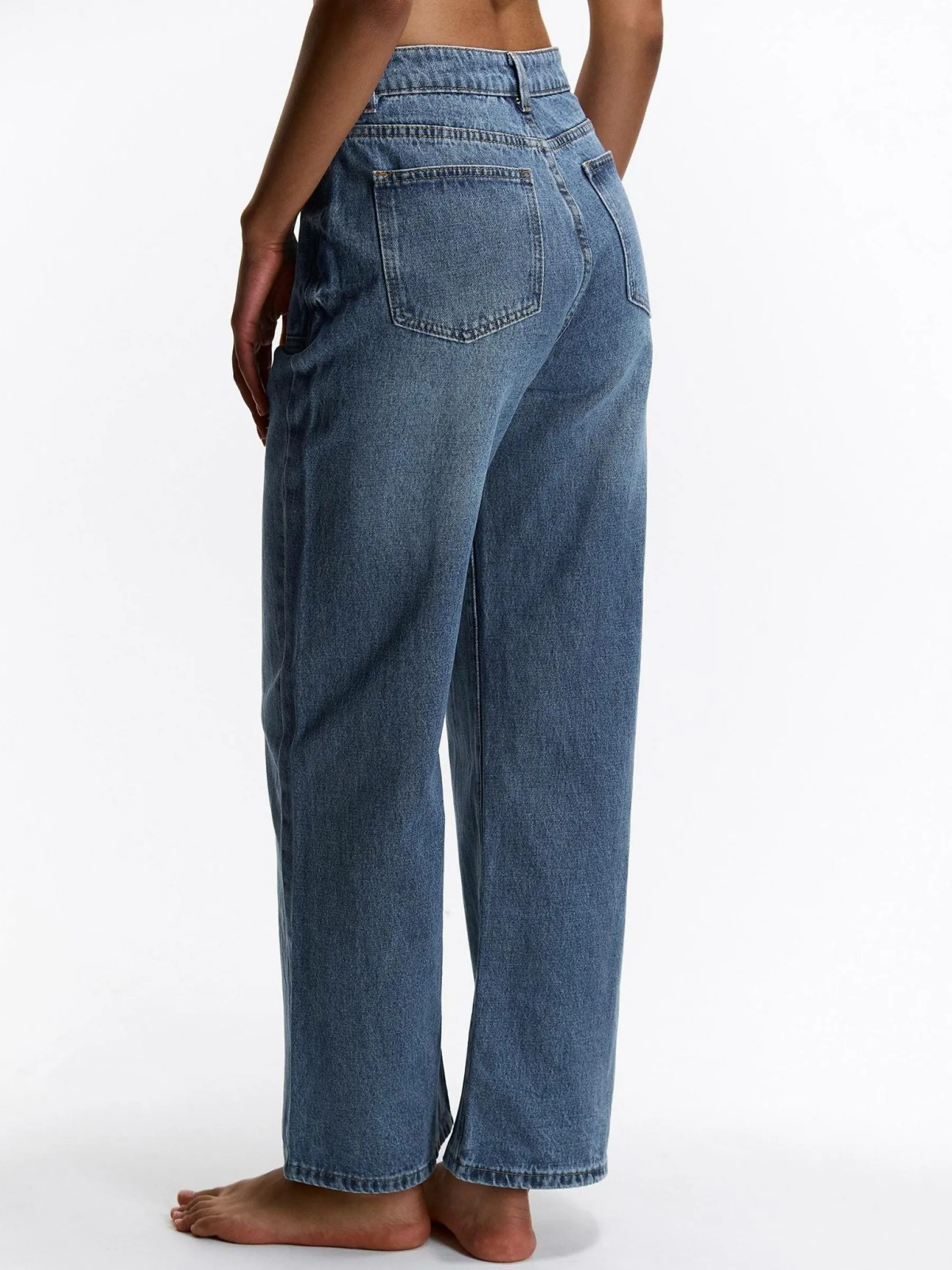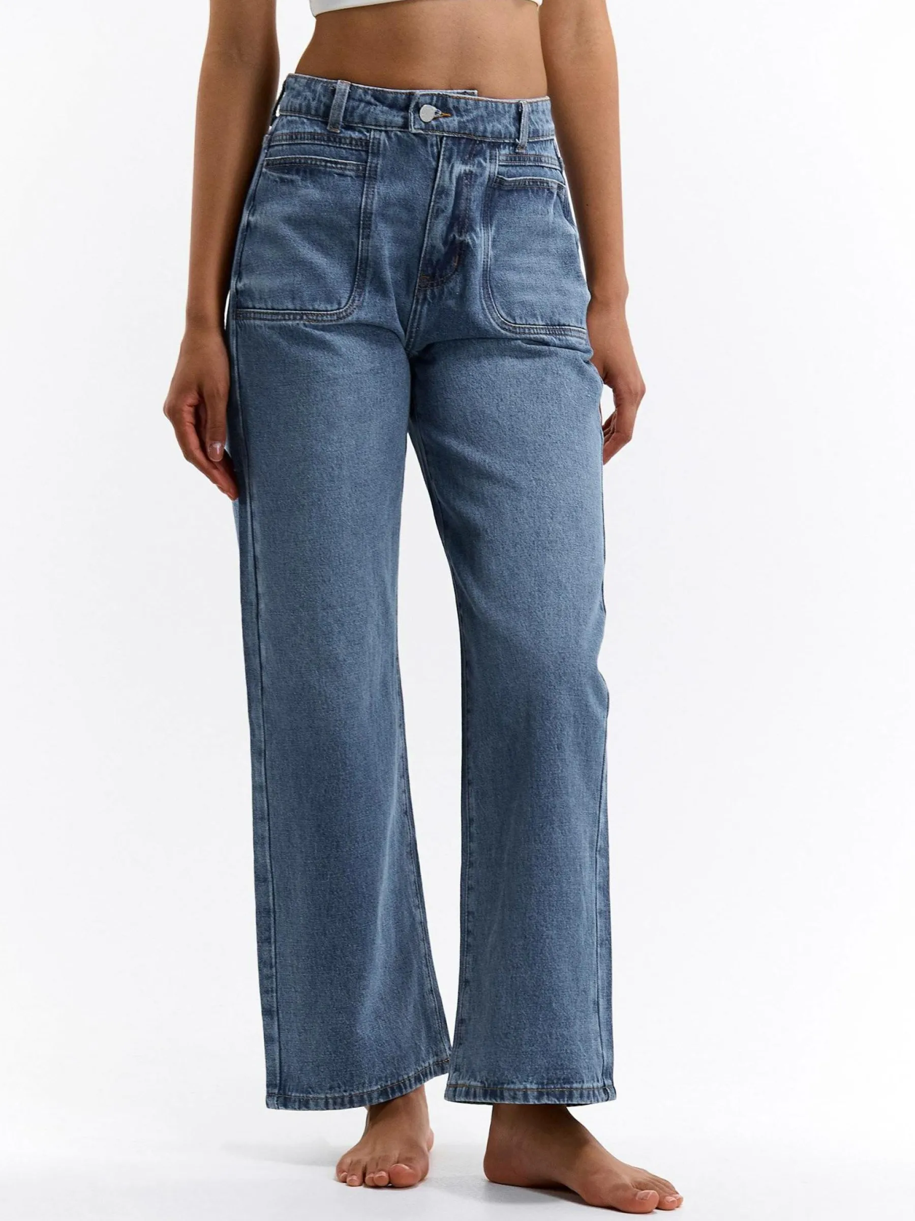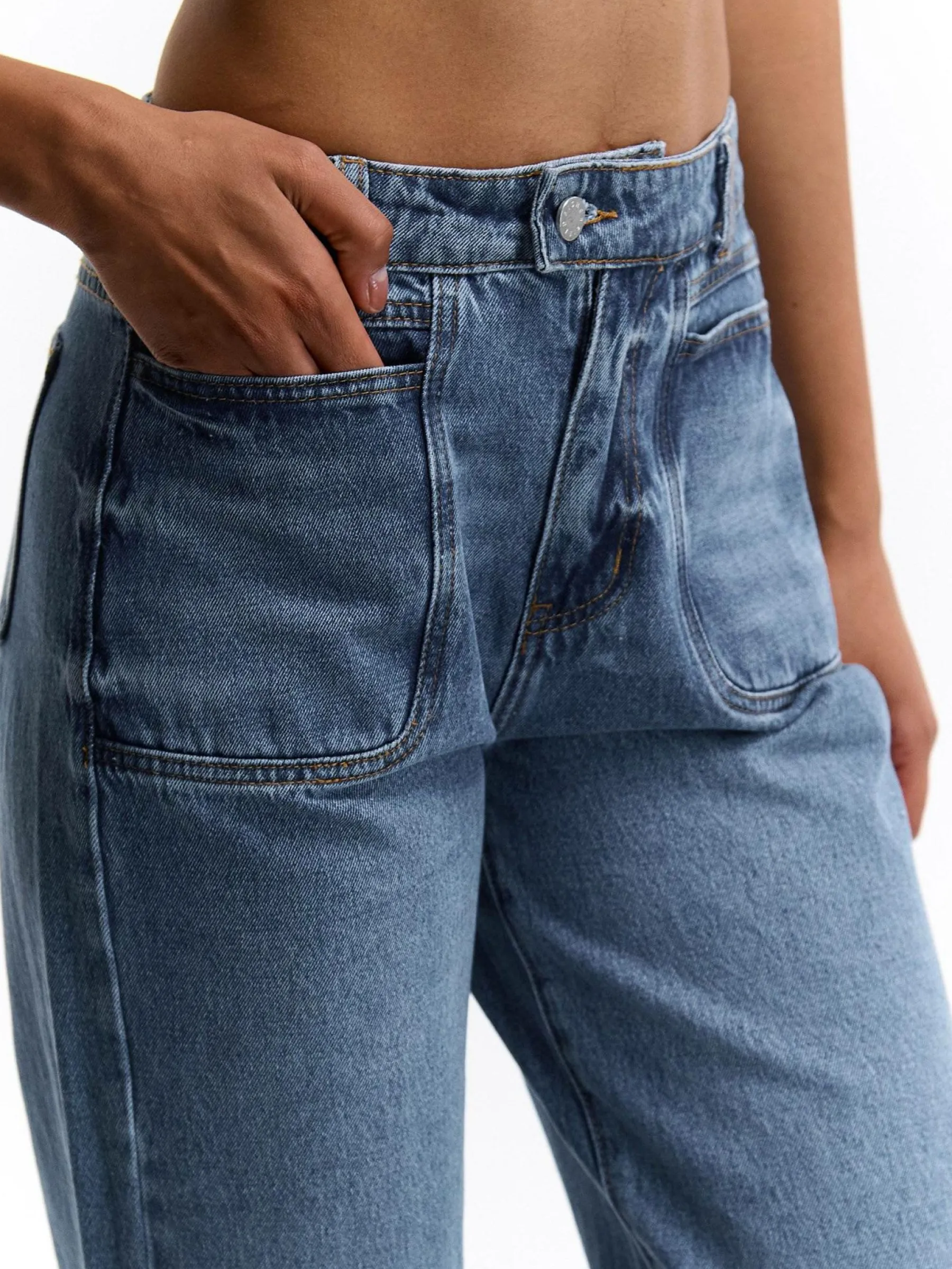 Kolor: niebieskiKrój: z wysokim stanem, straightTyp: jeansDługość: dlugiePattern style: pojedynczy kolorDetal: na za…