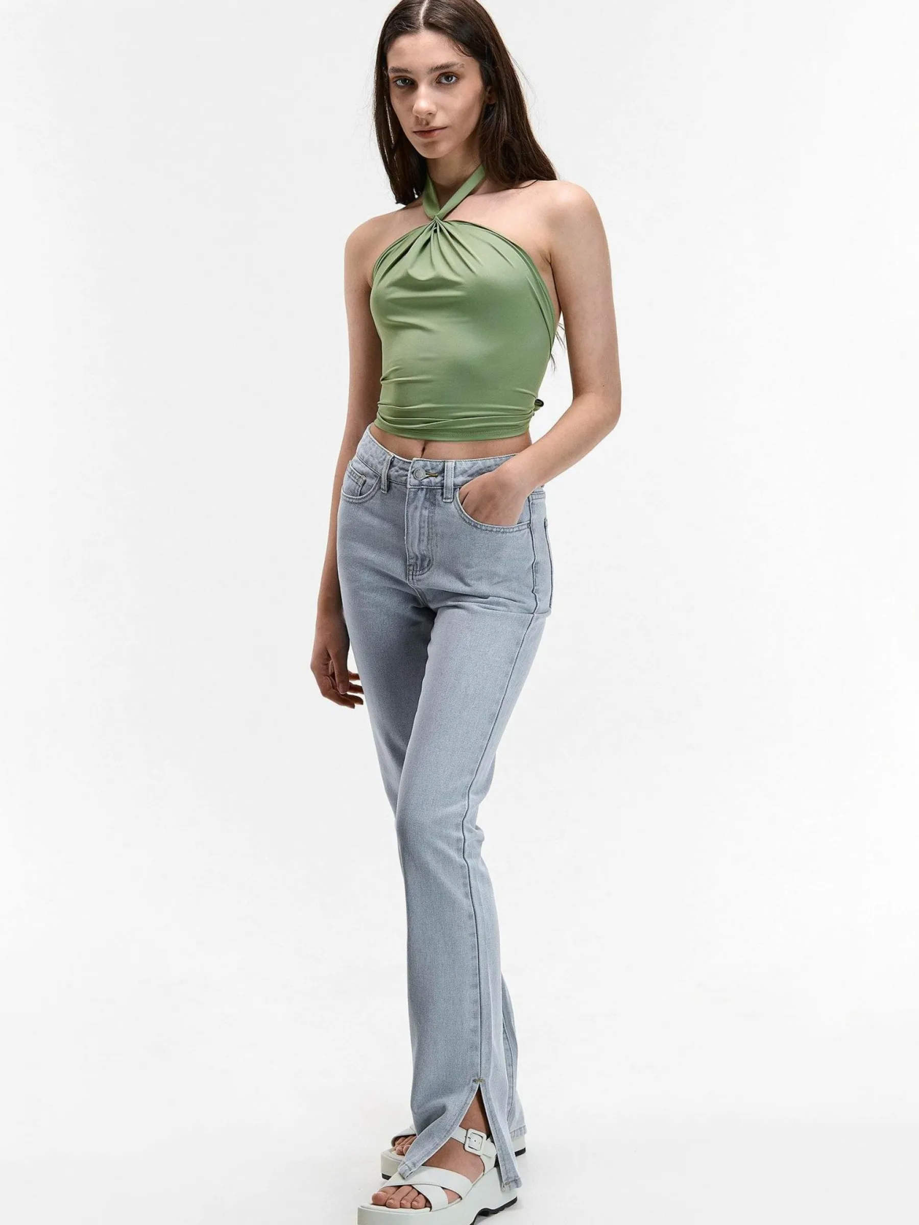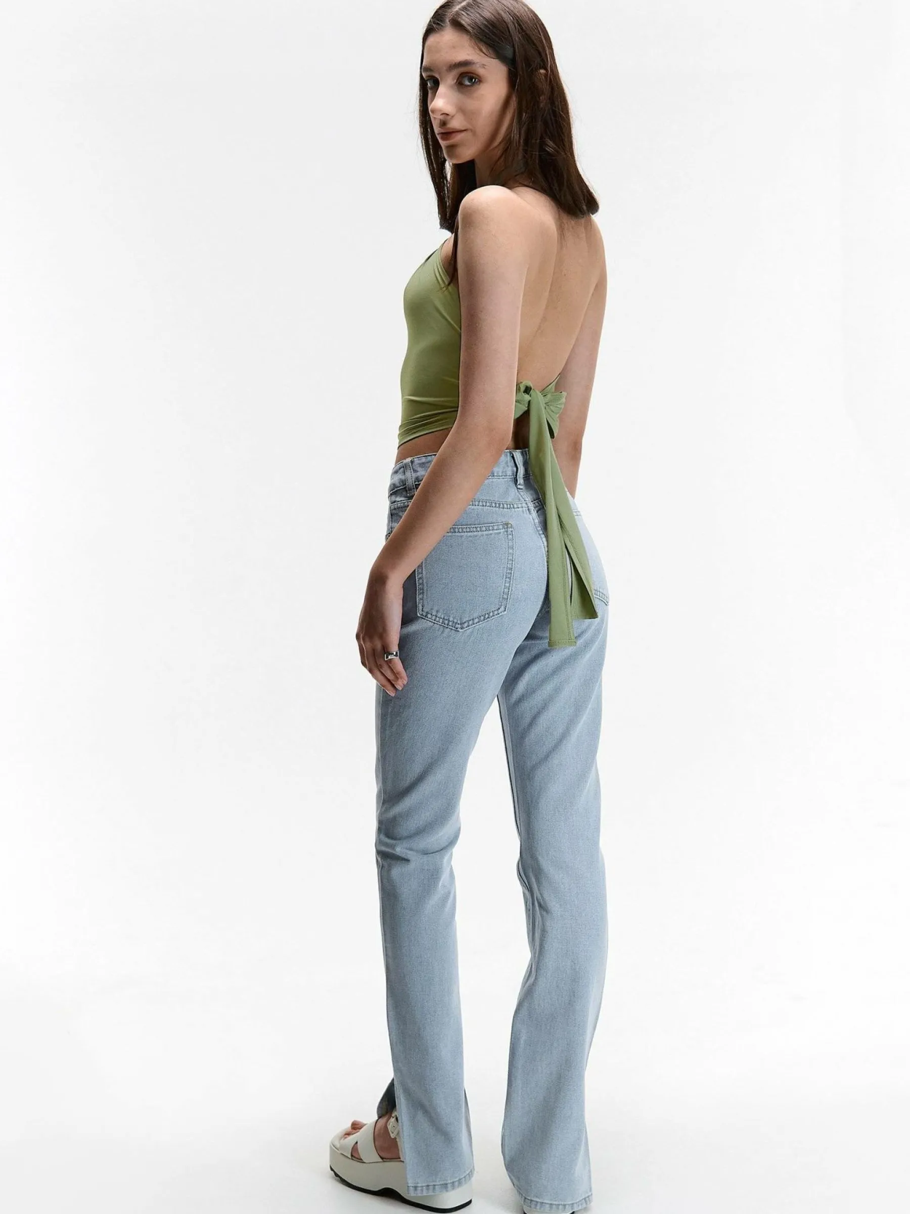 Kolor: niebieskiKrój: straightTyp: jeansDługość: dlugiePattern style: pojedynczy kolorDetal: na zamek, z kieszeniami…