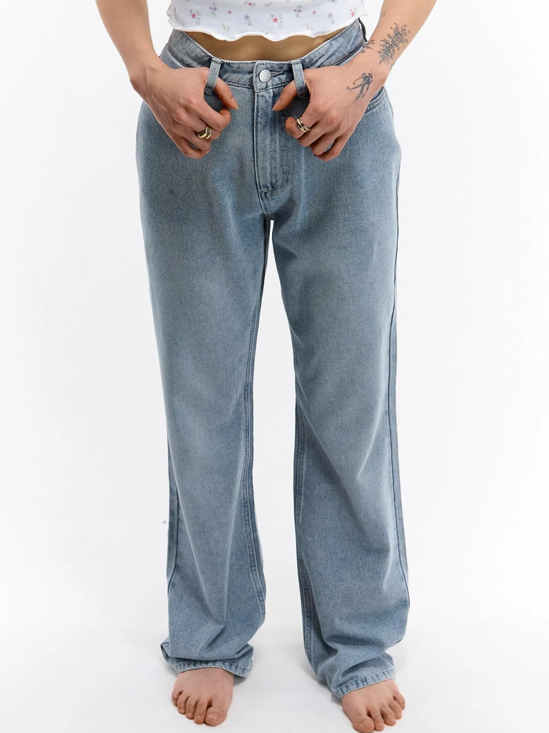 Kolor: niebieskiKrój: straightTyp: jeansDługość: dlugiePattern style: pojedynczy kolorDetal: na zamek, z kieszeniami…