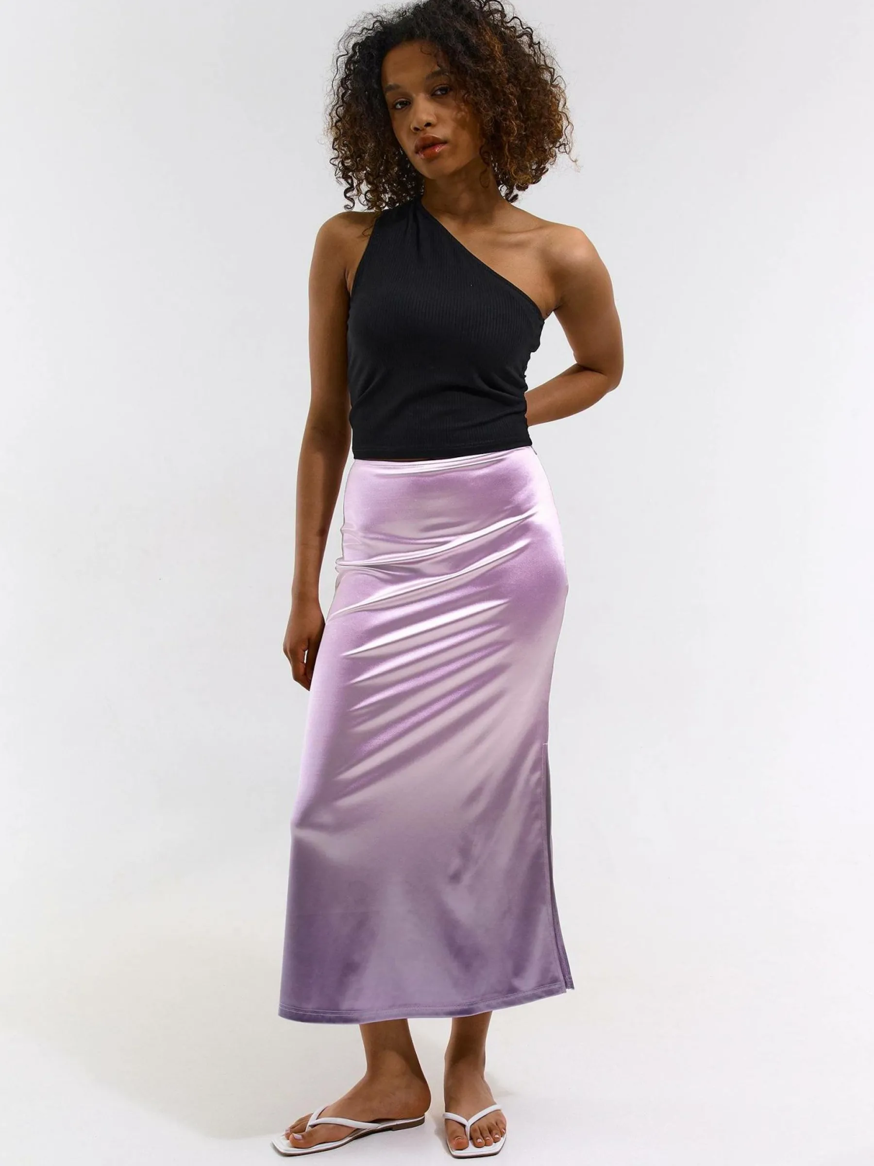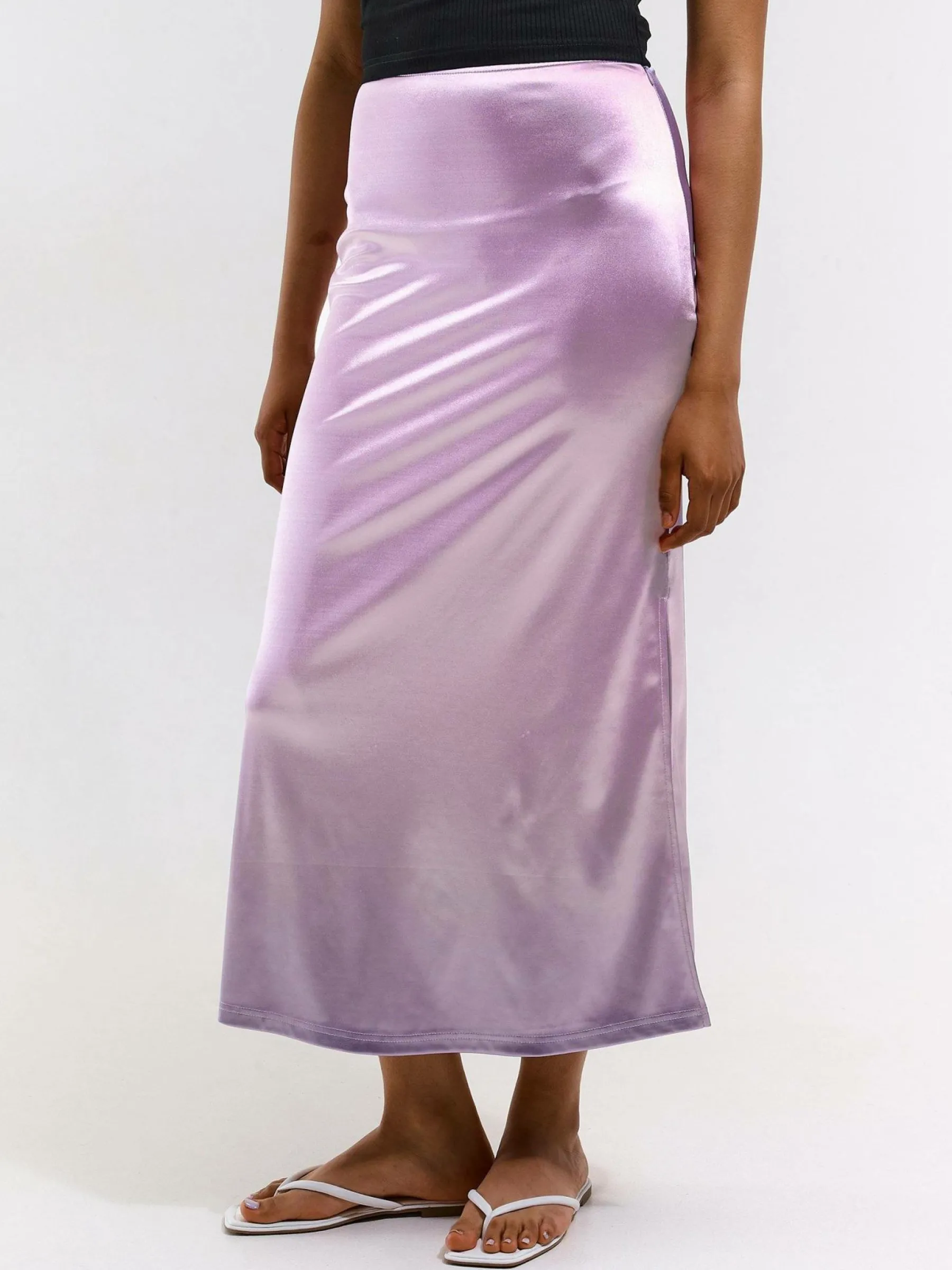 Kolor: purpurowyKrój: ołówkoweTyp: spódnicaDługość: maxiPattern style: pojedynczy kolorDetal: z rozcięciem, na z…