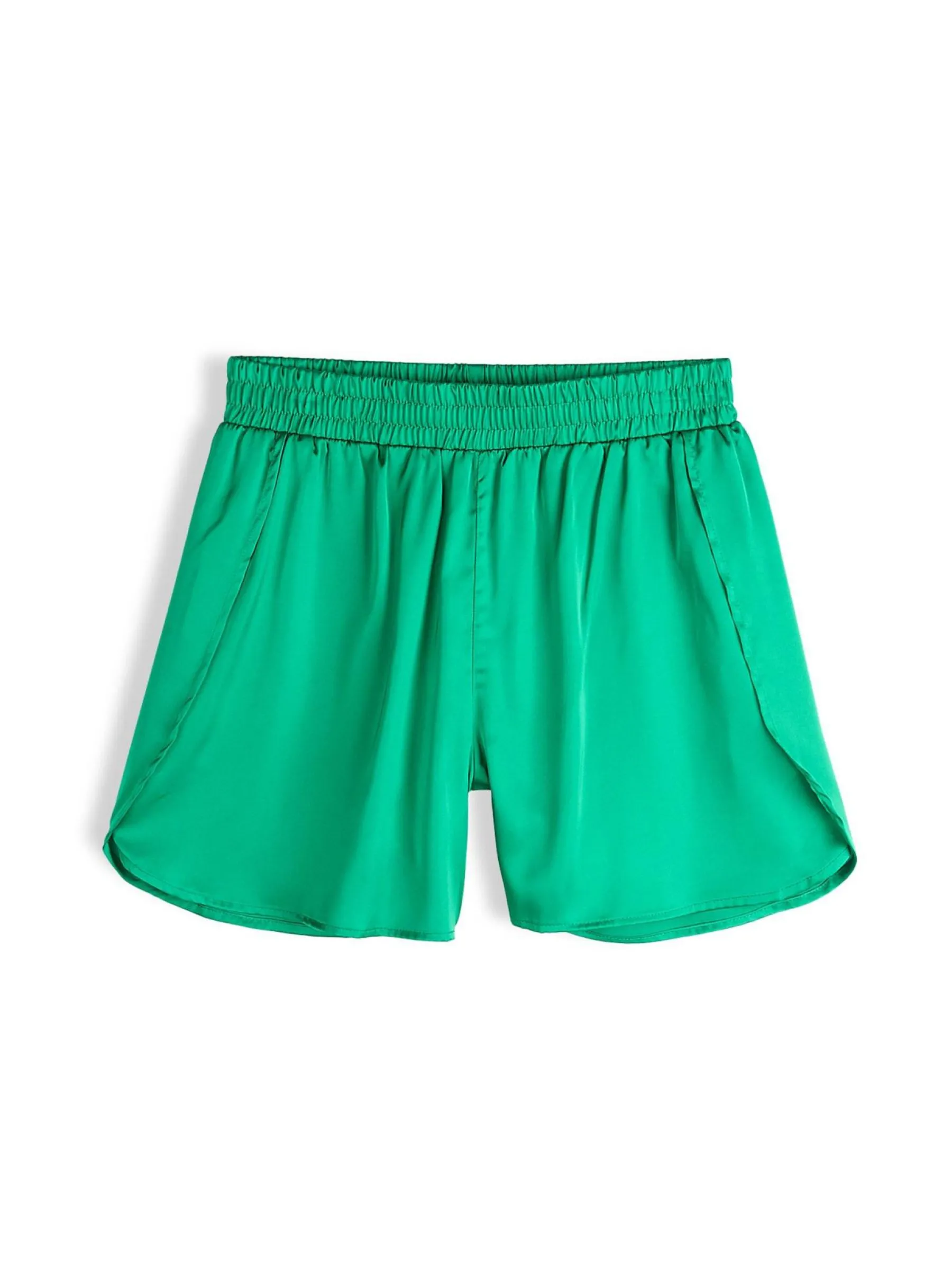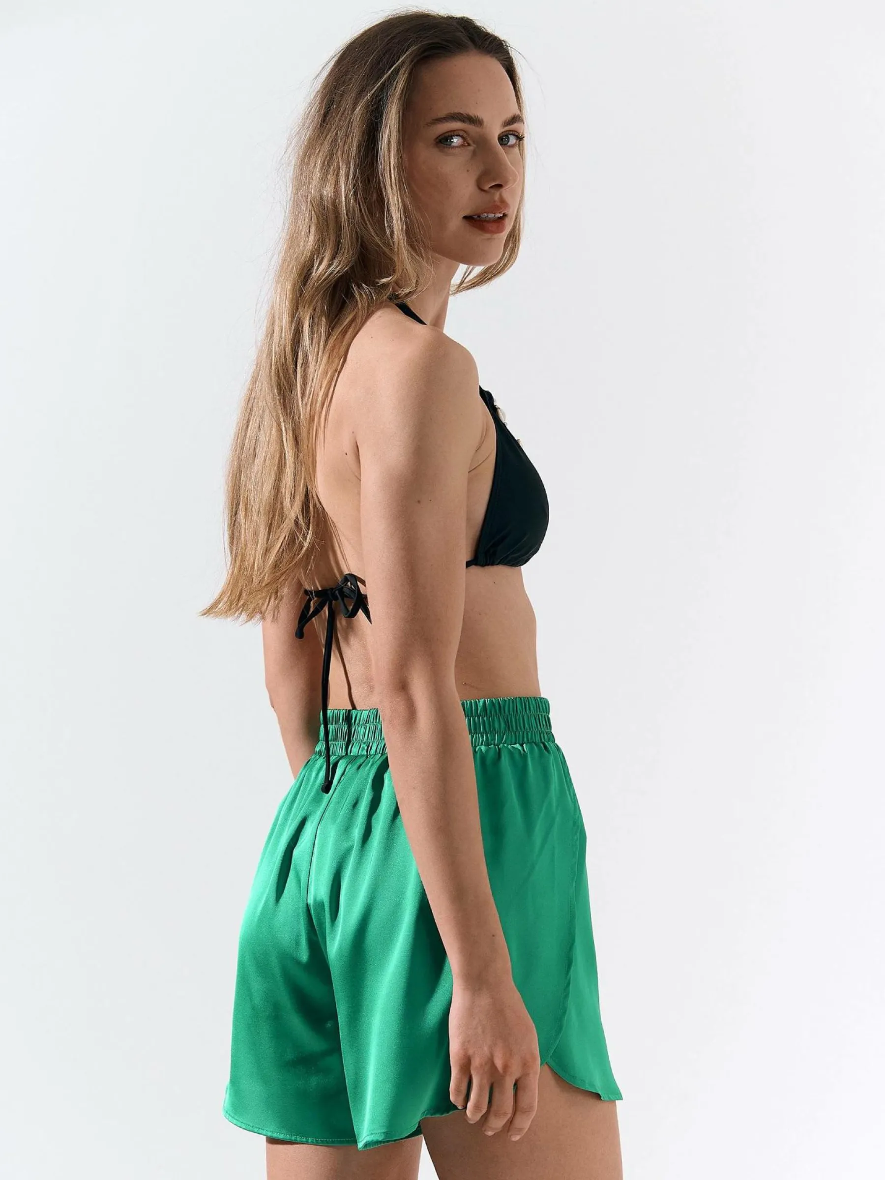 Kolor: zielonyKrój: straightTyp: spodenkiDługość: krótkiPattern style: pojedynczy kolorDetal: z rozcięciem, z elas…