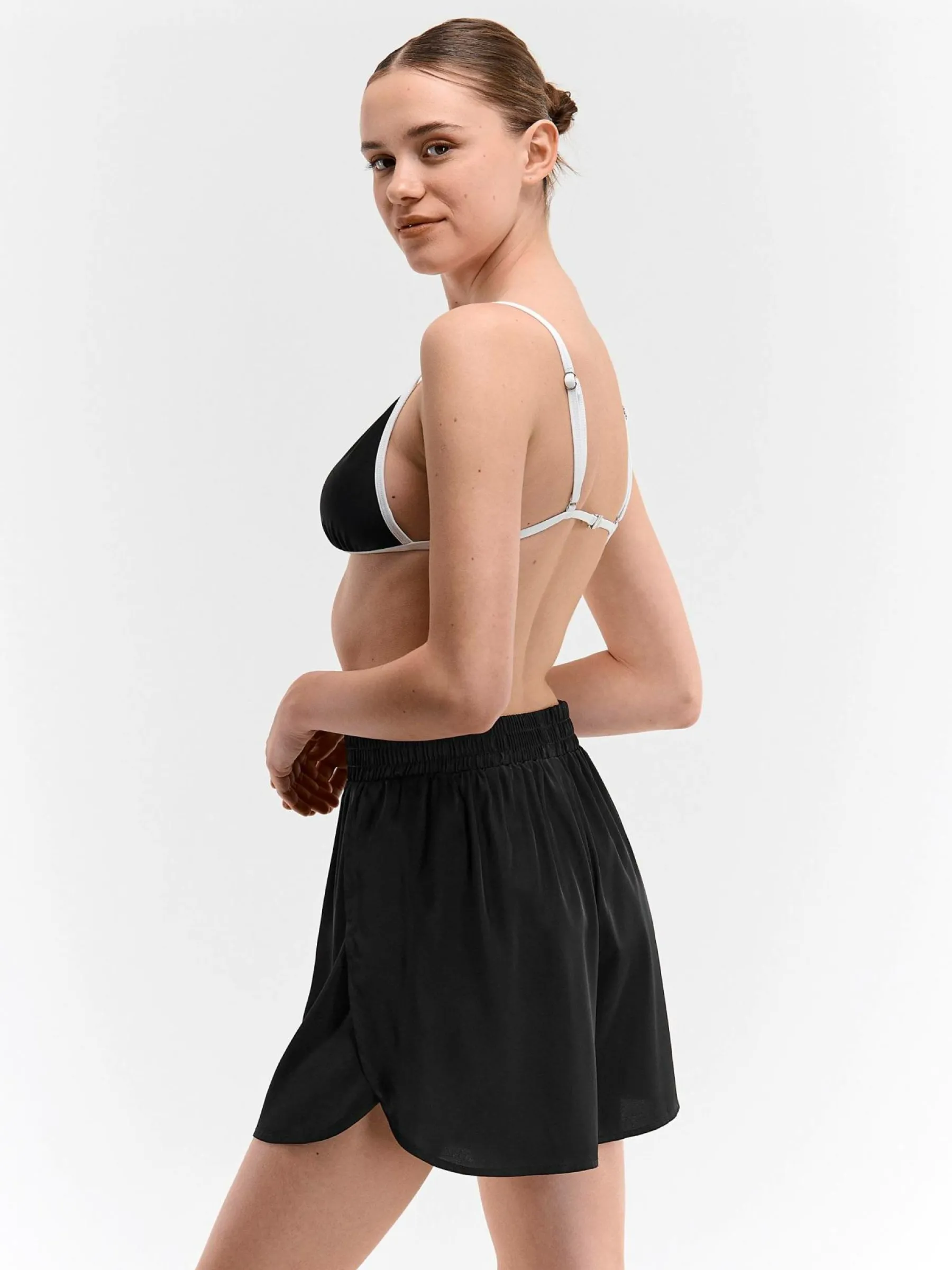 Kolor: czarnyKrój: straightTyp: spodenkiDługość: krótkiPattern style: pojedynczy kolorDetal: z elastyczną opaską,…