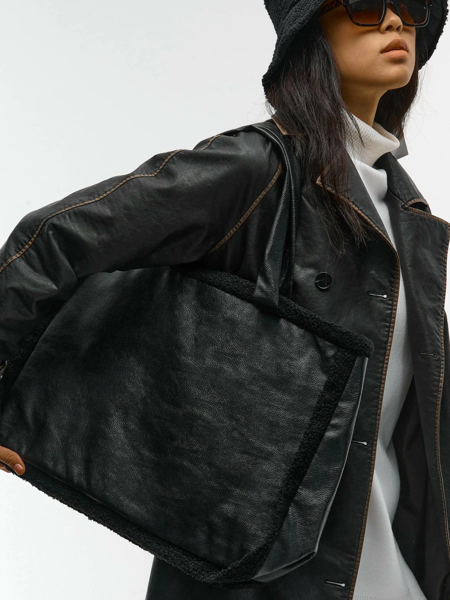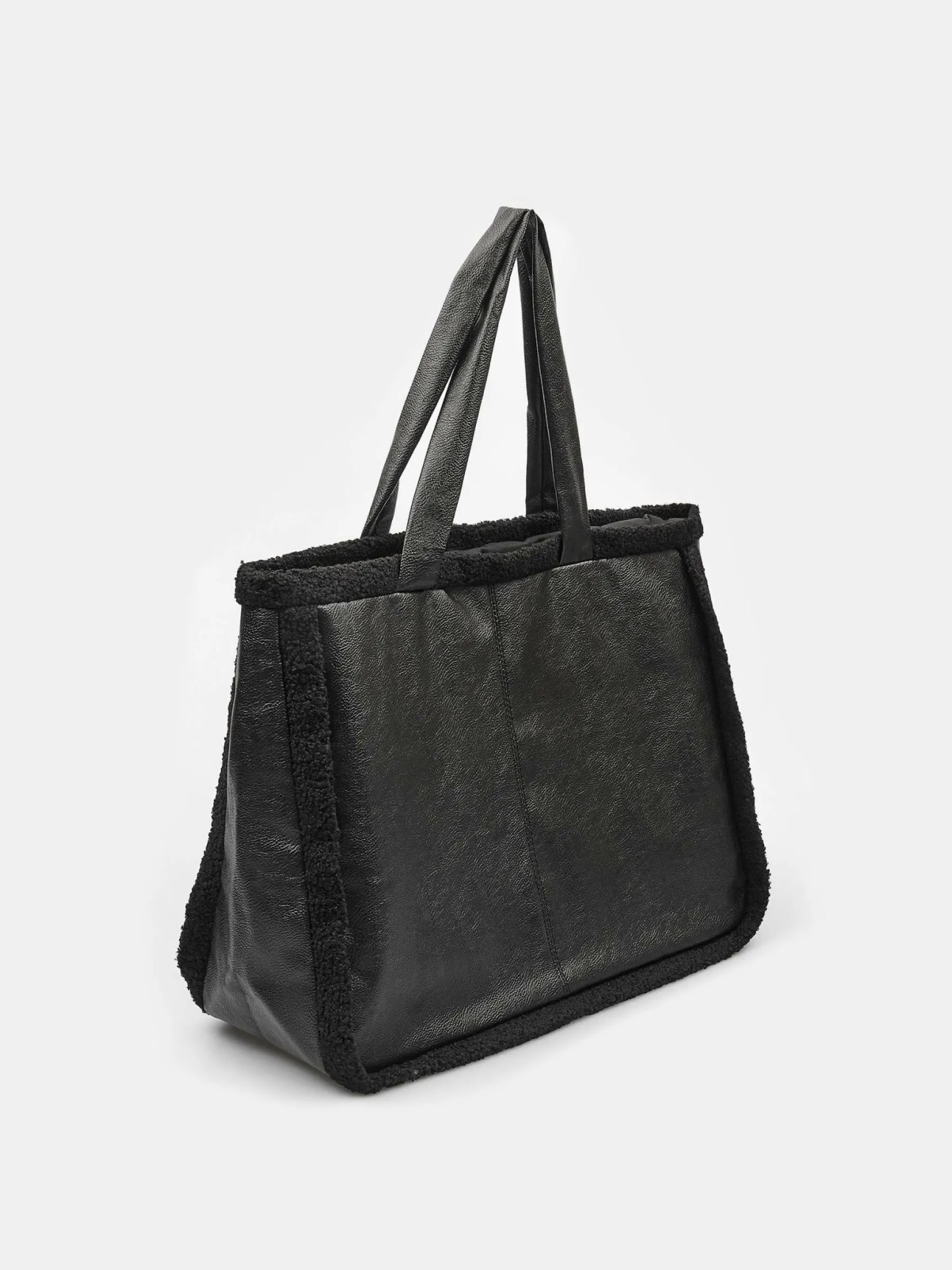 Kolor: czarnyKrój: shopperTyp: torebkaPattern style: pojedynczy kolorDetal: na snapyMateriał: sztuczna skóraPłeć: k…