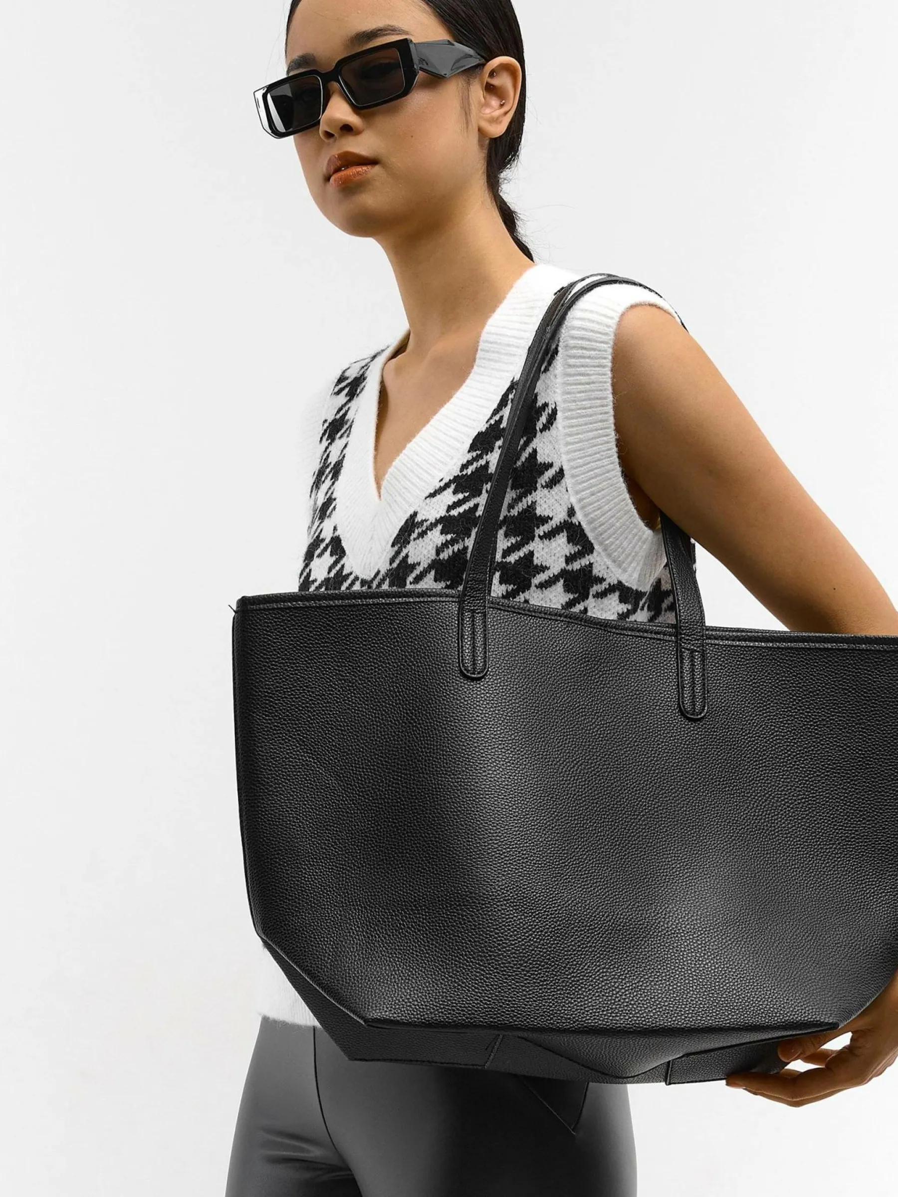 Kolor: czarnyKrój: shopperTyp: torebkaPattern style: pojedynczy kolorDetal: na snapyMateriał: sztuczna skóraPłeć: k…