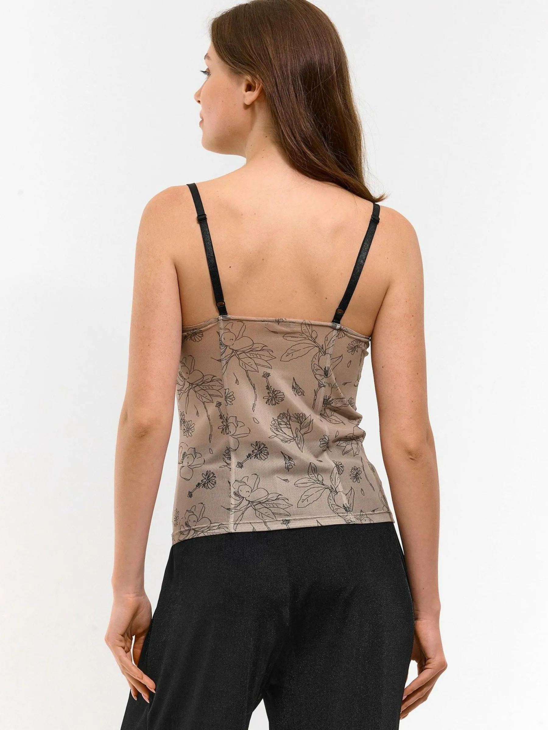Kolor: beżowy, brązowyKrój: regularTyp: podkoszulekRekaw: bez rękawówDługość: krótkiPattern style: z nadrukiem,…