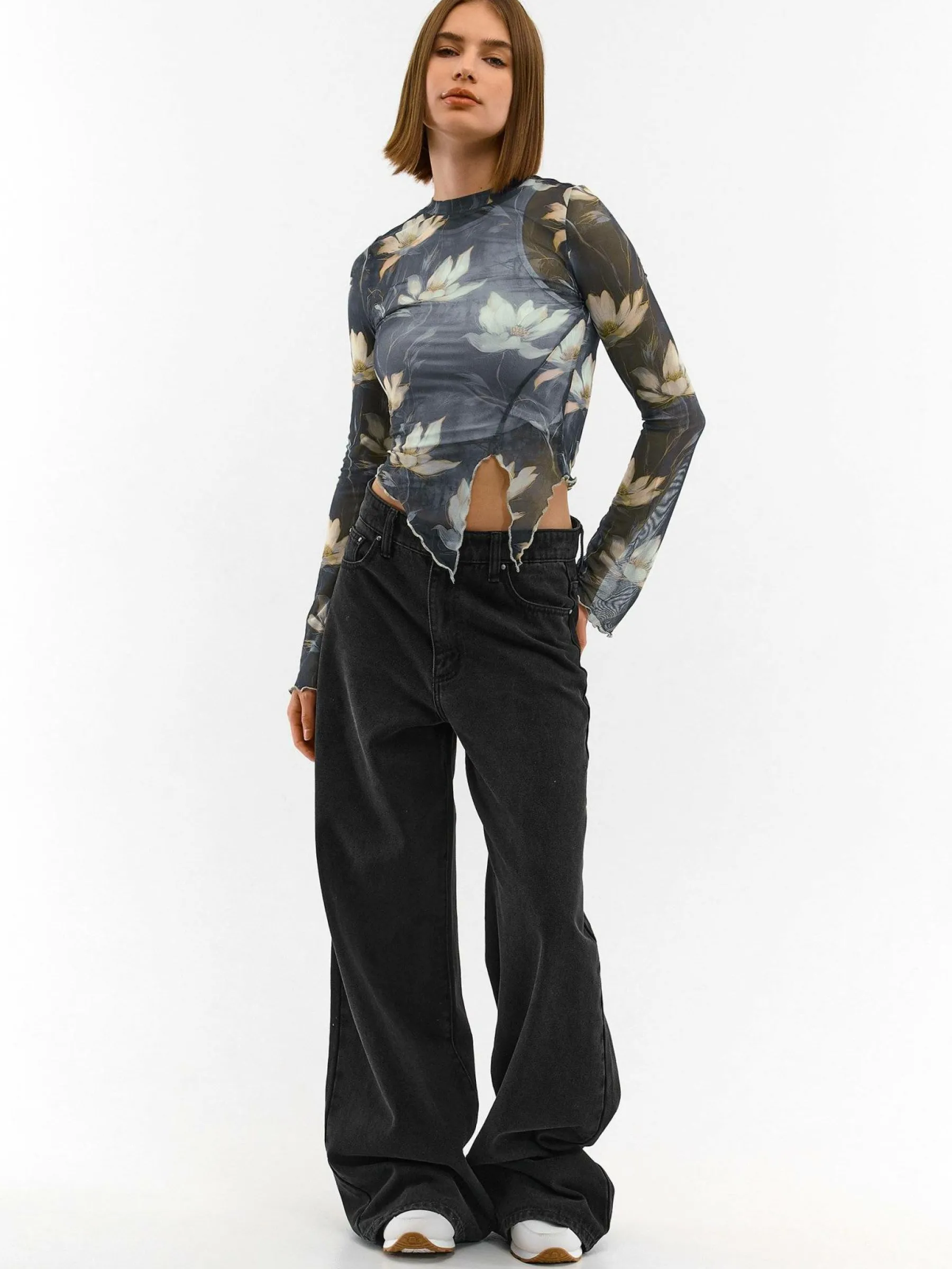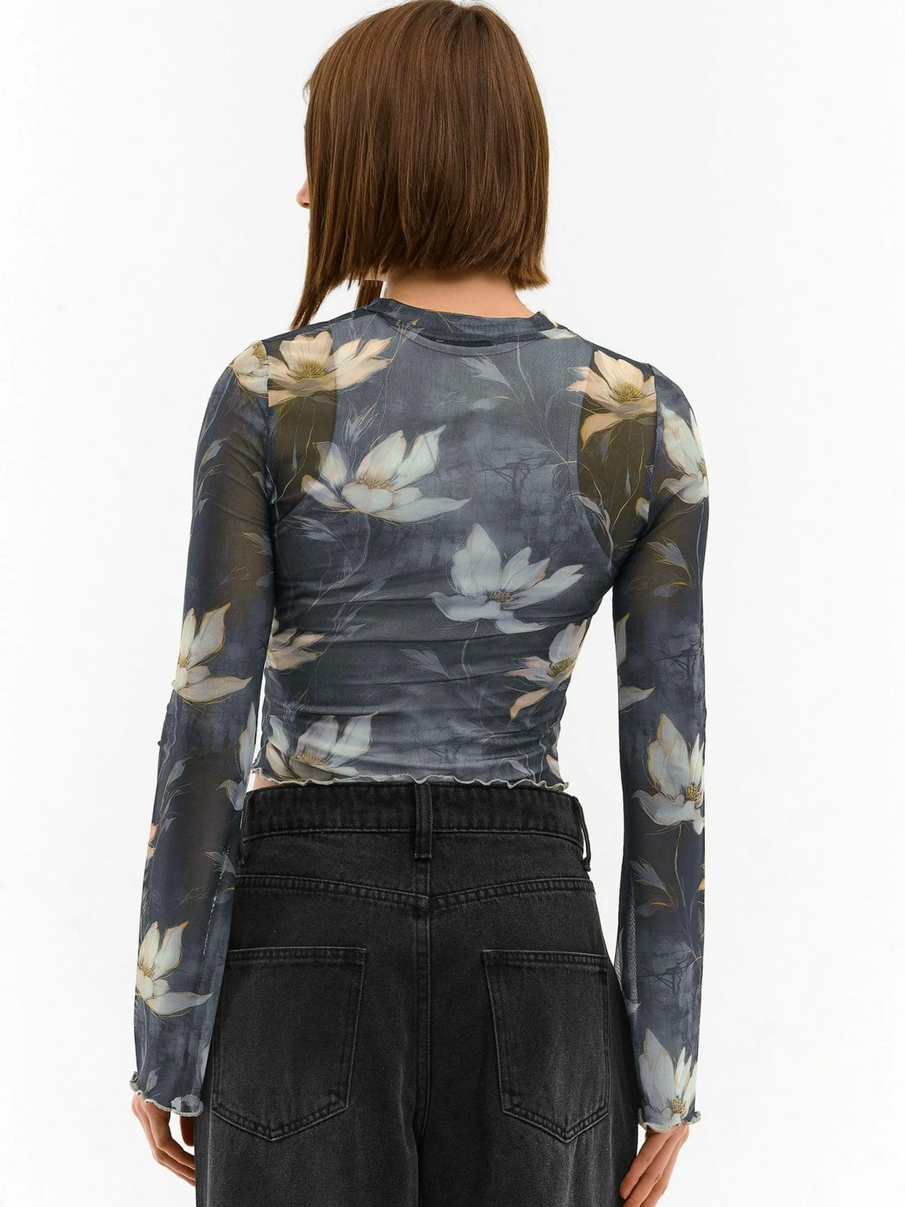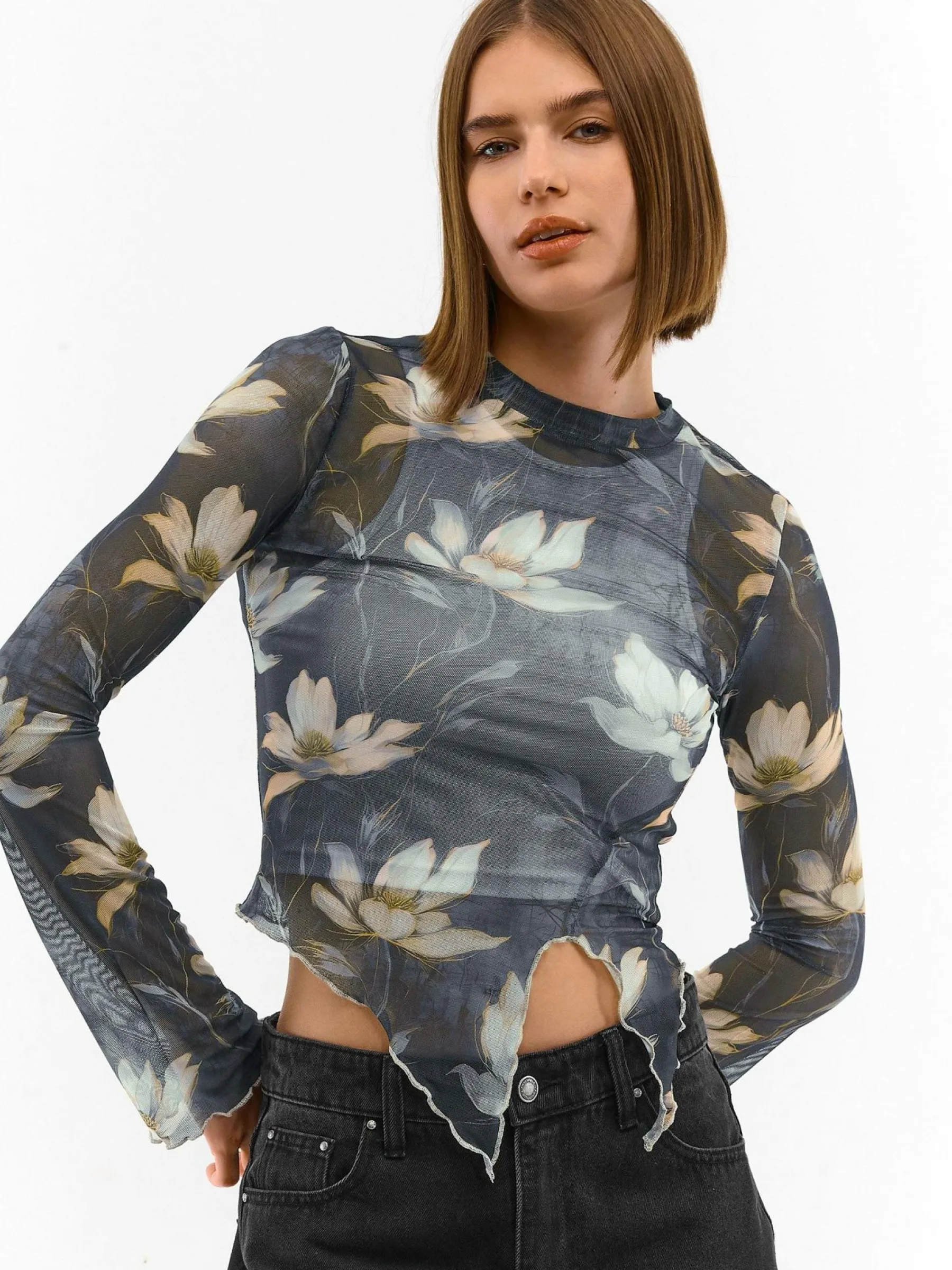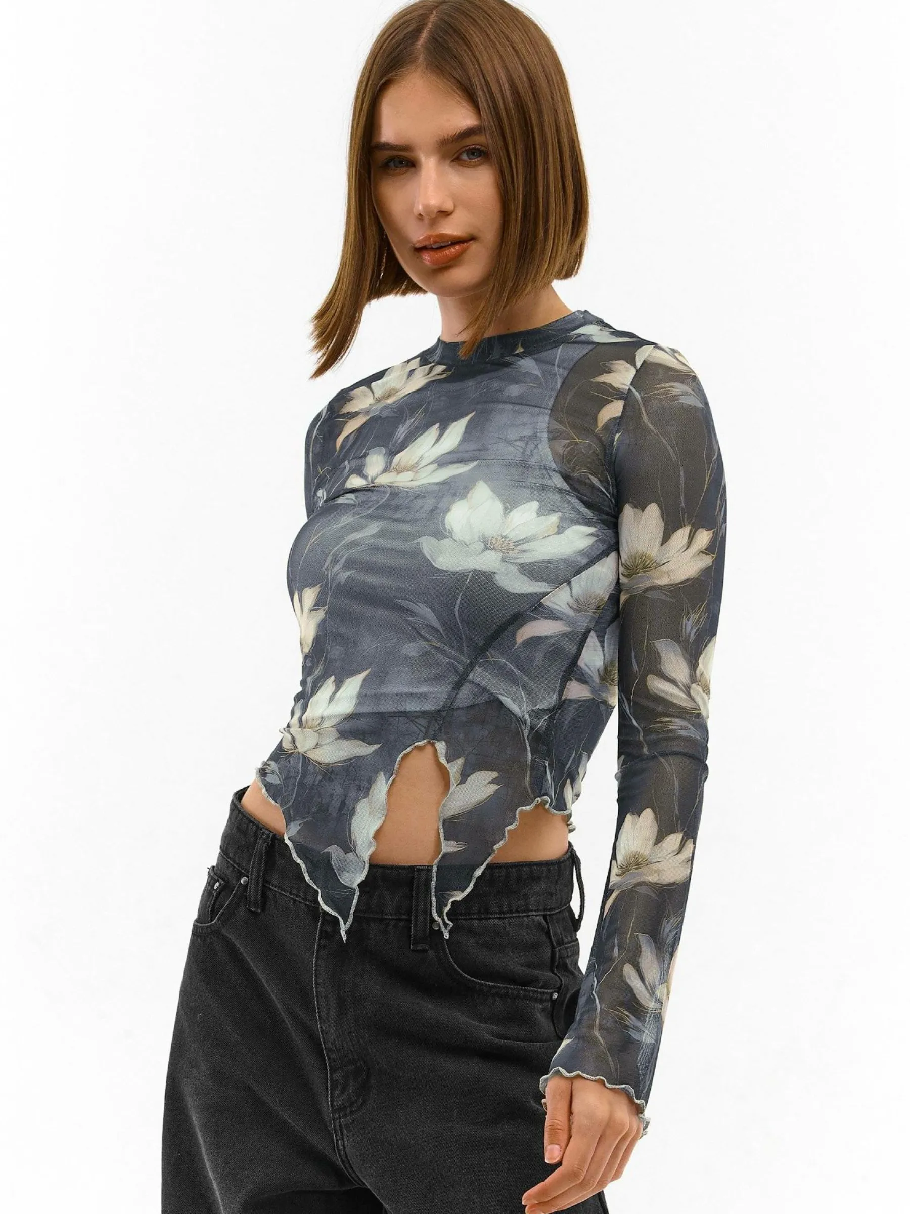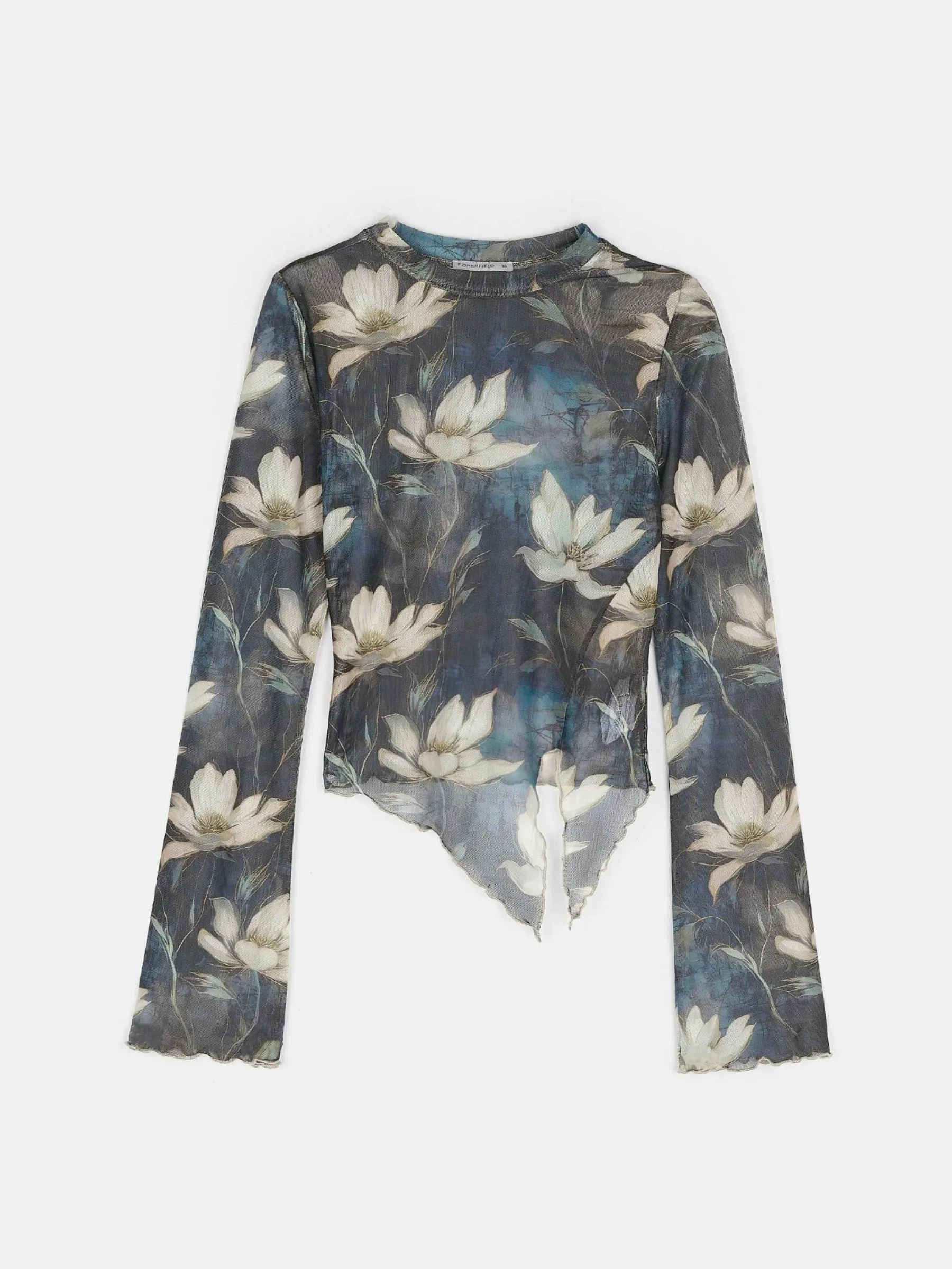 Kolor: zielonyKrój: asymetryczneTyp: topRekaw: długi rękawDługość: krótkiPattern style: z nadrukiem, kwiatoweDeta…