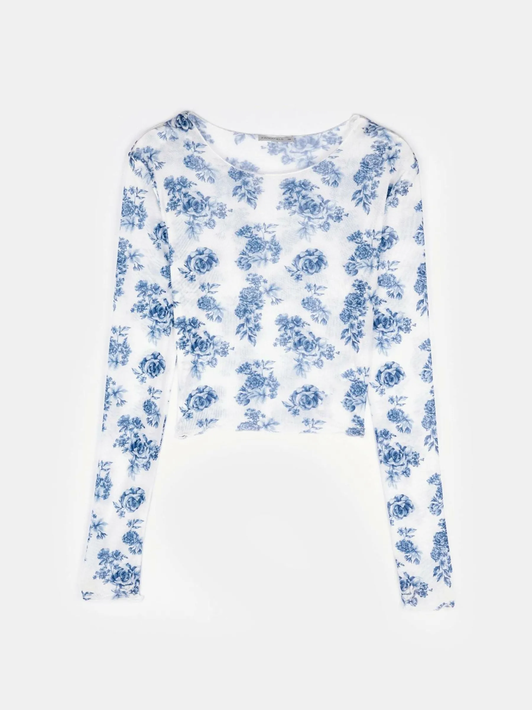 Kolor: białyKrój: regularTyp: topRekaw: długi rękawDługość: krótki topPattern style: z nadrukiemDetal: nad głow…