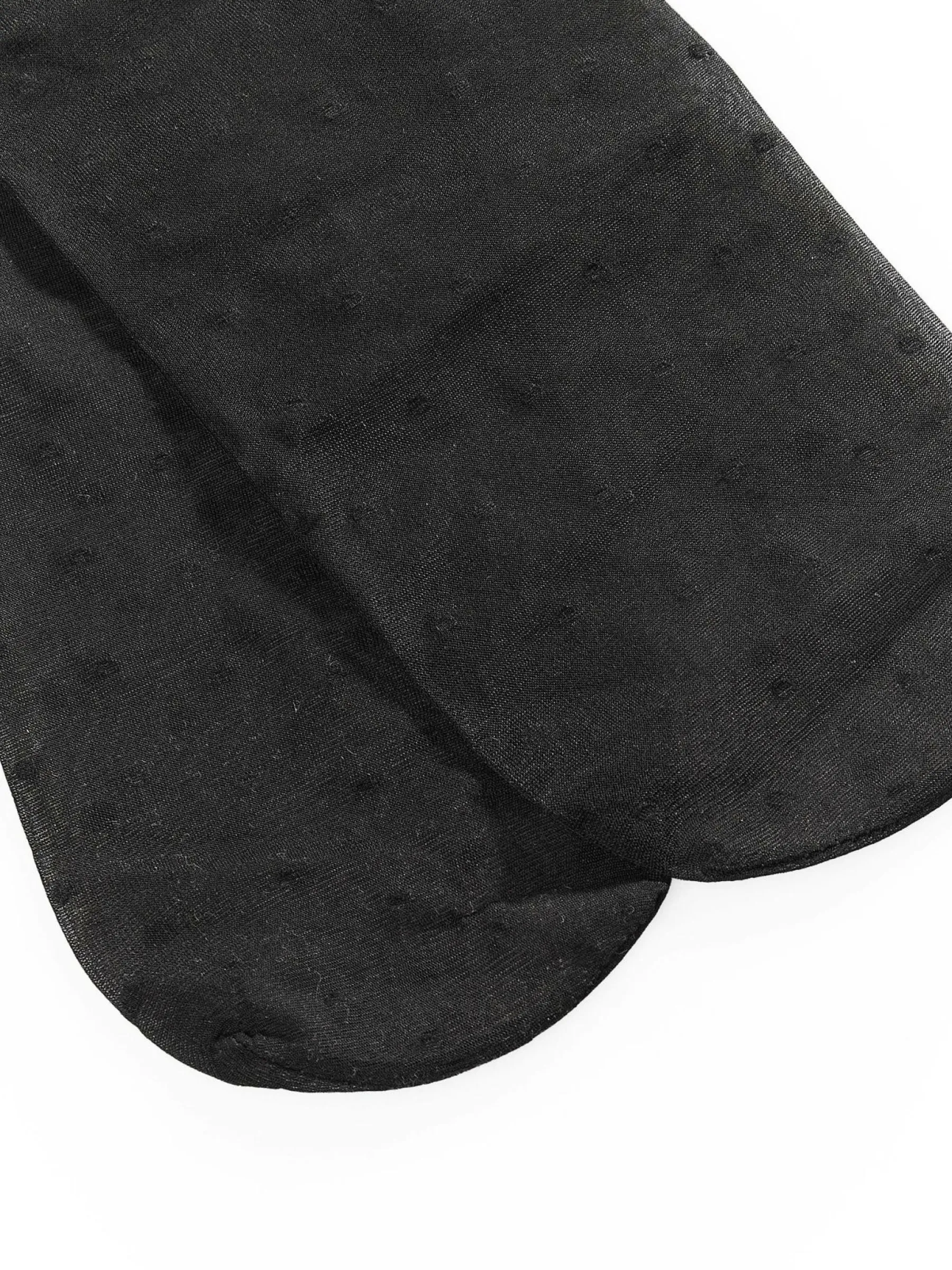 Kolor: czarnyKrój: skarpetki do kostekTyp: skarpetyPattern style: w grochyDetal: z koronkąMateriał: nylonPłeć: kobi…