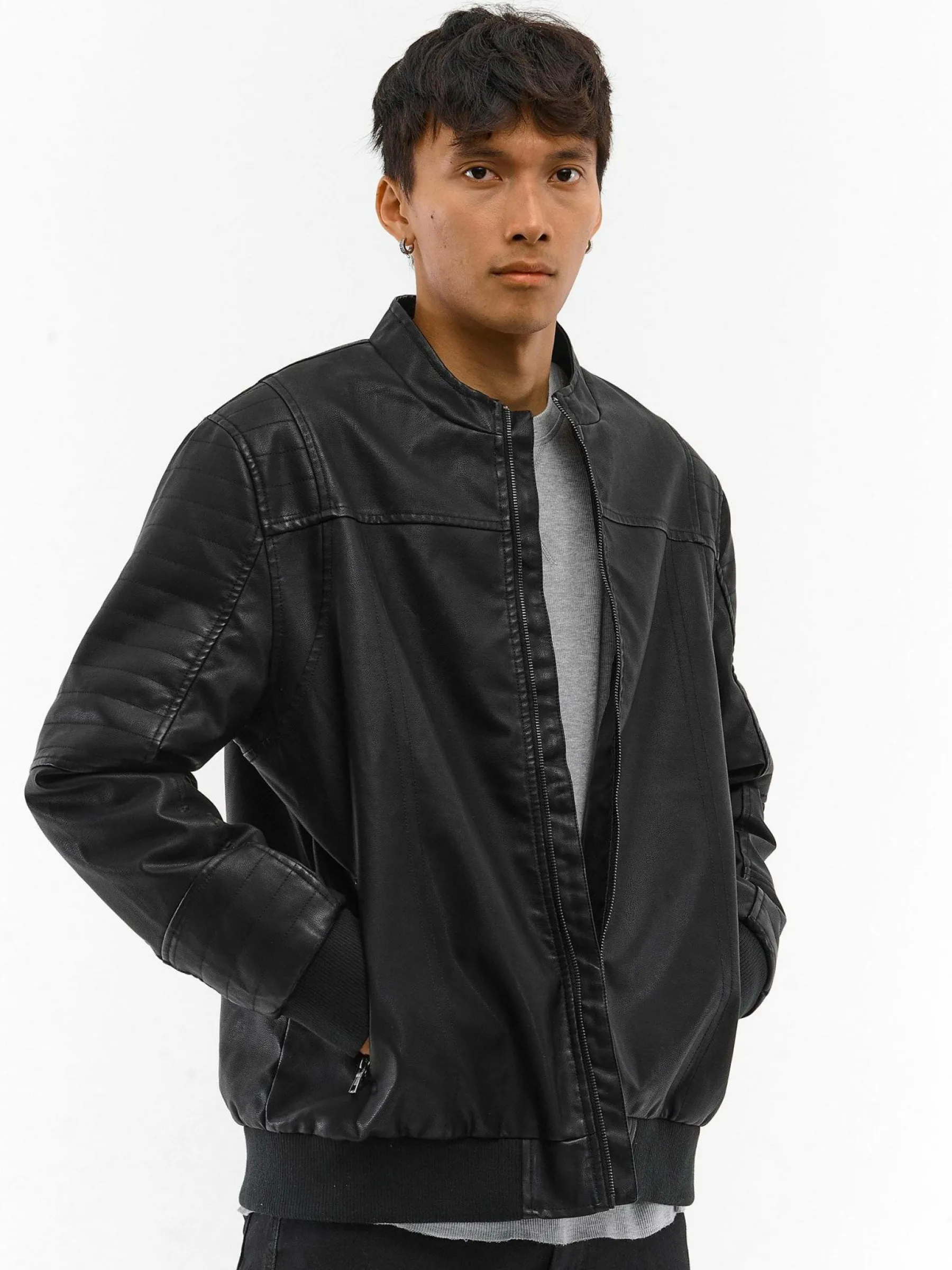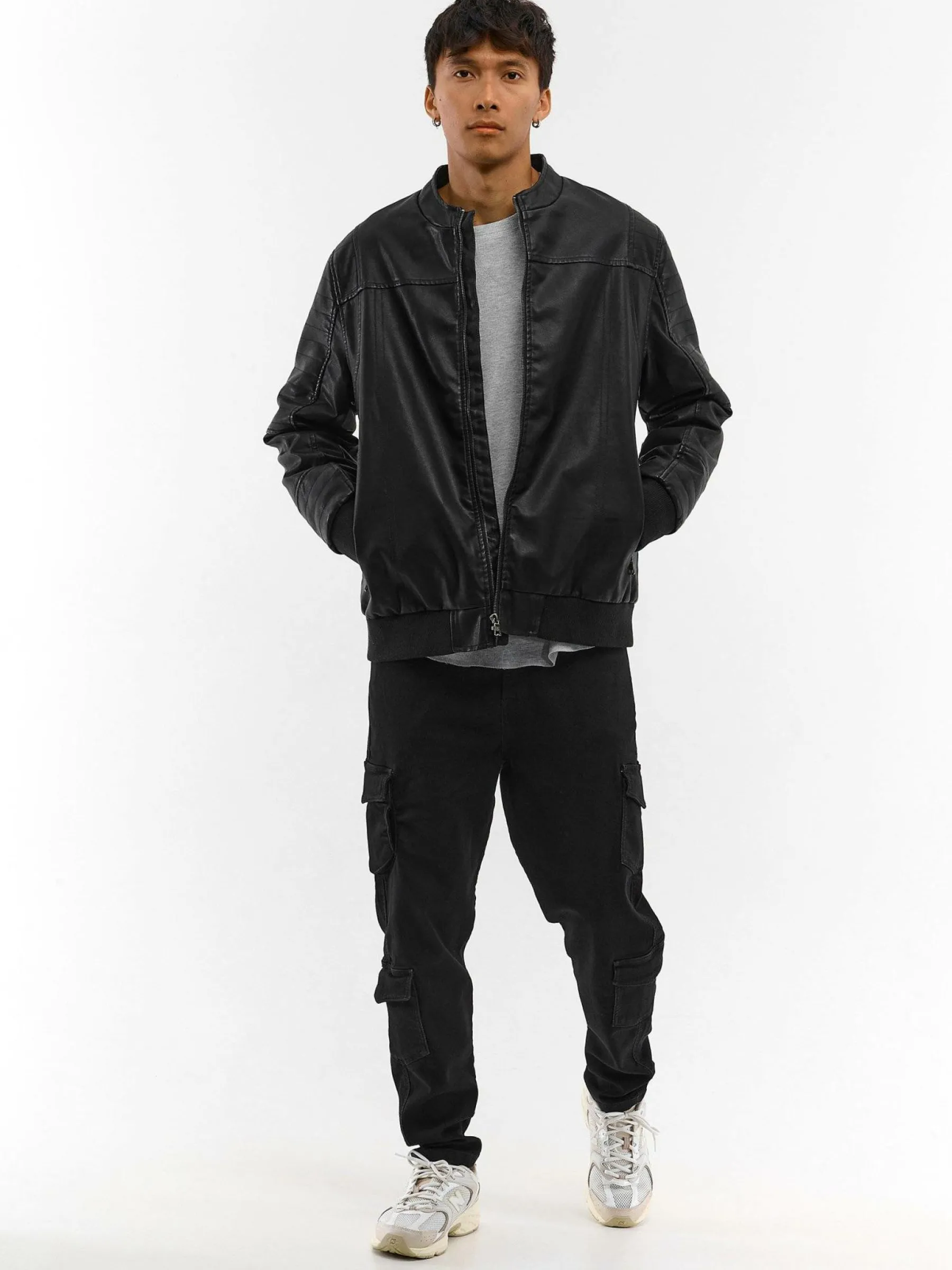Kolor: czarnyKrój: bomberTyp: kurtka przejściowaRekaw: długi rękawDługość: krótkiPattern style: pojedynczy kolor…