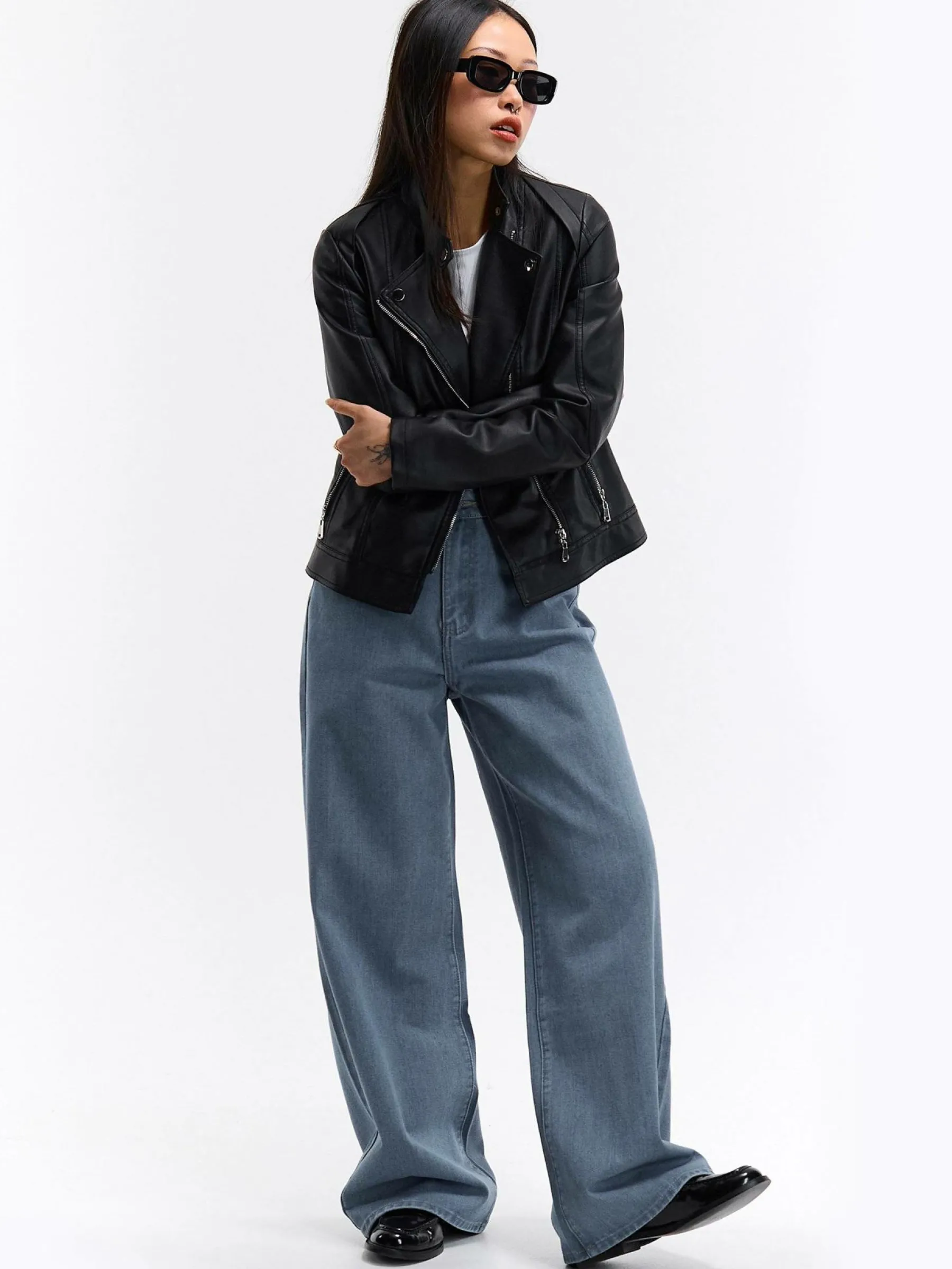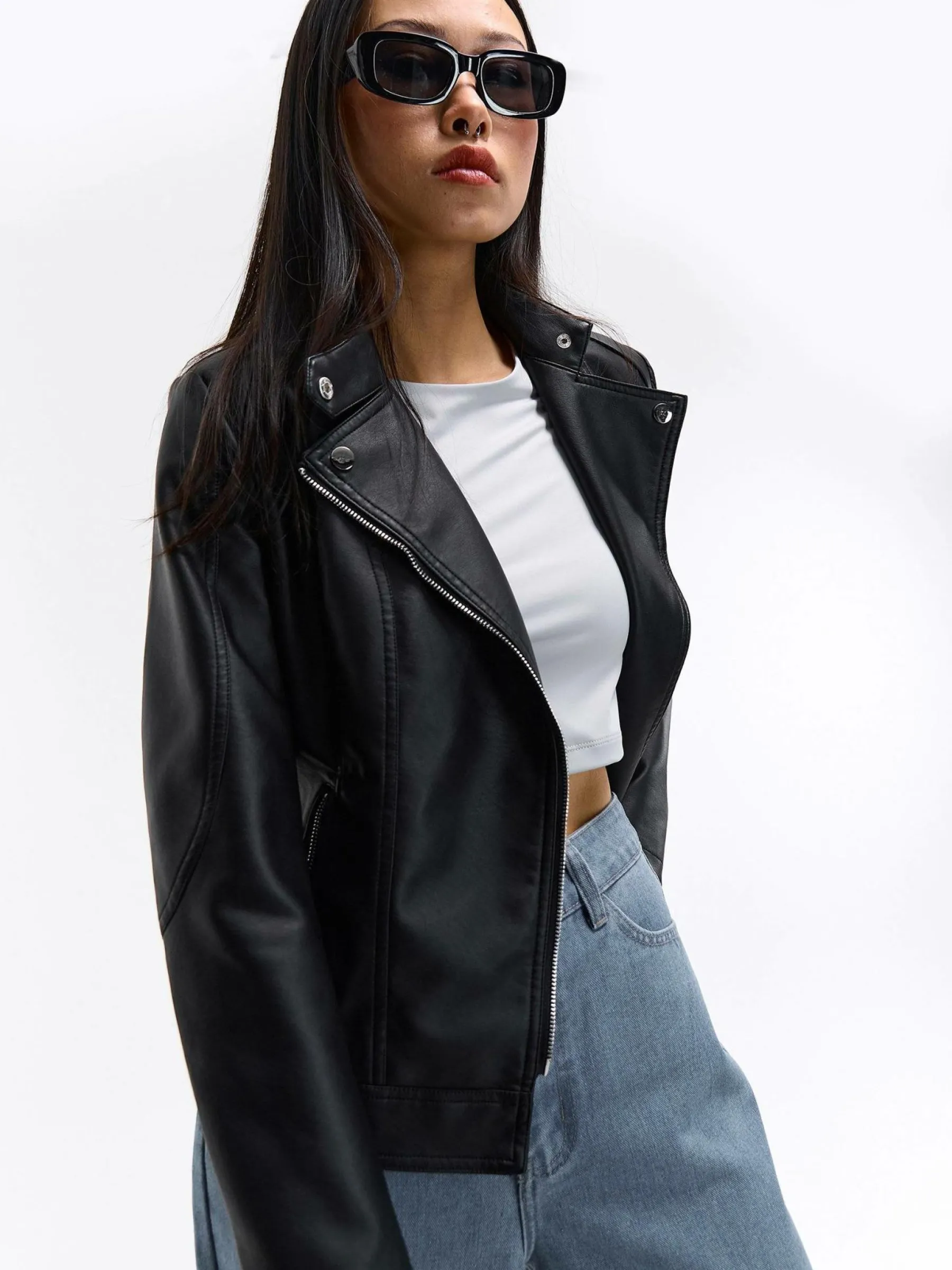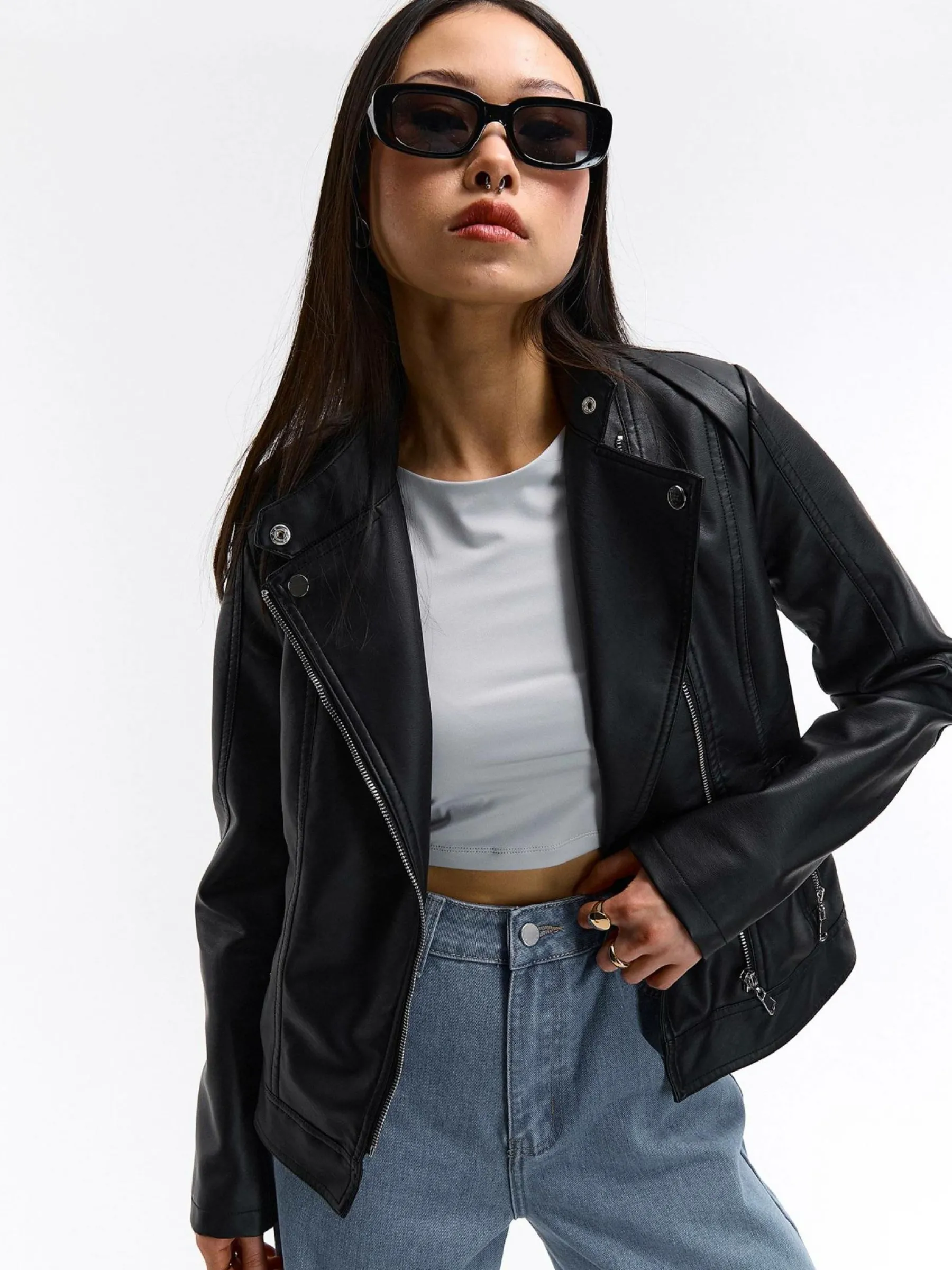 Kolor: czarnyKrój: motocykloweTyp: kurtka przejściowaRekaw: długi rękawDługość: krótkiPattern style: pojedynczy …