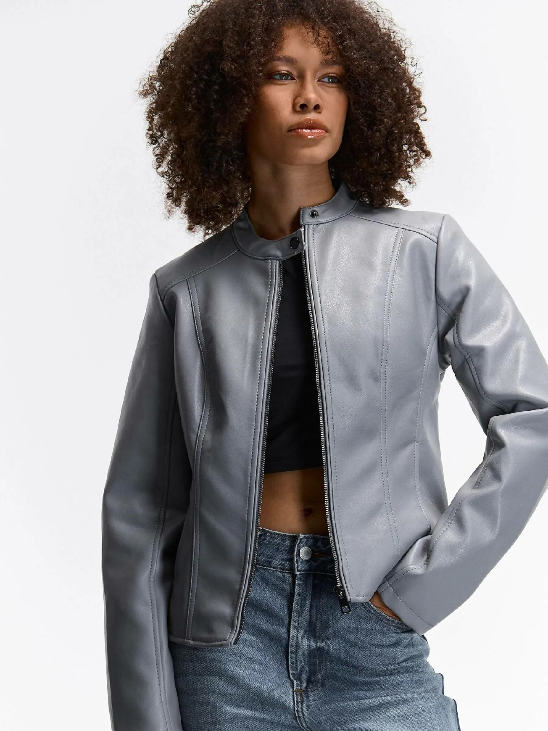 Kolor: szaryKrój: motocykloweTyp: kurtka przejściowaRekaw: długi rękawDługość: krótkiPattern style: pojedynczy k…
