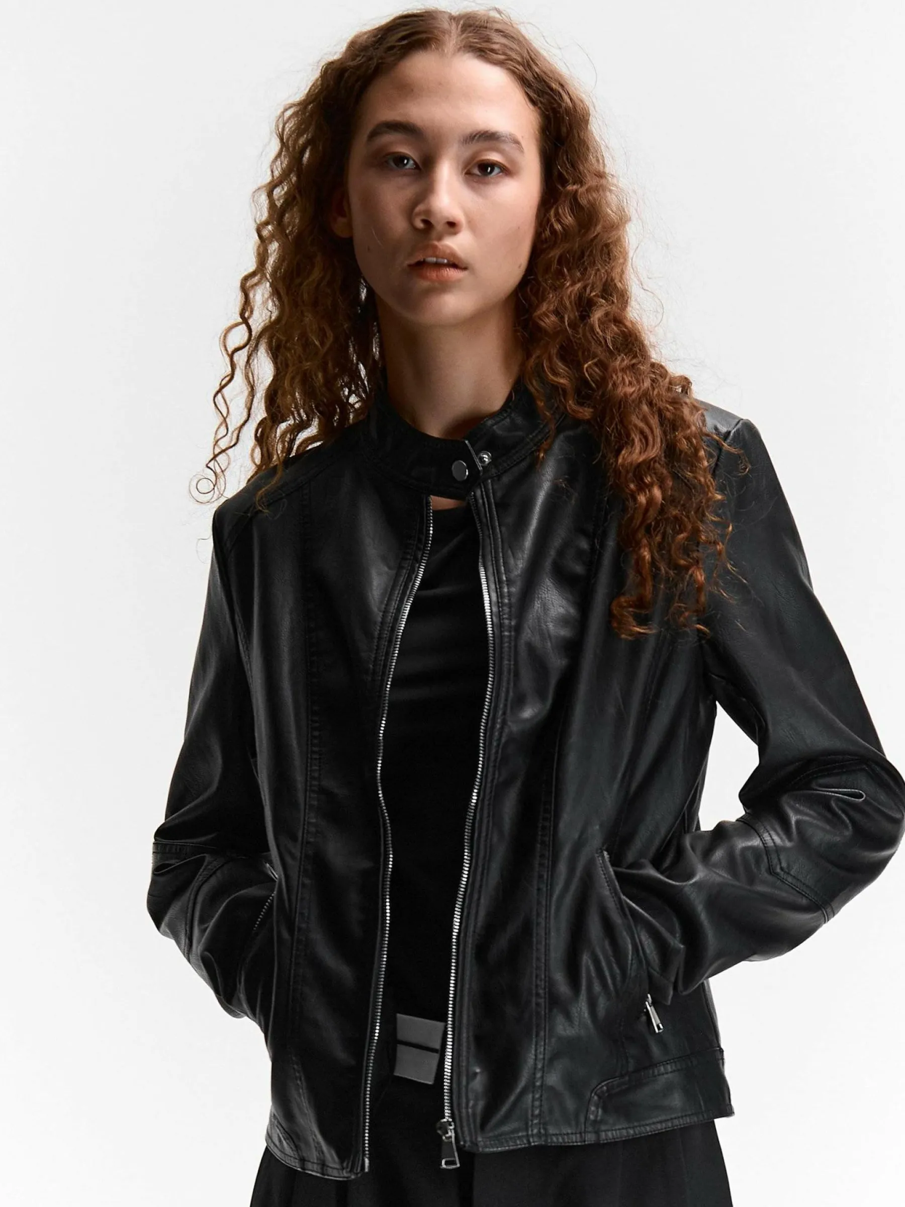 Kolor: czarnyKrój: motocykloweTyp: kurtka przejściowaRekaw: długi rękawDługość: krótkiPattern style: pojedynczy …