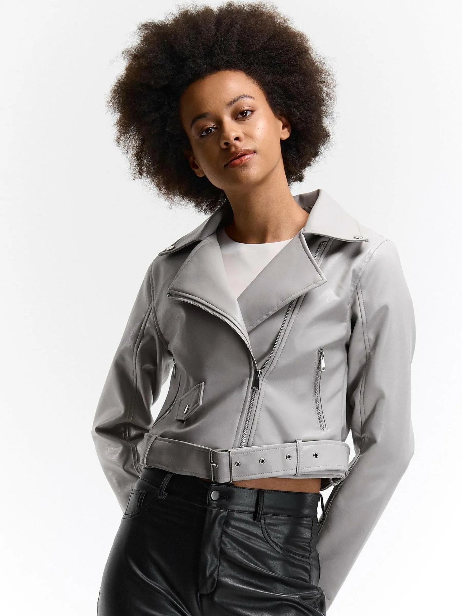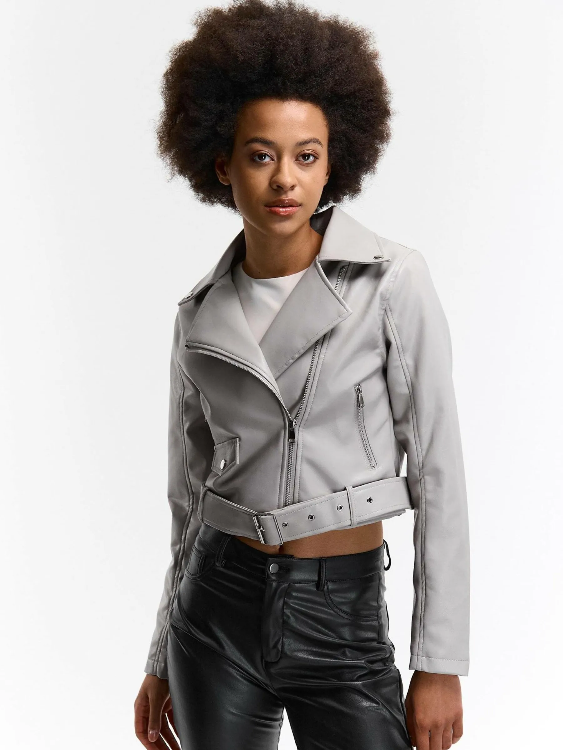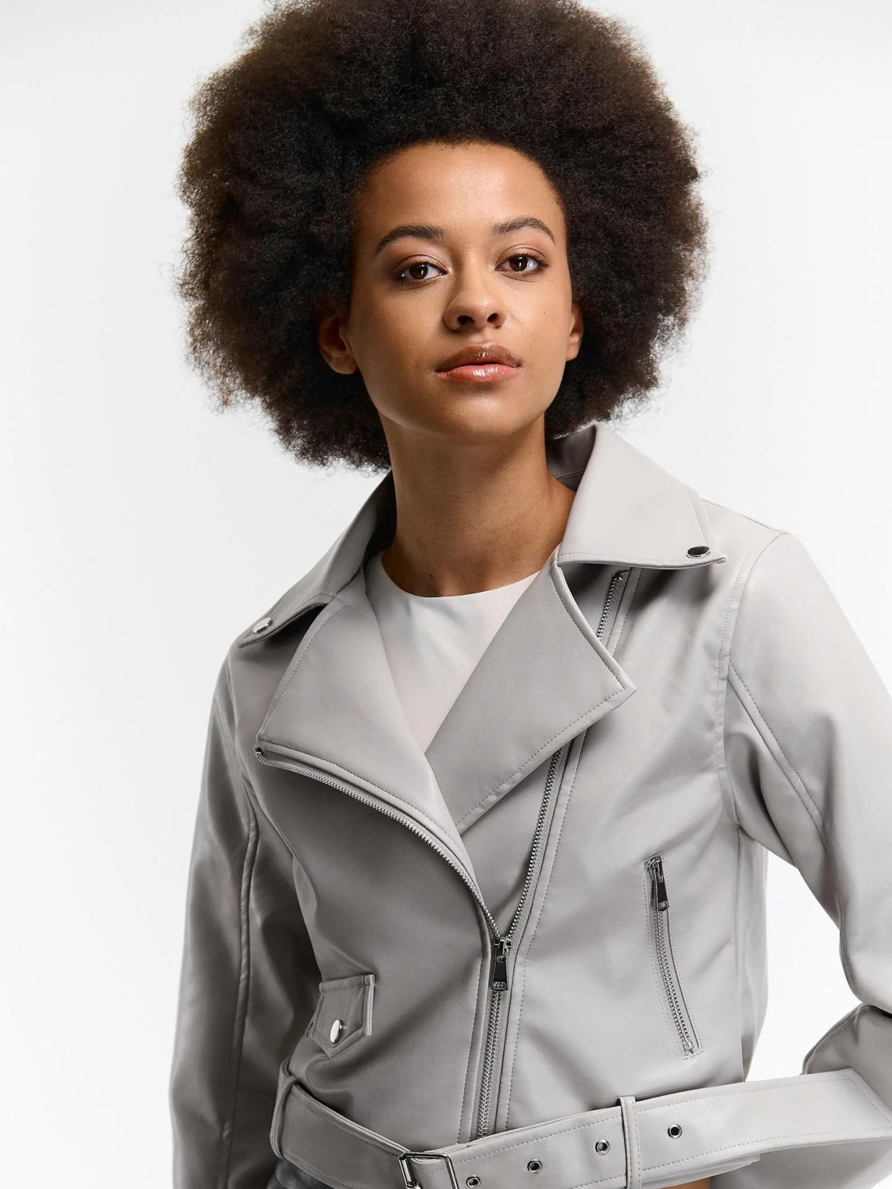 Kolor: szaryKrój: motocykloweTyp: kurtka przejściowaRekaw: długi rękawDługość: krótkiPattern style: pojedynczy k…
