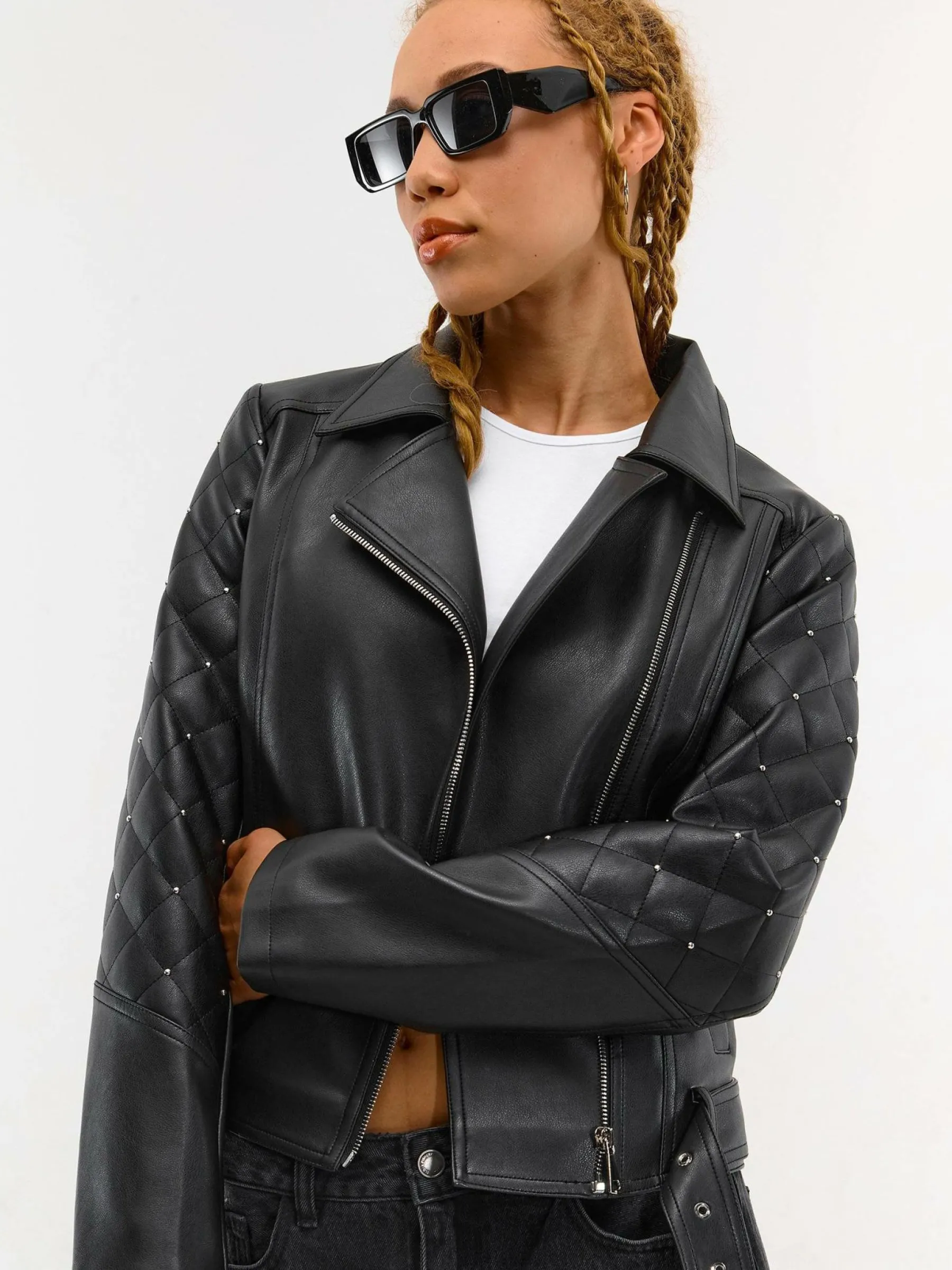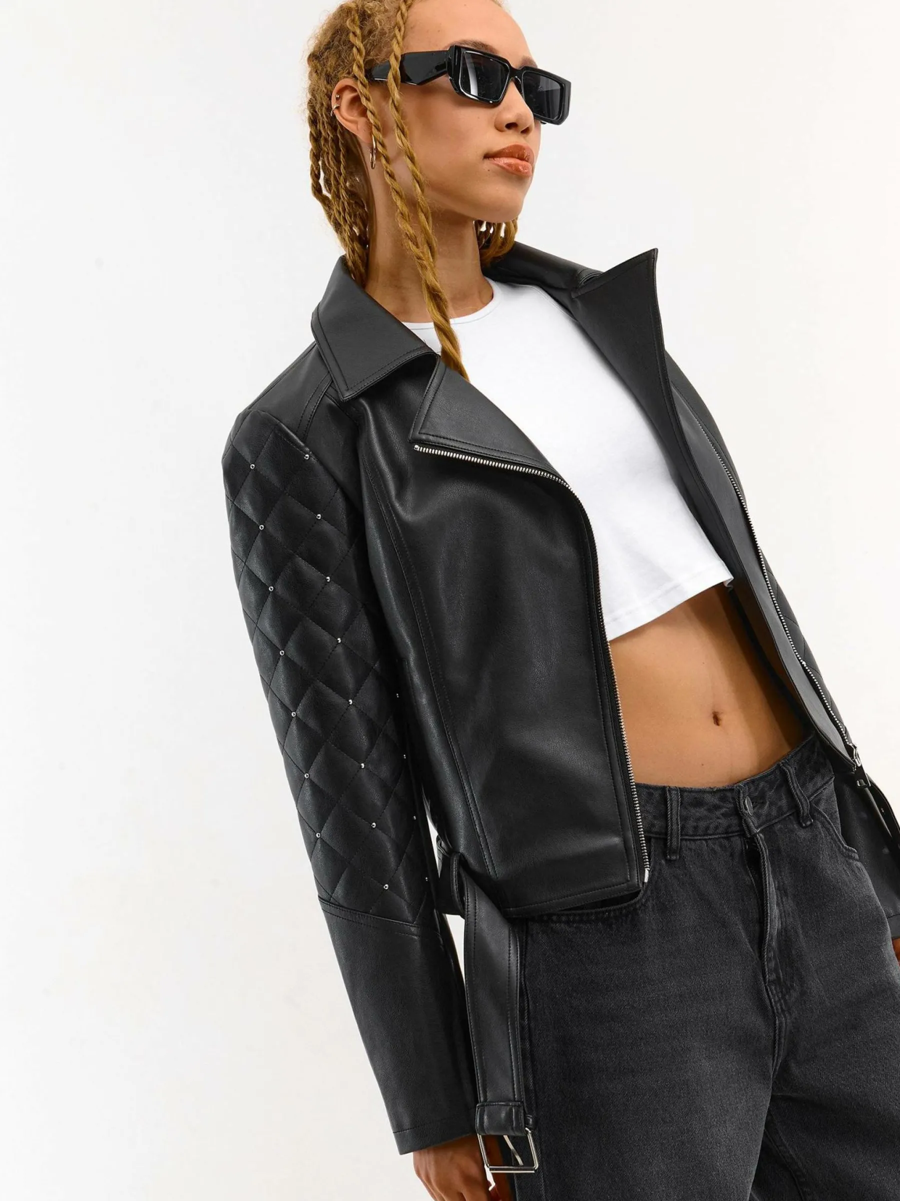 Kolor: czarnyKrój: pikowane, motocykloweTyp: kurtka przejściowaRekaw: długi rękawDługość: krótkiPattern style: p…