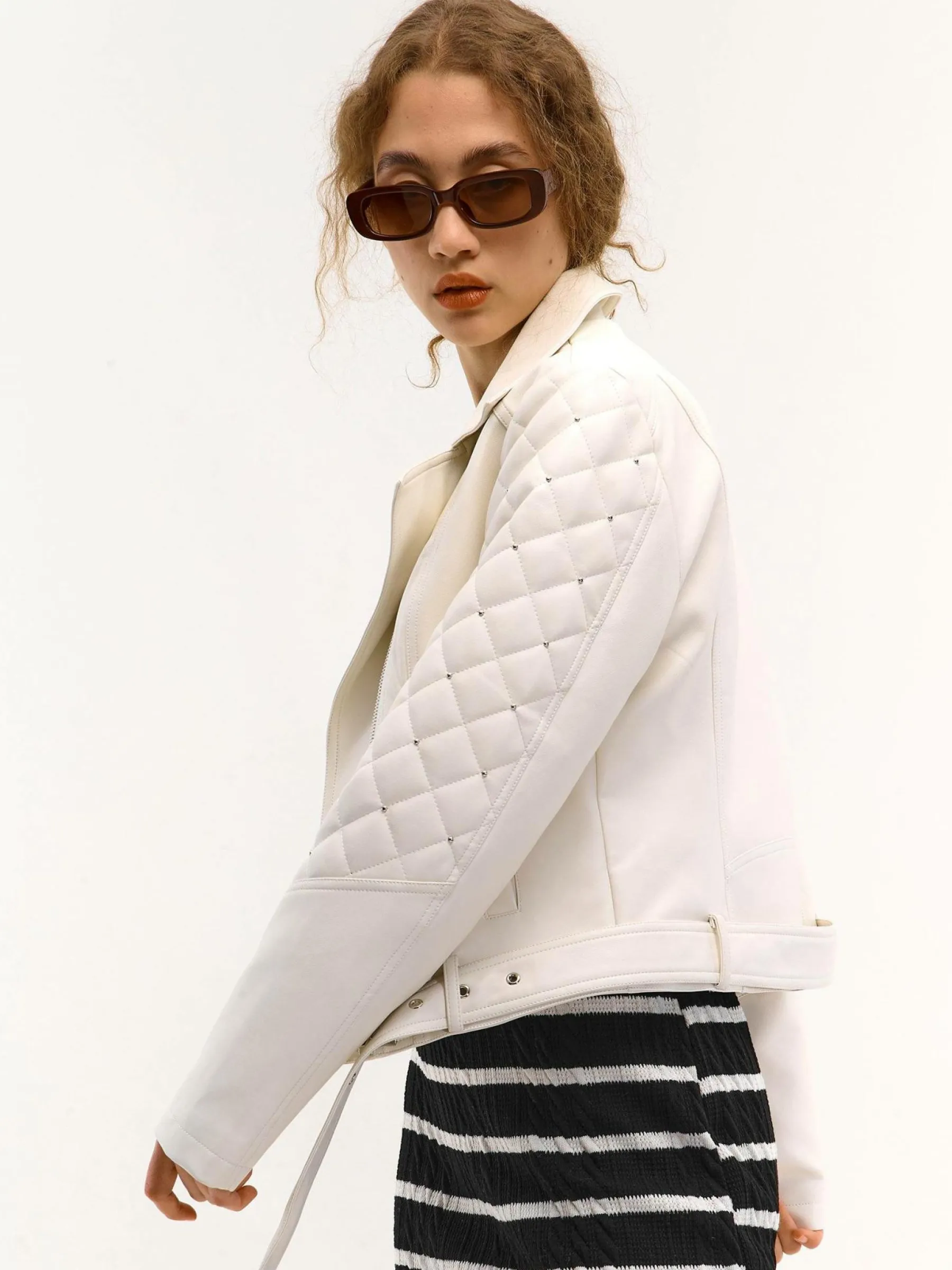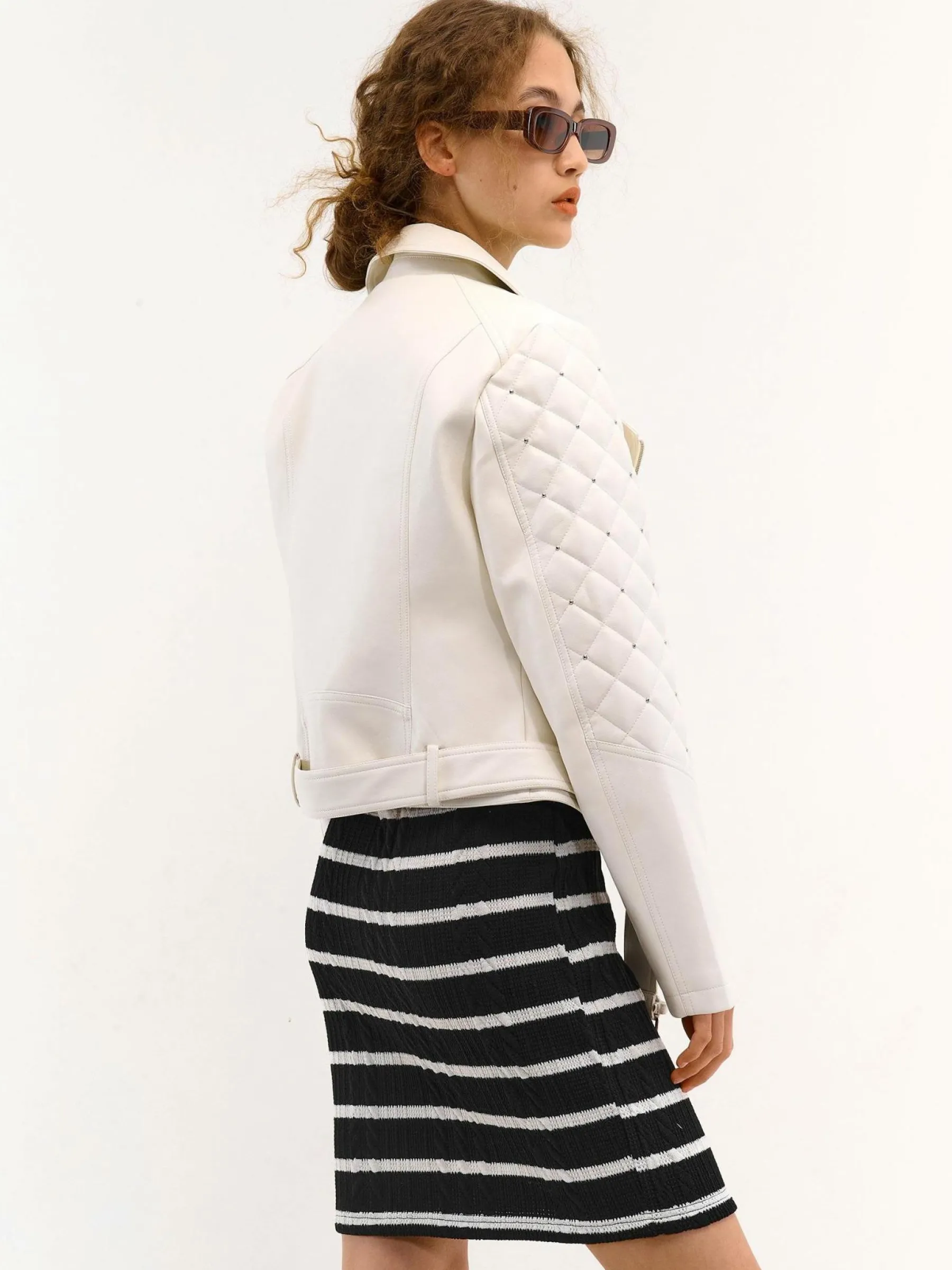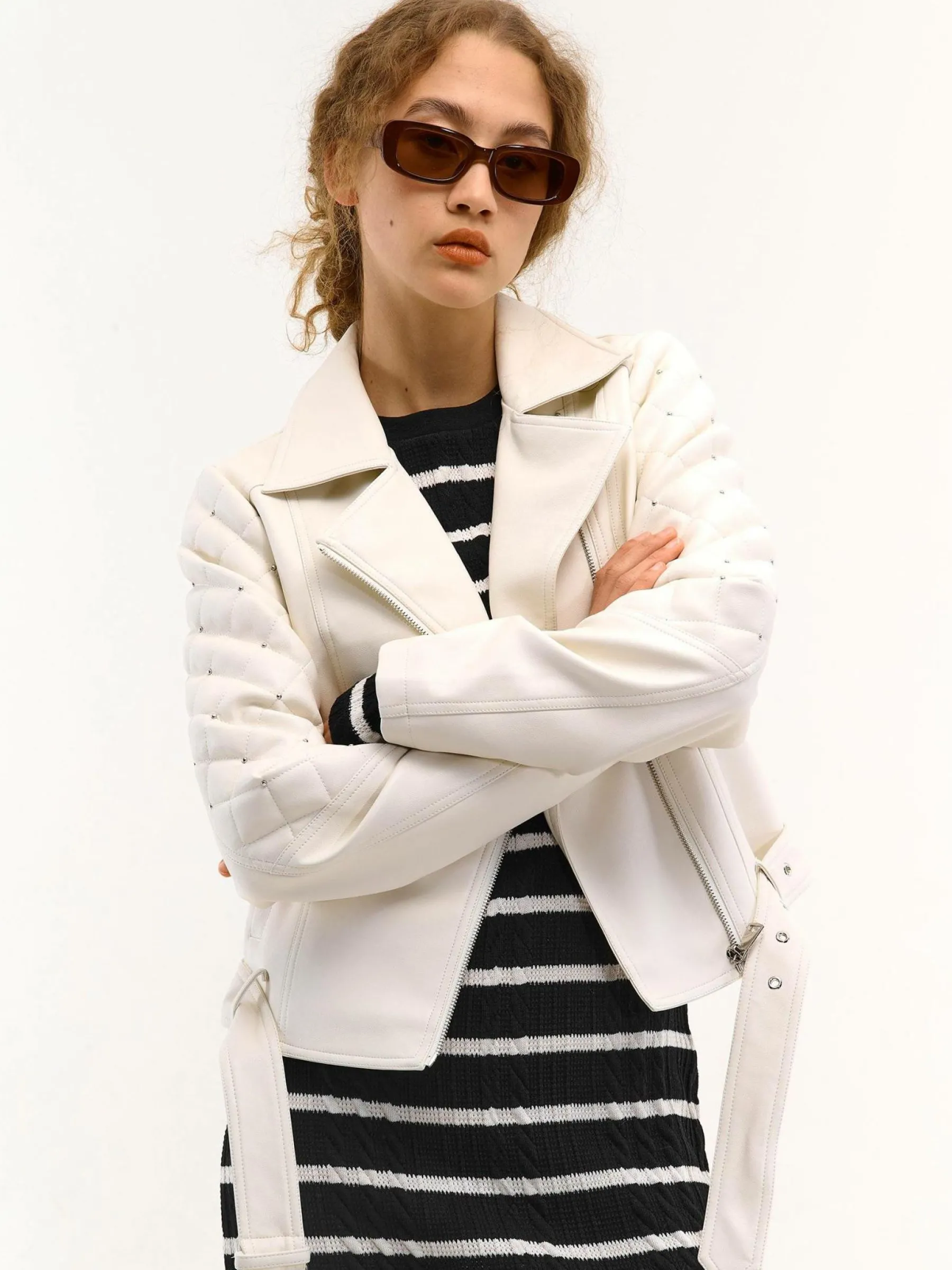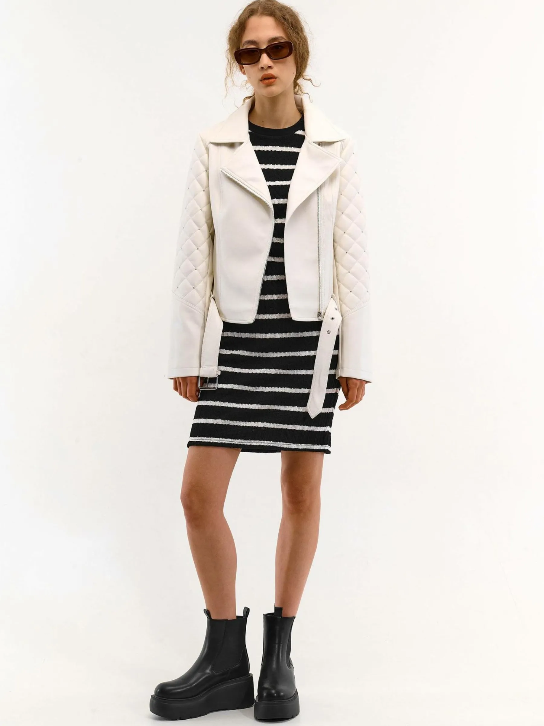 Kolor: białyKrój: pikowane, motocykloweTyp: kurtka przejściowaRekaw: długi rękawDługość: krótkiPattern style: p…