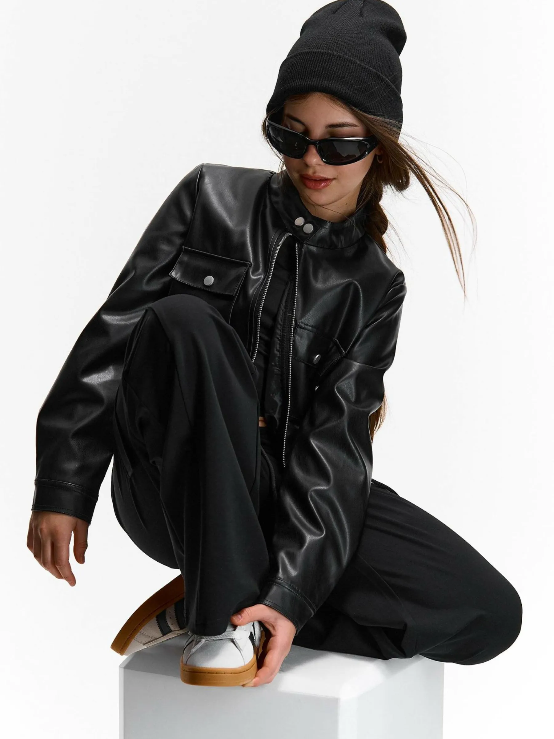 Kolor: czarnyKrój: motocykloweTyp: kurtka przejściowaRekaw: długi rękawDługość: krótkiPattern style: pojedynczy …