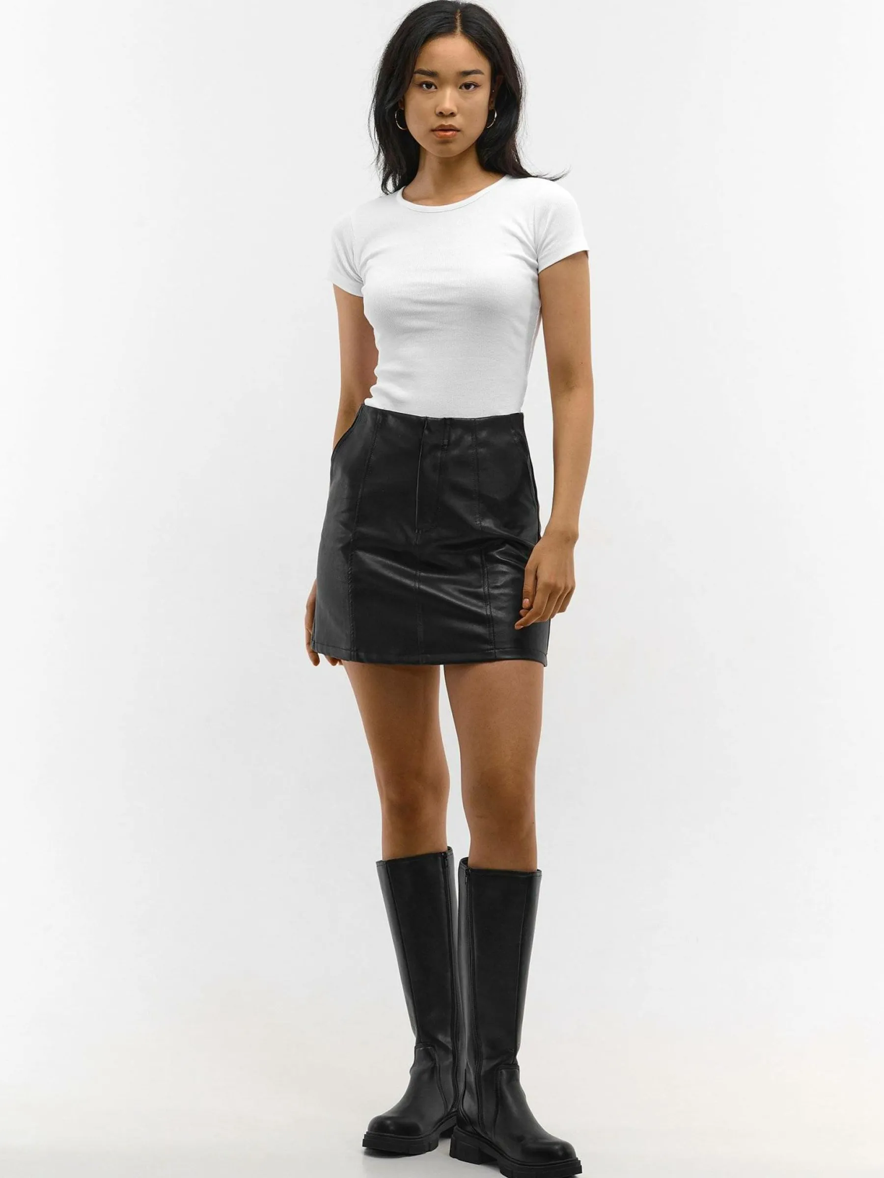 Kolor: czarnyKrój: podstawowyTyp: spódnicaDługość: miniPattern style: pojedynczy kolorDetal: na haczykachMateriał:…