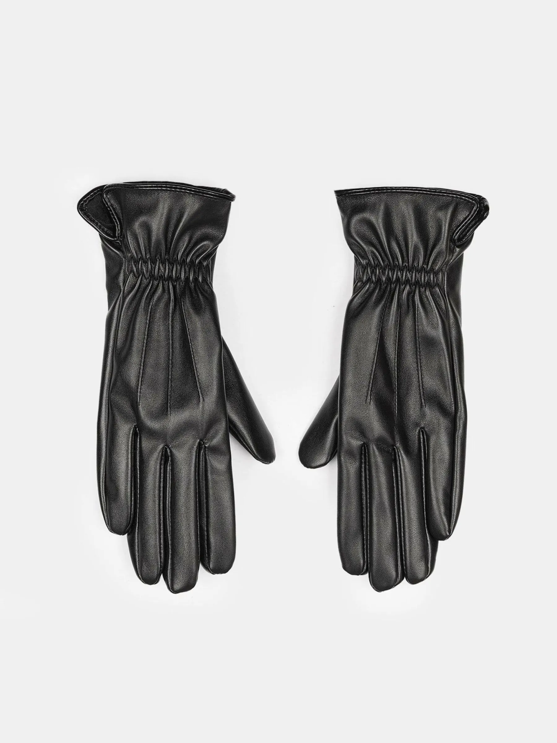 Kolor: czarnyKrój: podstawowyTyp: rękawicePattern style: pojedynczy kolorMateriał: sztuczna skóraPłeć: kobietyOkaz…