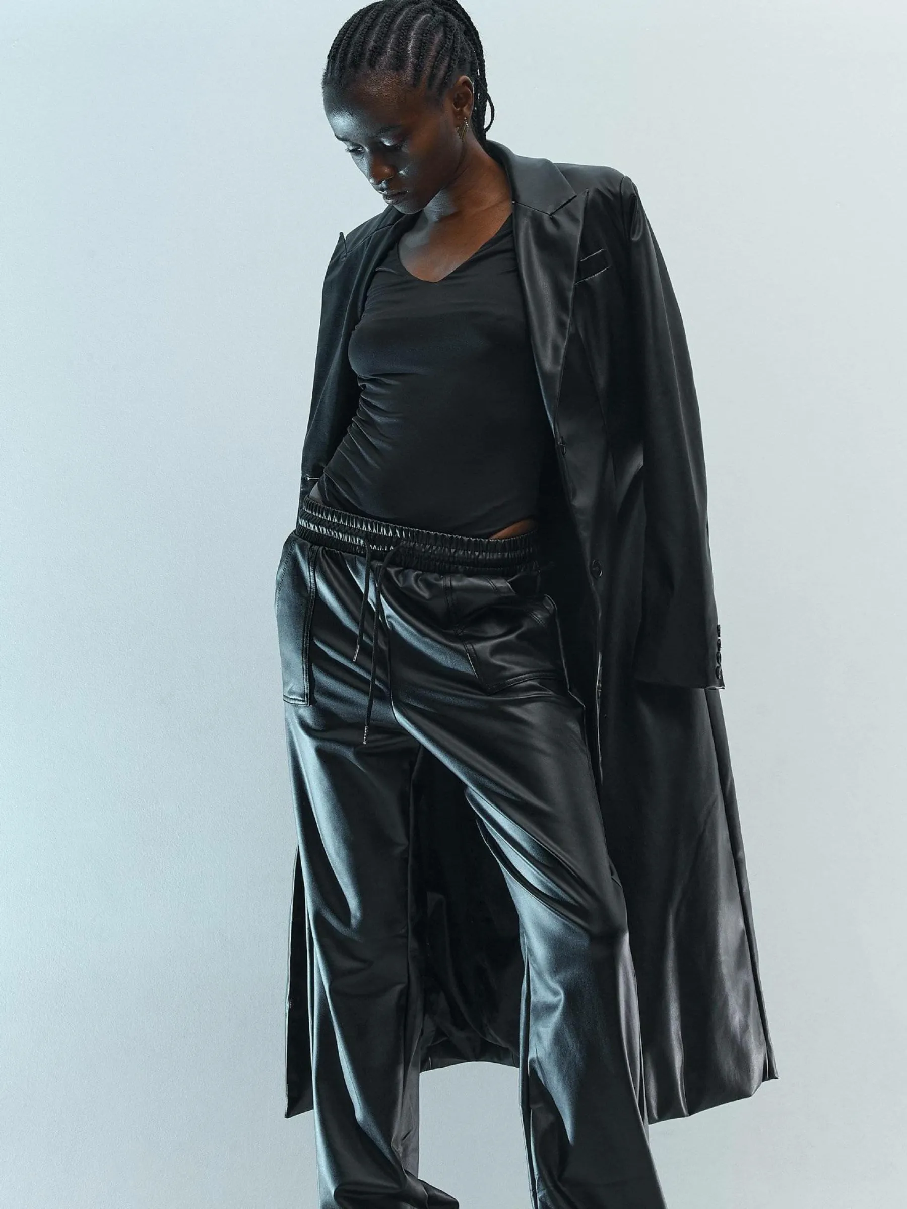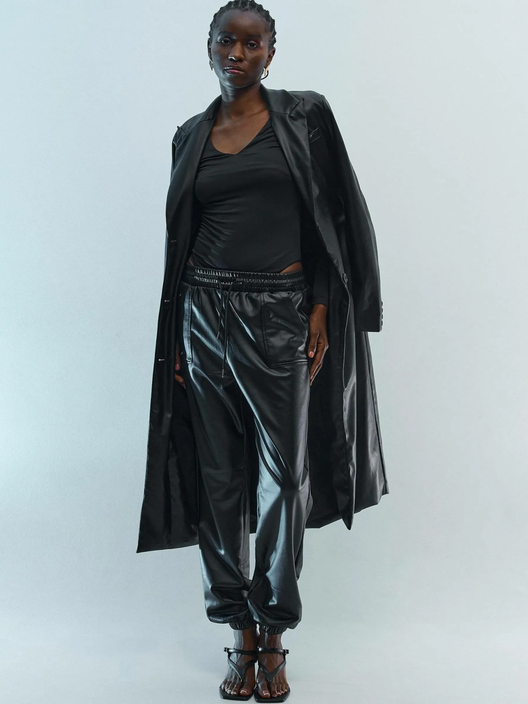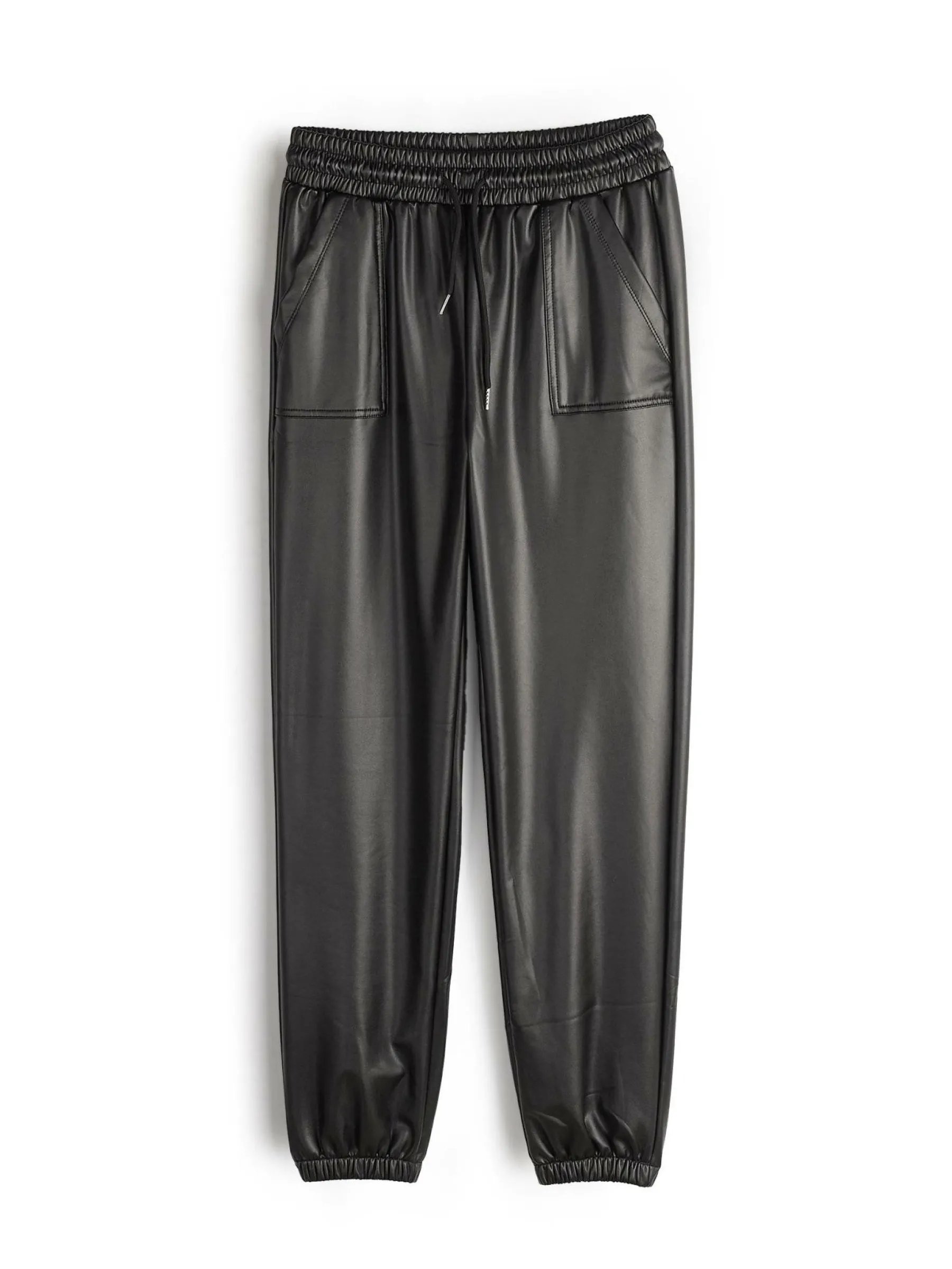 Kolor: czarnyKrój: joggerTyp: spodnieDługość: dlugiePattern style: pojedynczy kolorDetal: z kieszeniami, z elastyczn…