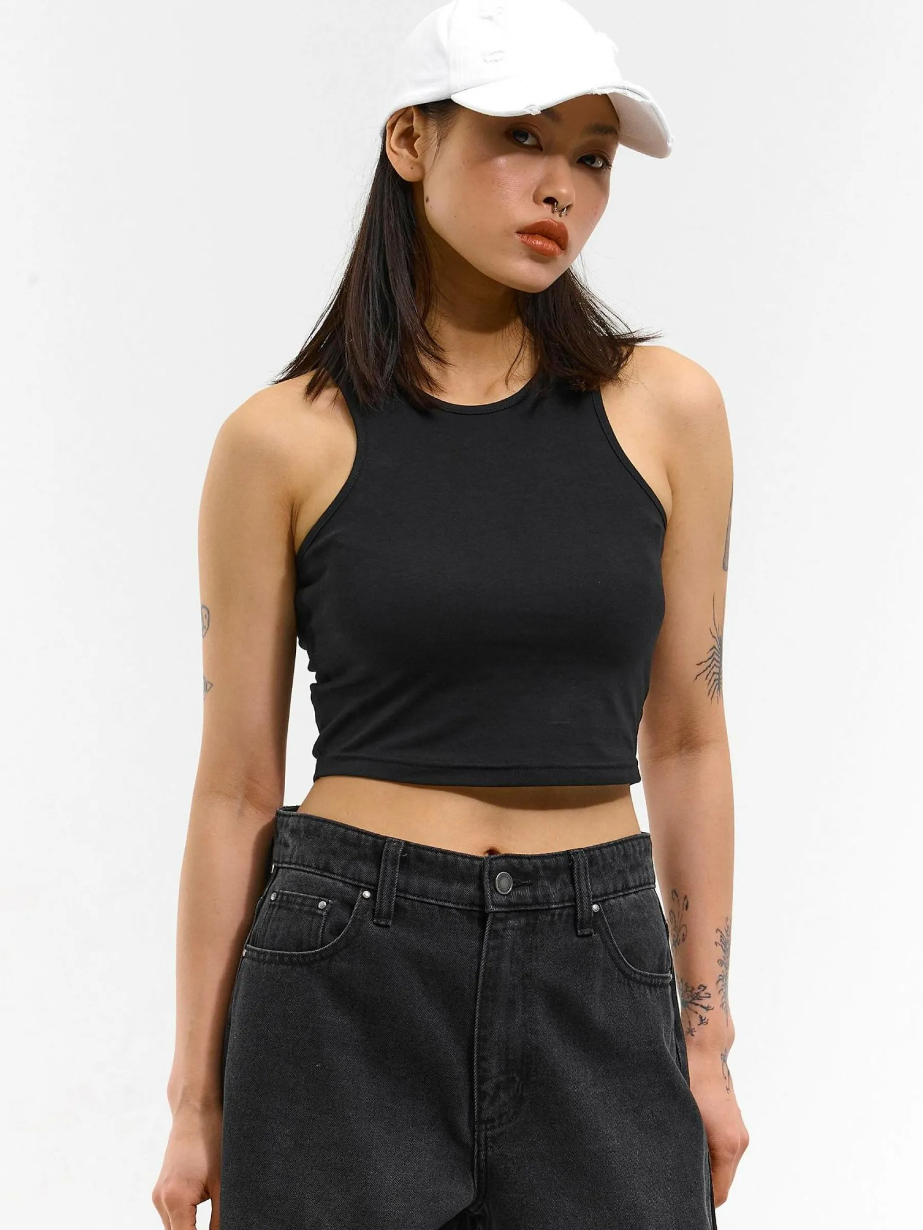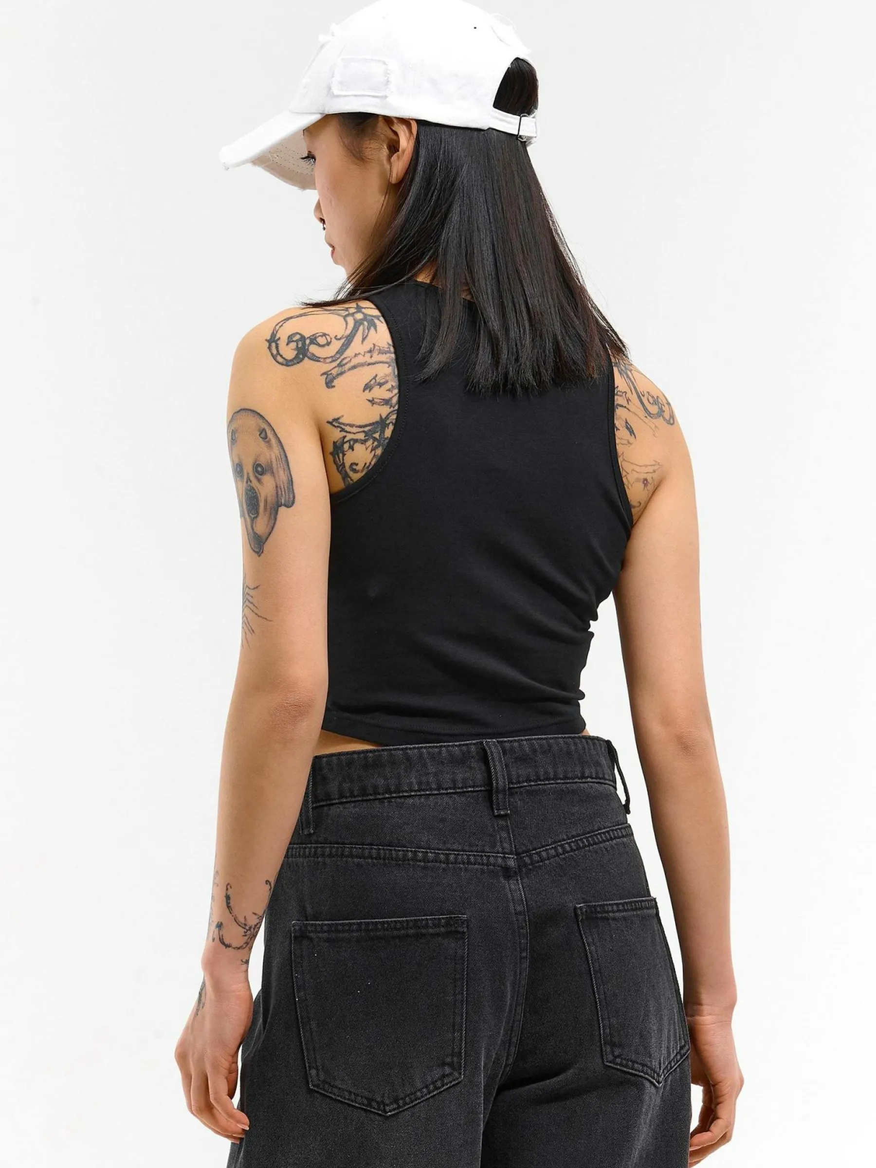 Kolor: czarnyKrój: regularTyp: podkoszulekRekaw: bez rękawówDługość: krótki topPattern style: pojedynczy kolorDet…