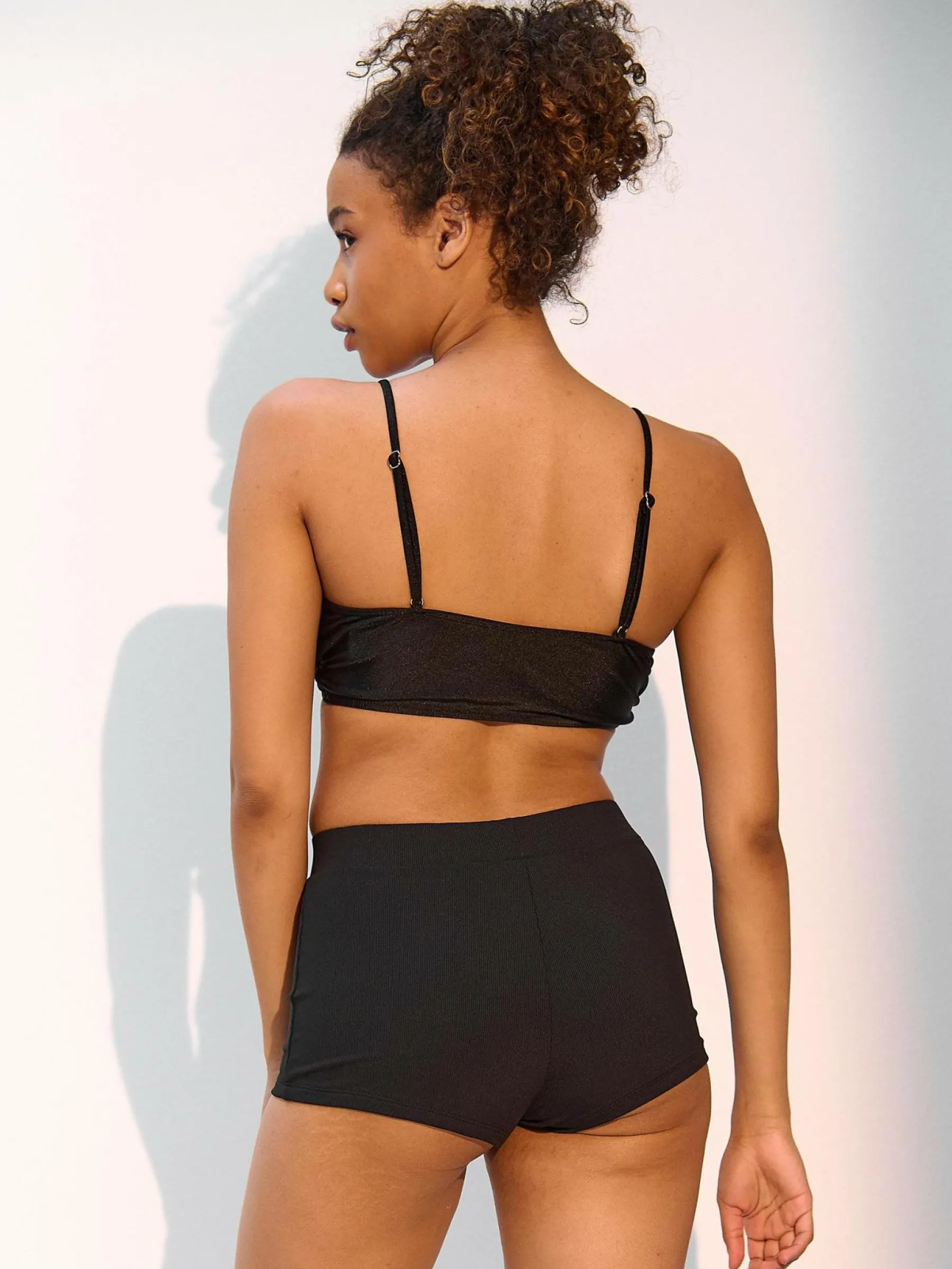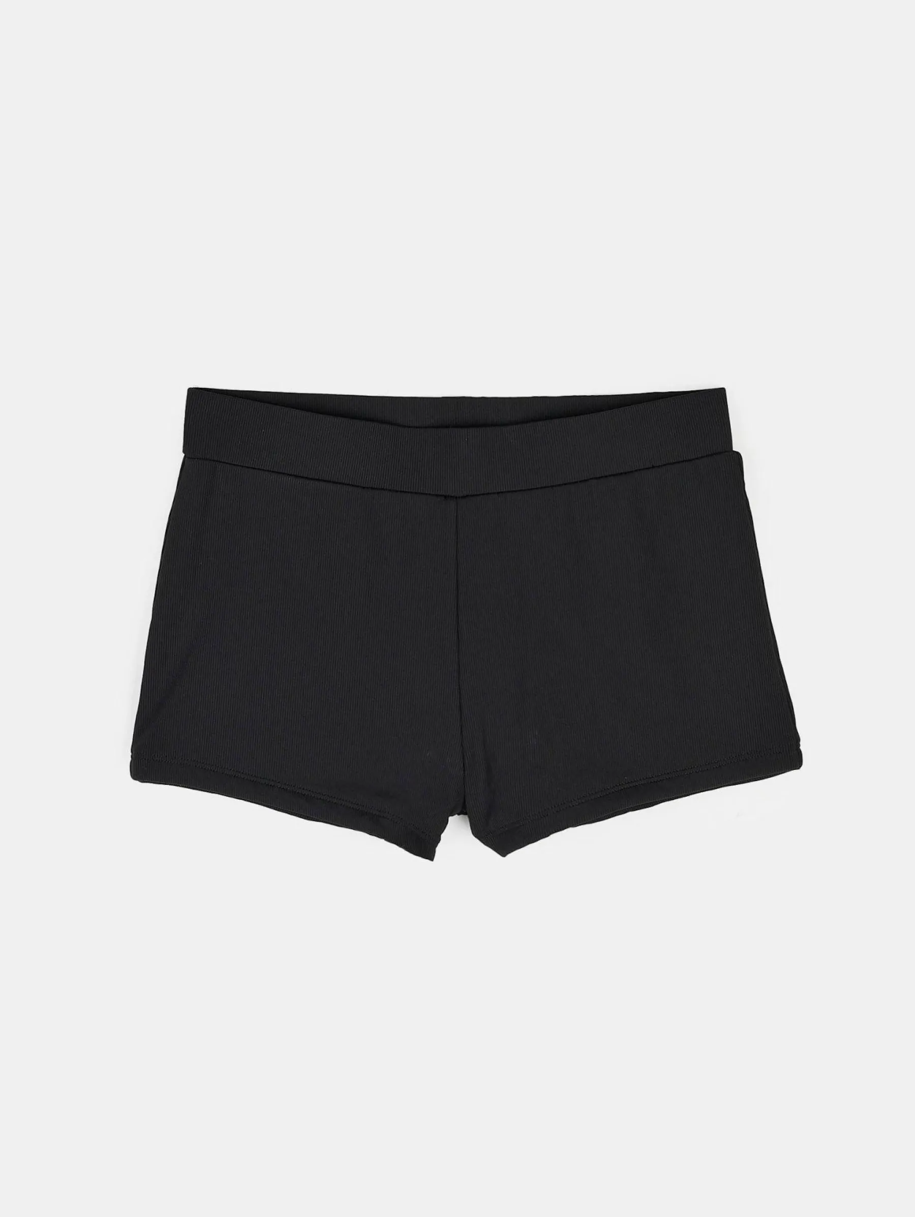 Kolor: czarnyKrój: slimTyp: dół bikiniDługość: krótkiPattern style: pojedynczy kolor, żebrowanyMateriał: nylonP…