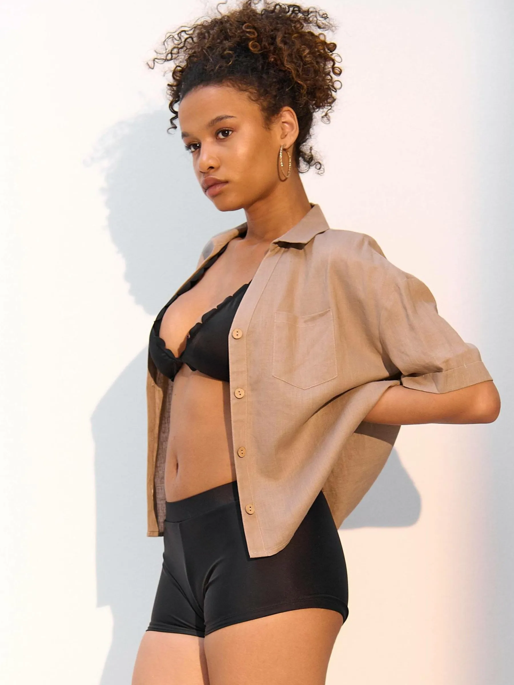 Kolor: czarnyKrój: slim, z wysokim stanemTyp: dół bikiniDługość: krótkiPattern style: pojedynczy kolorMateriał: …