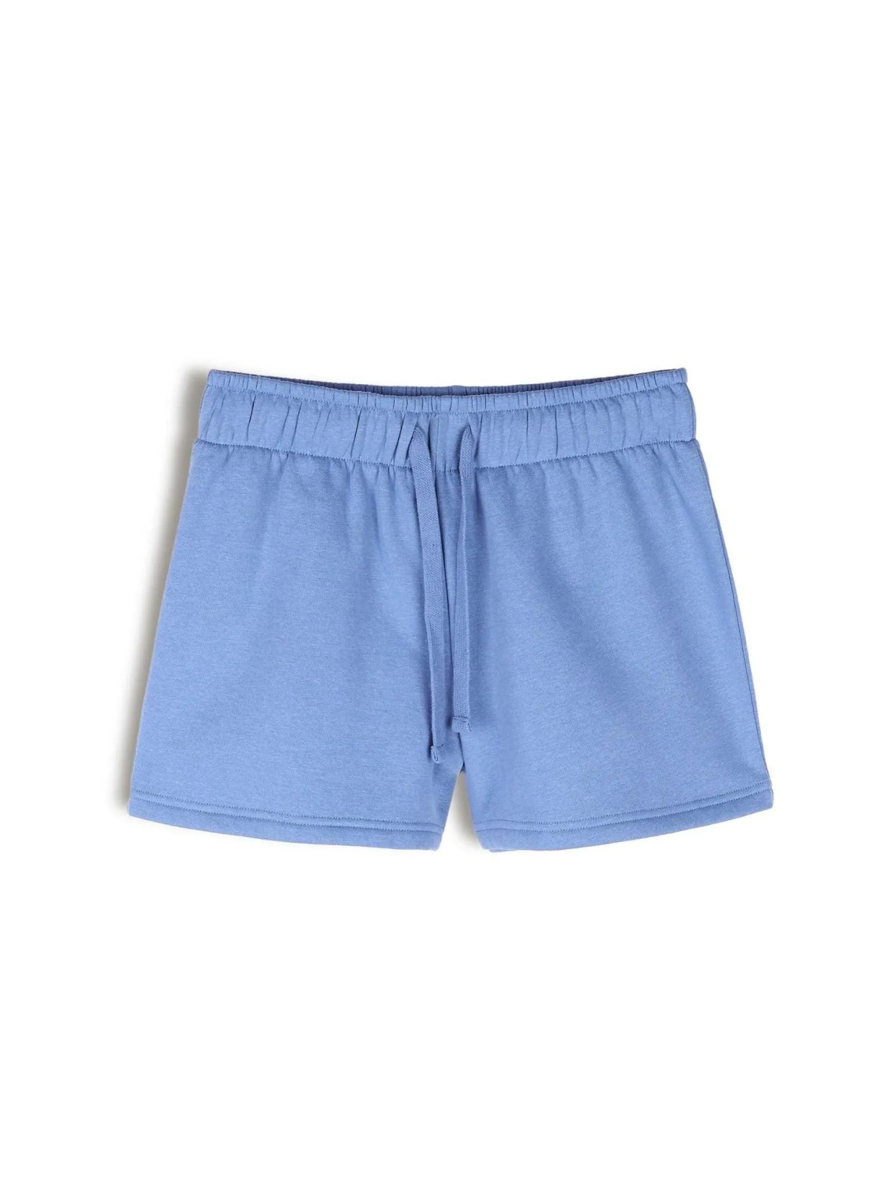 Kolor: niebieskiKrój: straightTyp: spodenkiDługość: krótkiPattern style: pojedynczy kolorDetal: ze sznurowaniemMate…