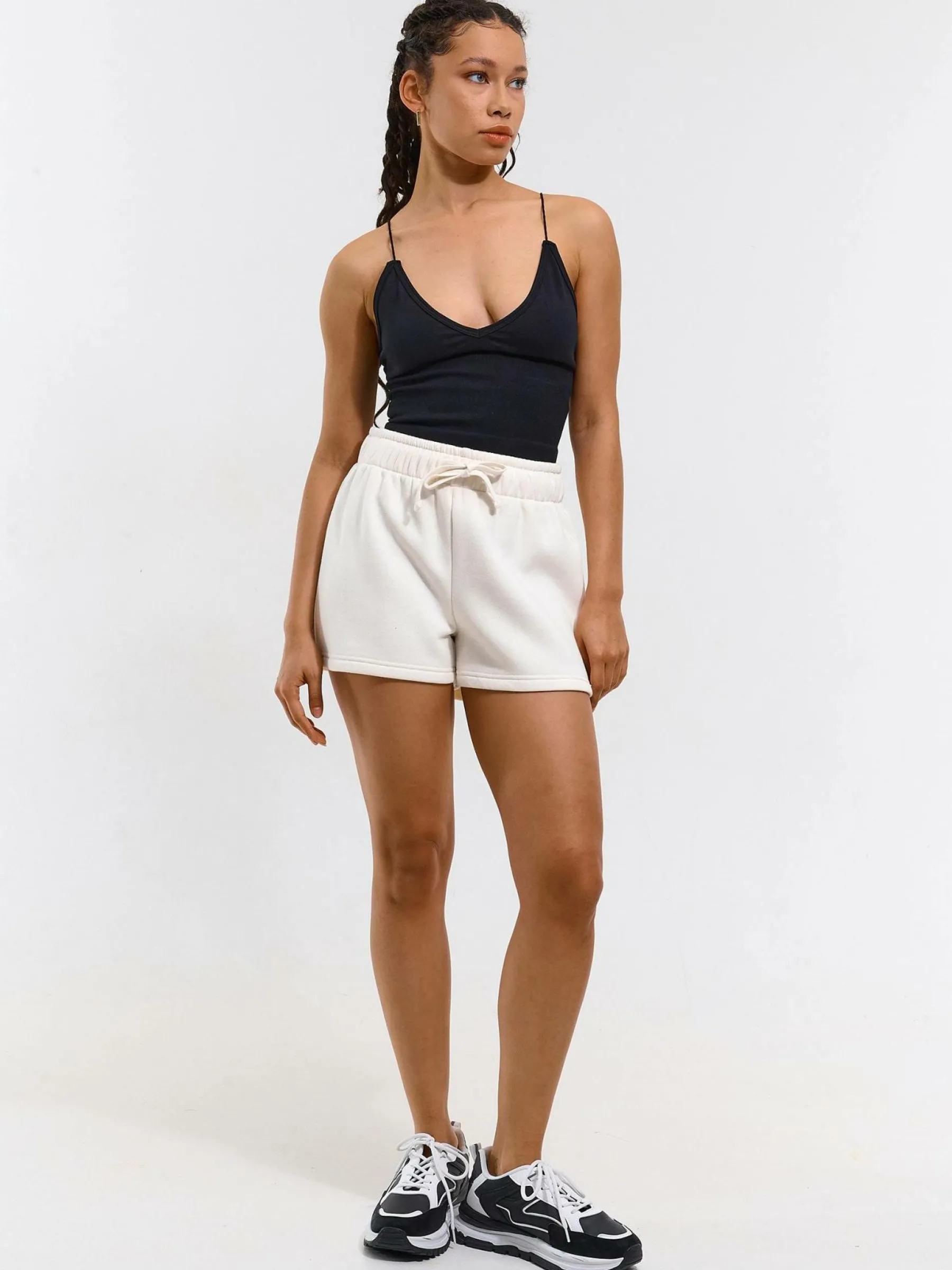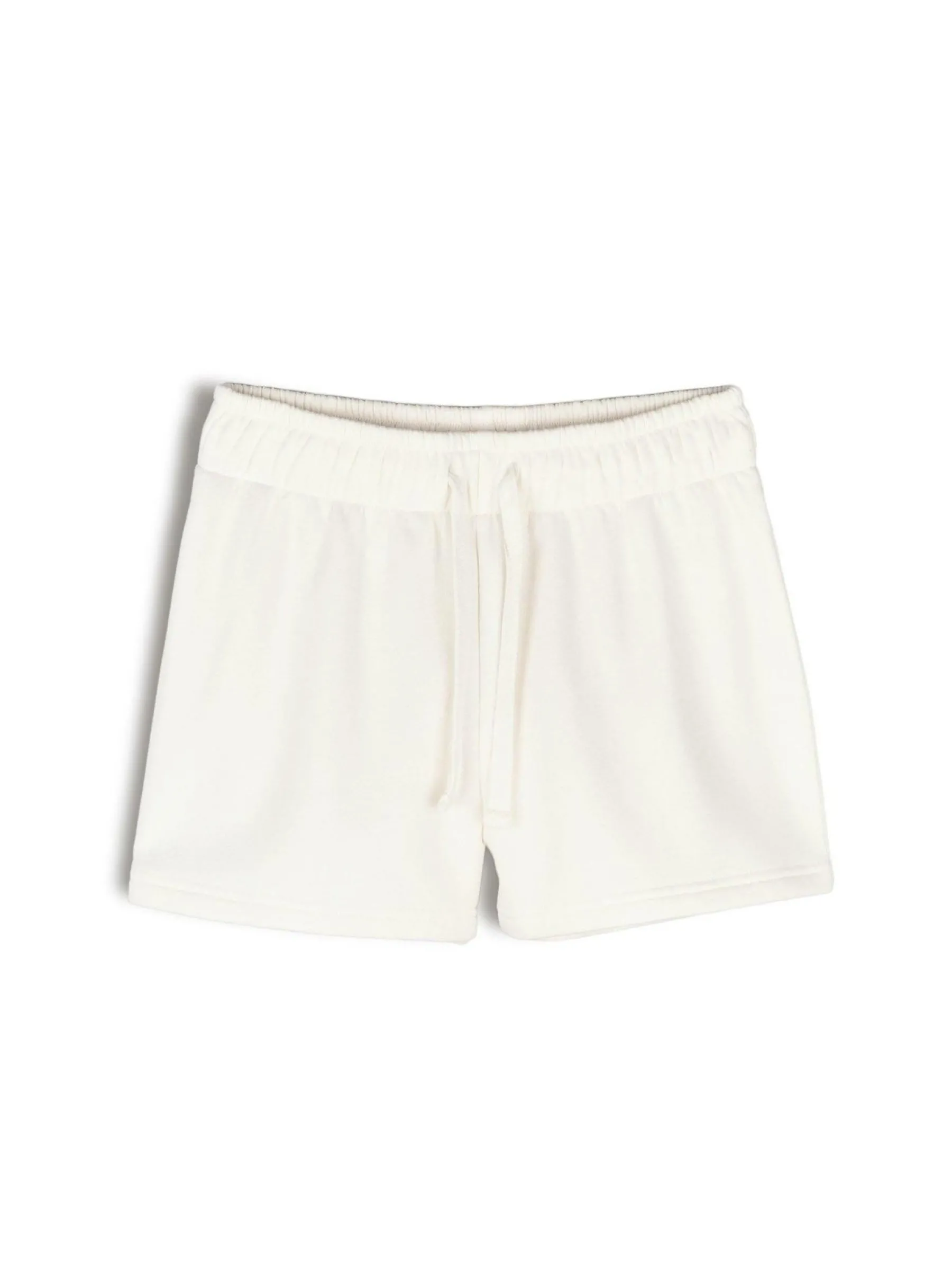 Kolor: białyKrój: straightTyp: spodenkiDługość: krótkiPattern style: pojedynczy kolorDetal: ze sznurowaniemMateria…