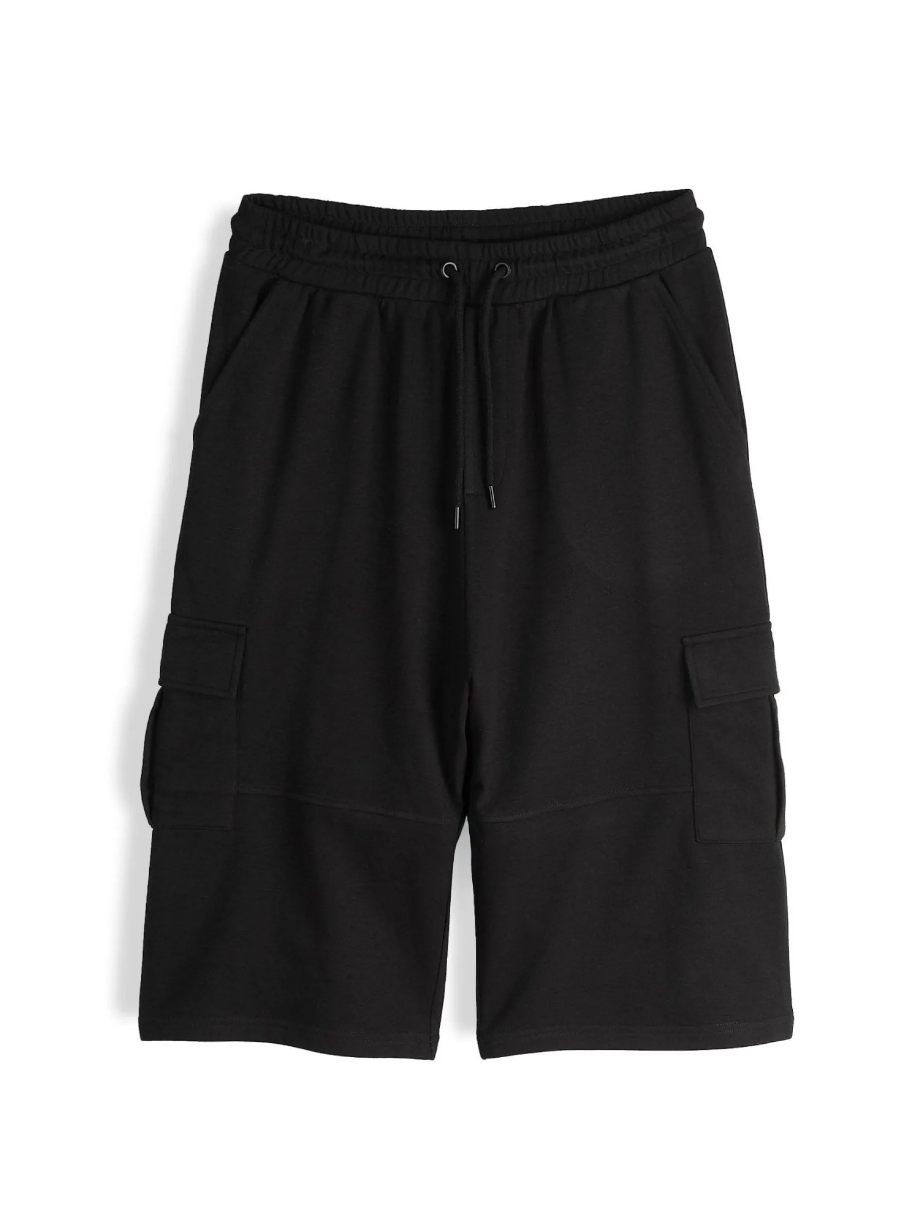 Kolor: czarnyKrój: bermudyTyp: spodenkiDługość: krótkiPattern style: pojedynczy kolorDetal: z kieszeniami, ze sznur…