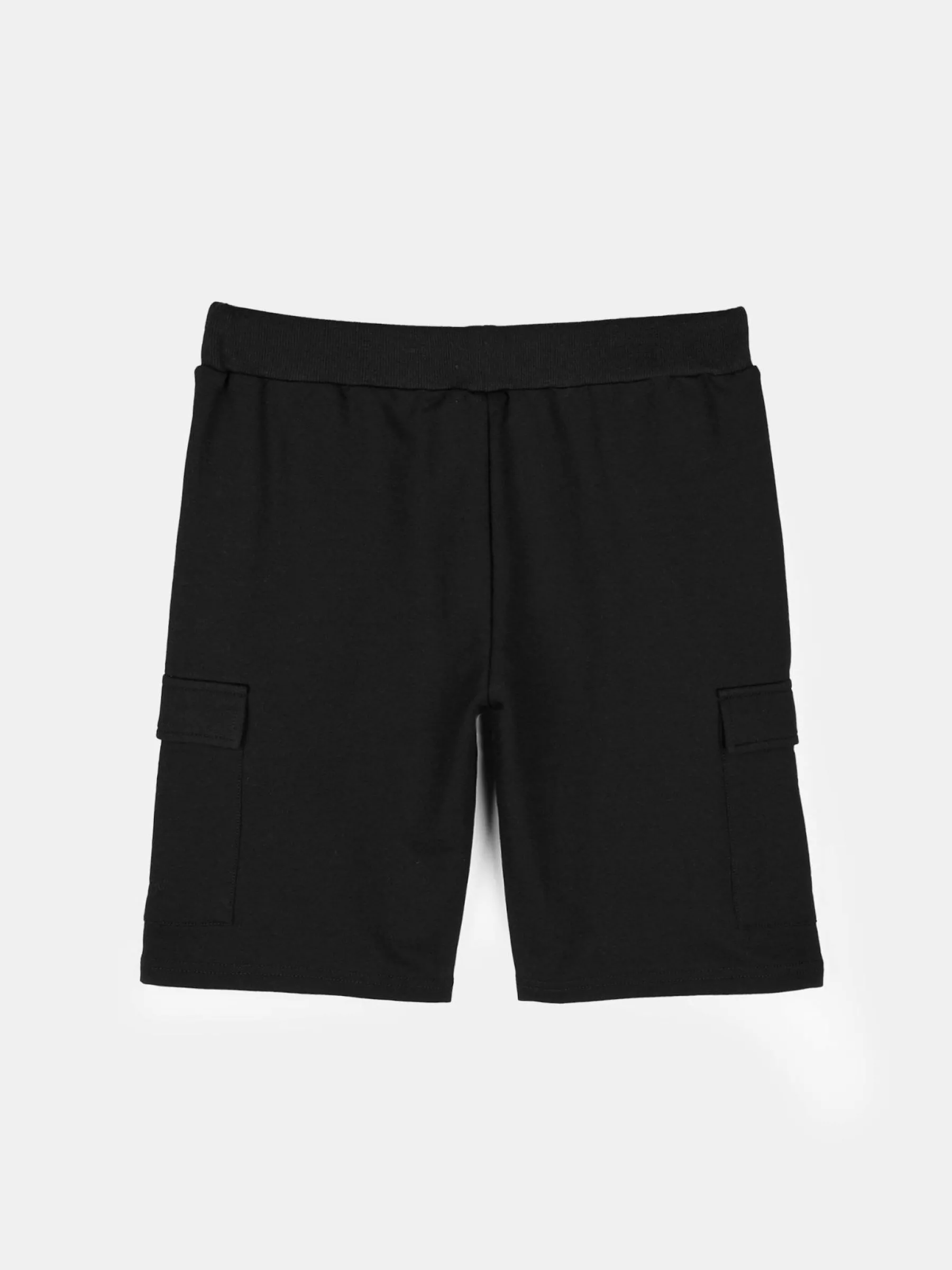 Kolor: czarnyKrój: cargoTyp: spodenkiDługość: krótkiPattern style: pojedynczy kolorDetal: ze sznurowaniemMateriał:…