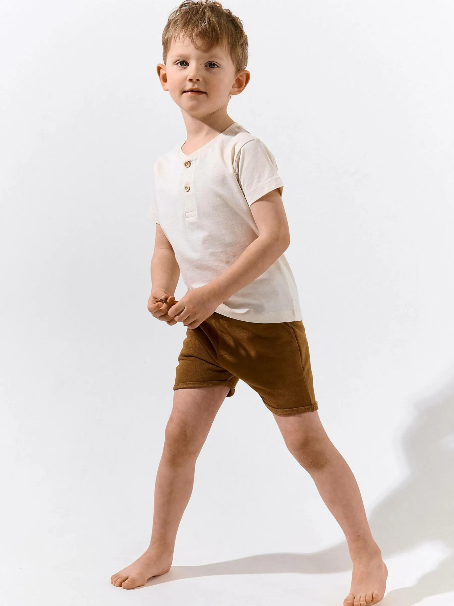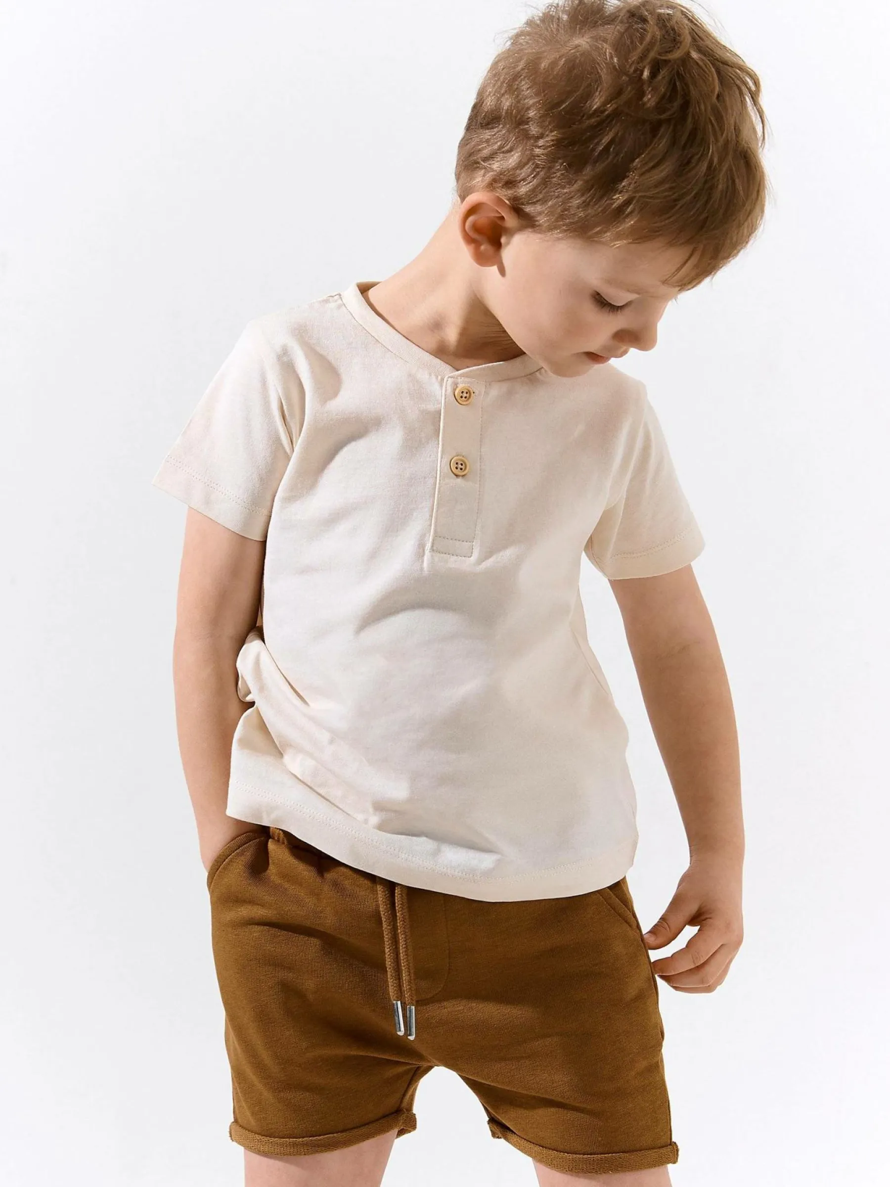 Kolor: brązowyKrój: straightTyp: spodenkiDługość: krótkiPattern style: pojedynczy kolorDetal: ze sznurowaniem, z k…