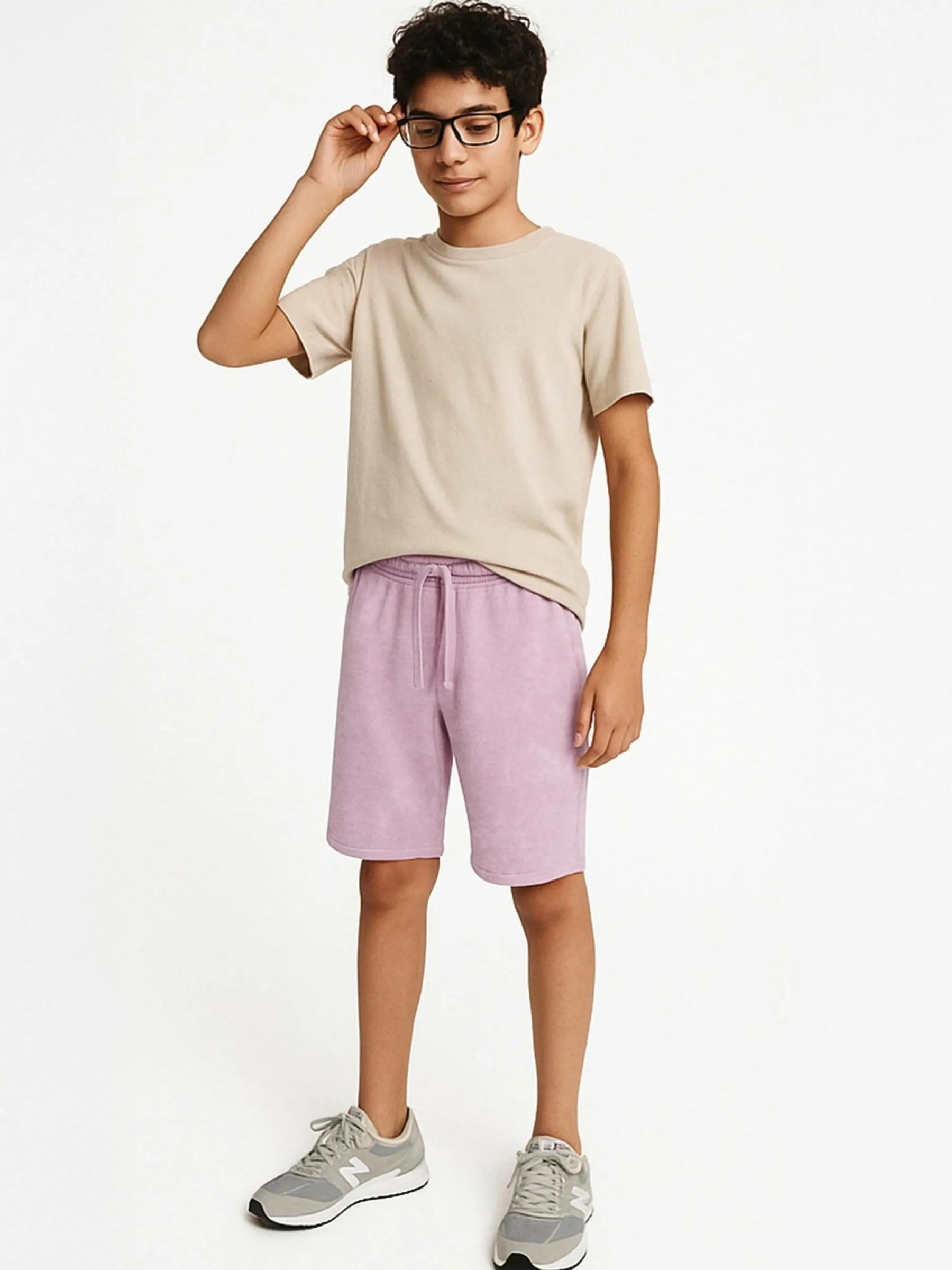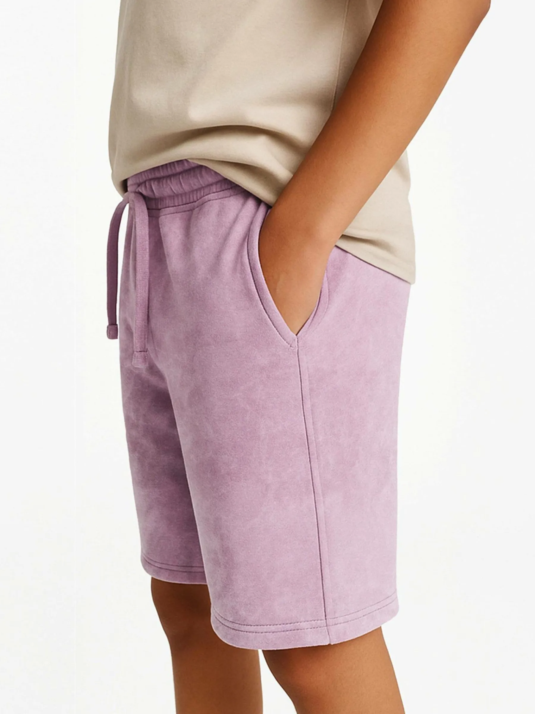 Kolor: purpurowyKrój: regularTyp: spodenkiDługość: krótkiPattern style: pojedynczy kolorDetal: ze sznurowaniem, z k…