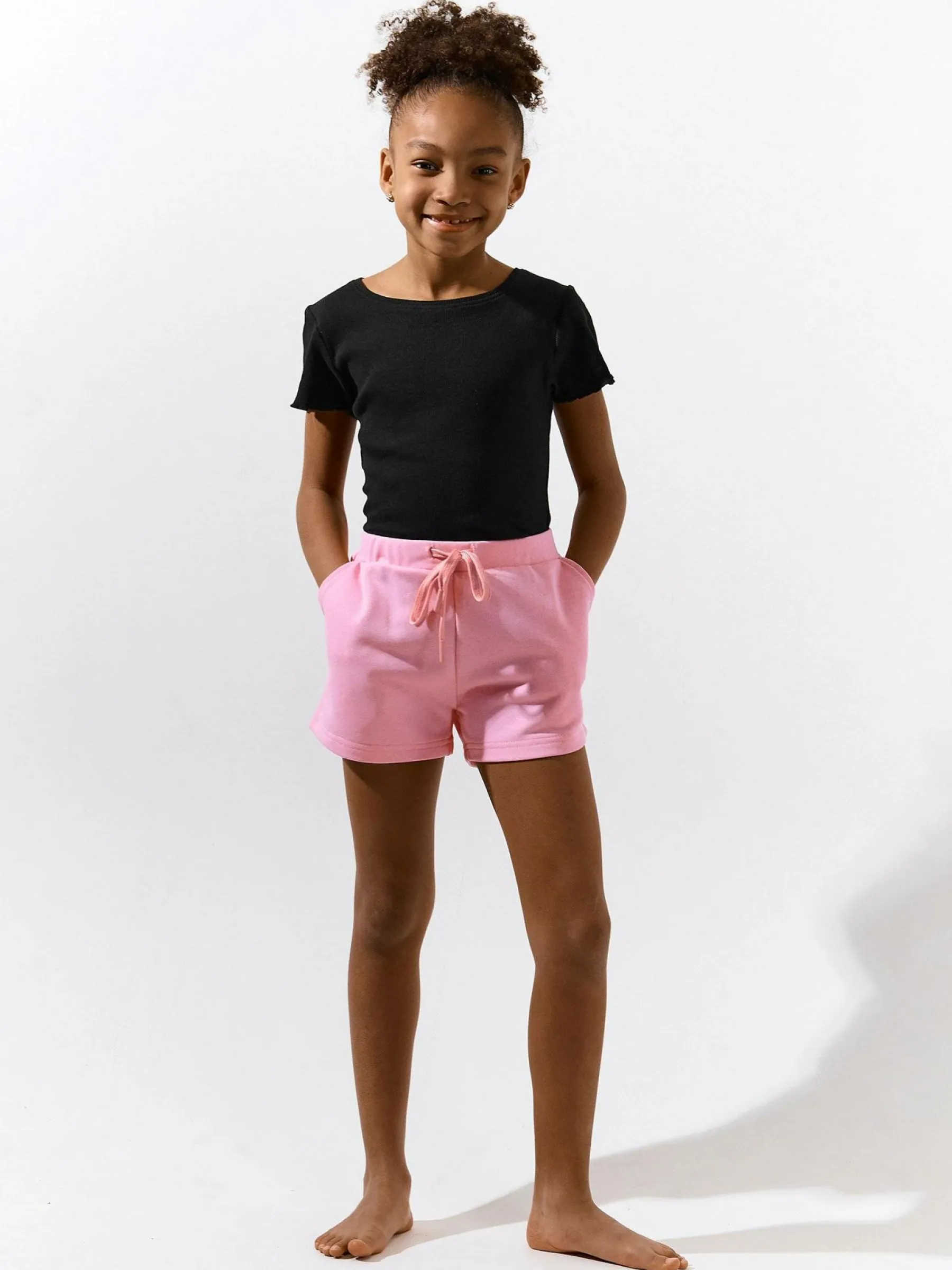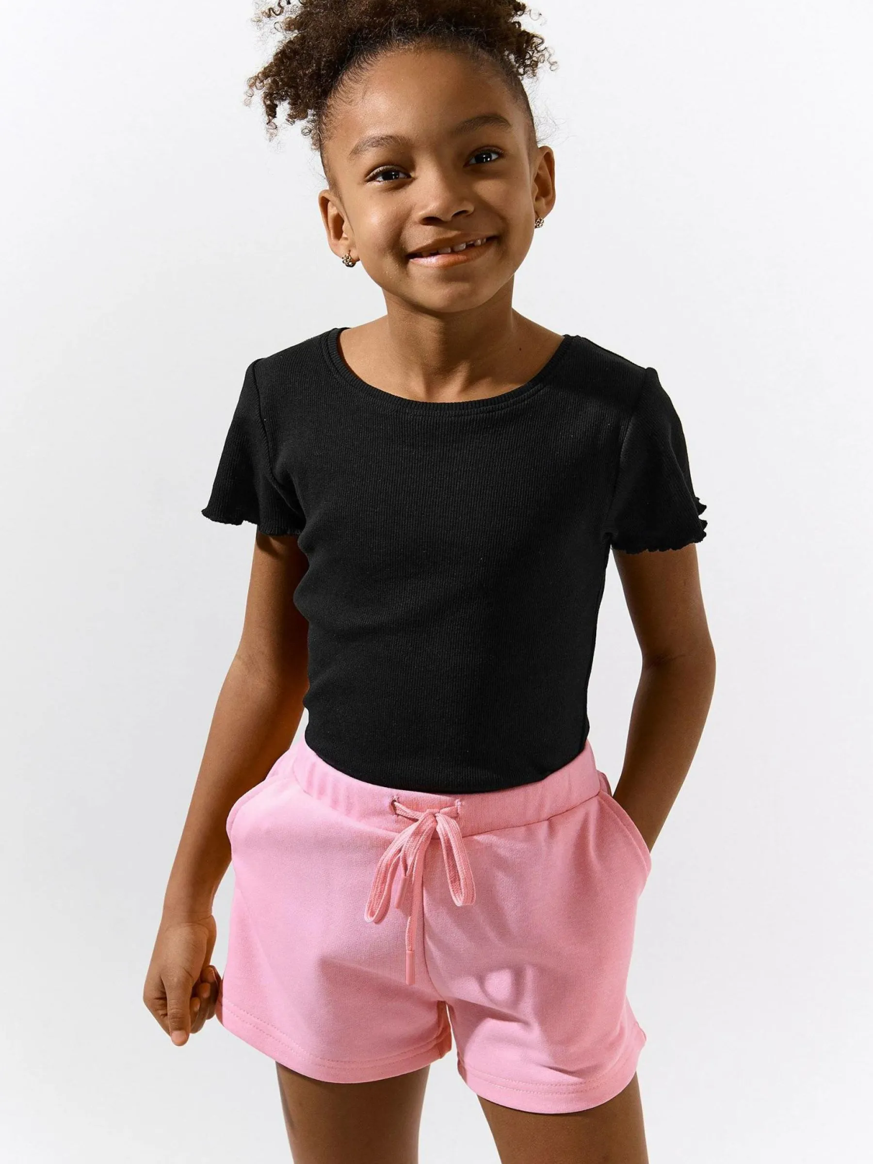 Kolor: różowyKrój: straightTyp: spodenkiDługość: krótkiPattern style: pojedynczy kolorDetal: ze sznurowaniemMater…