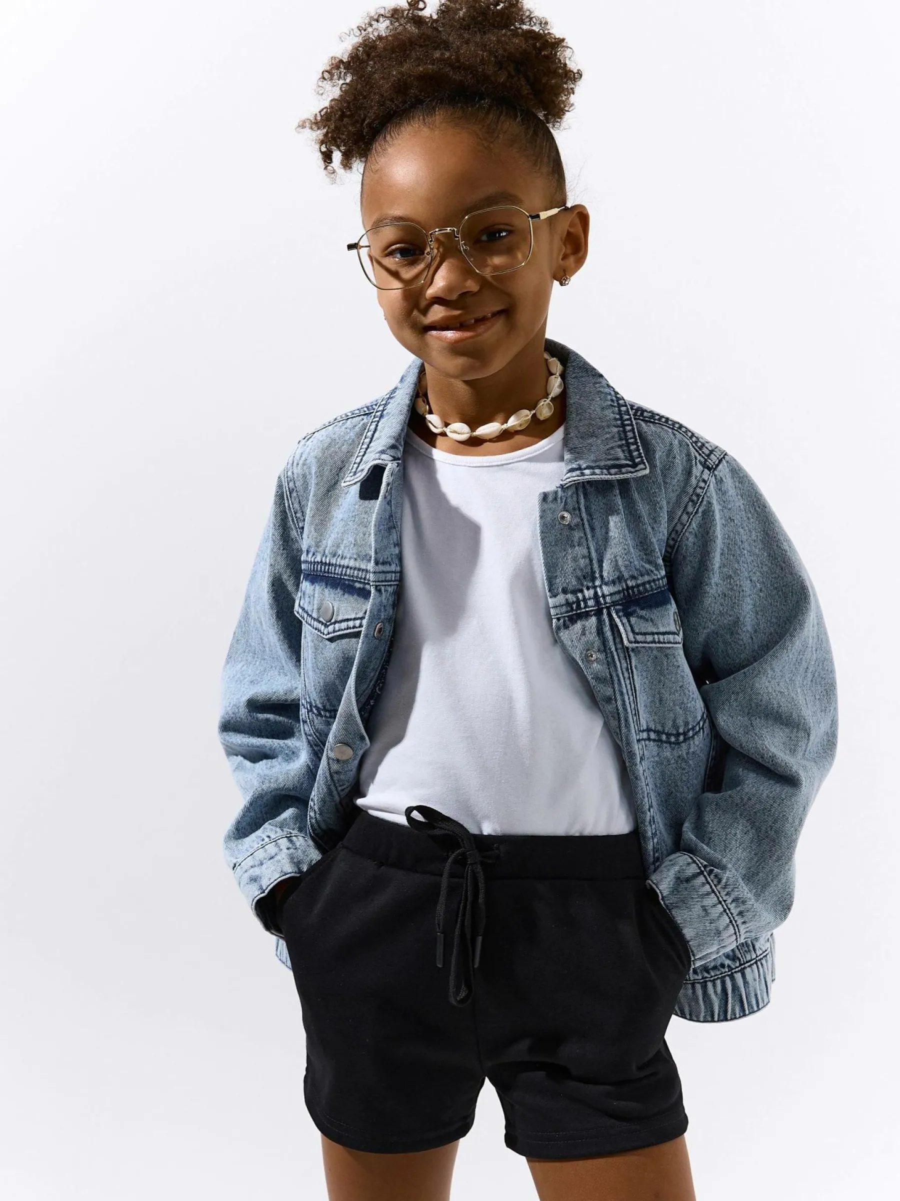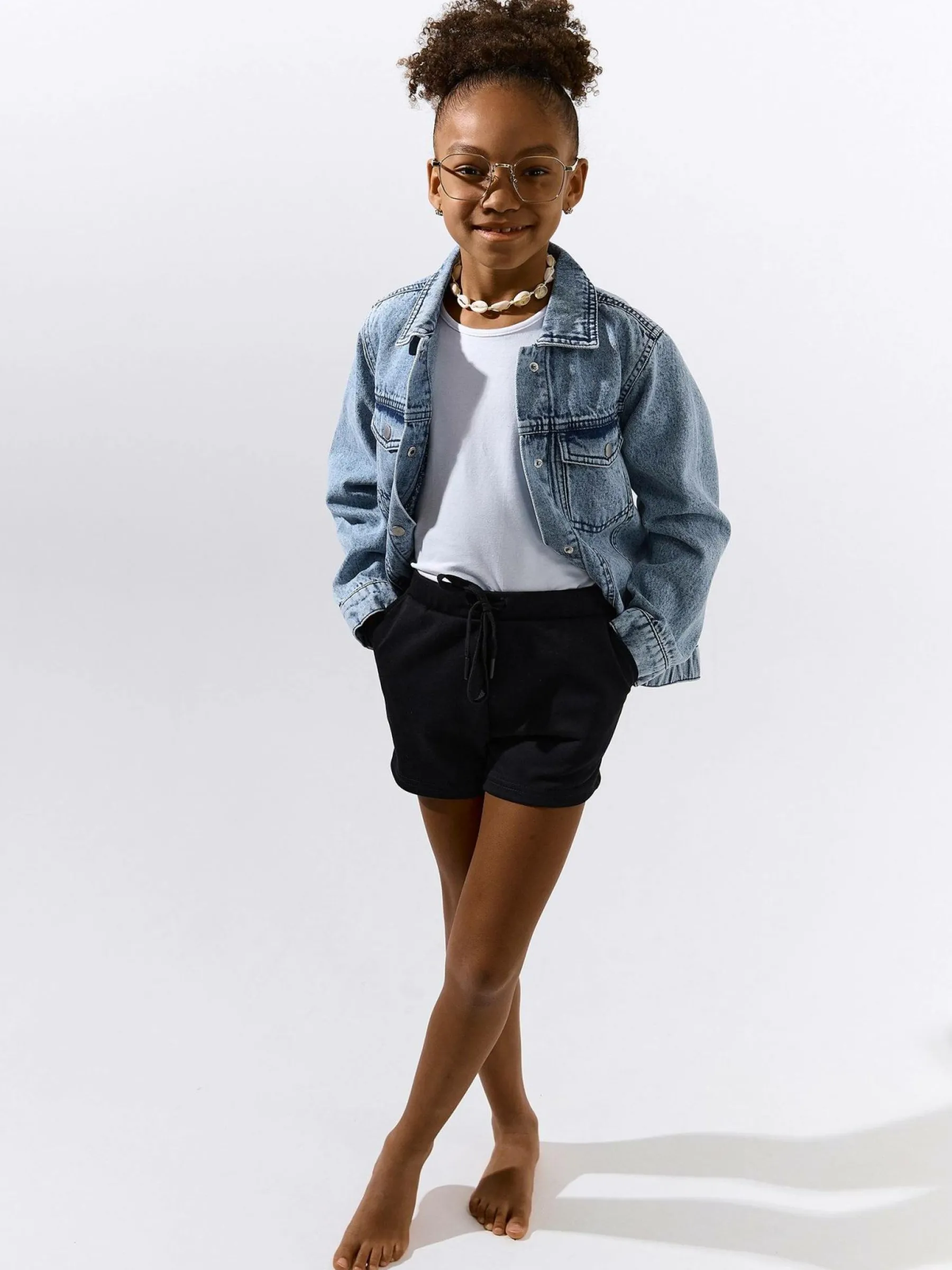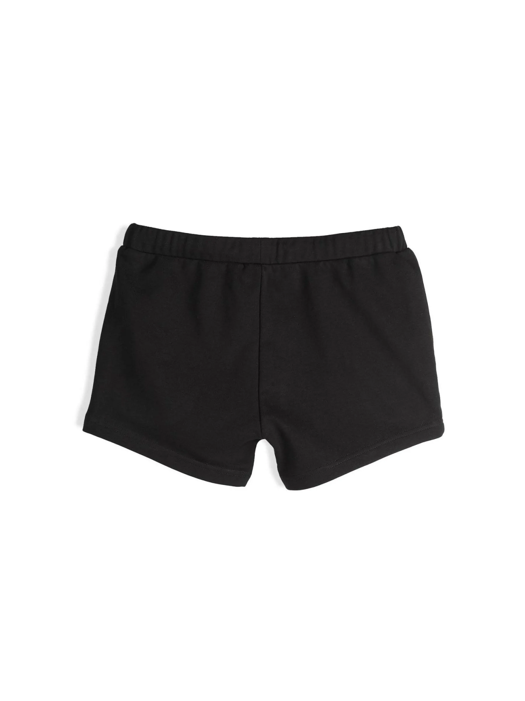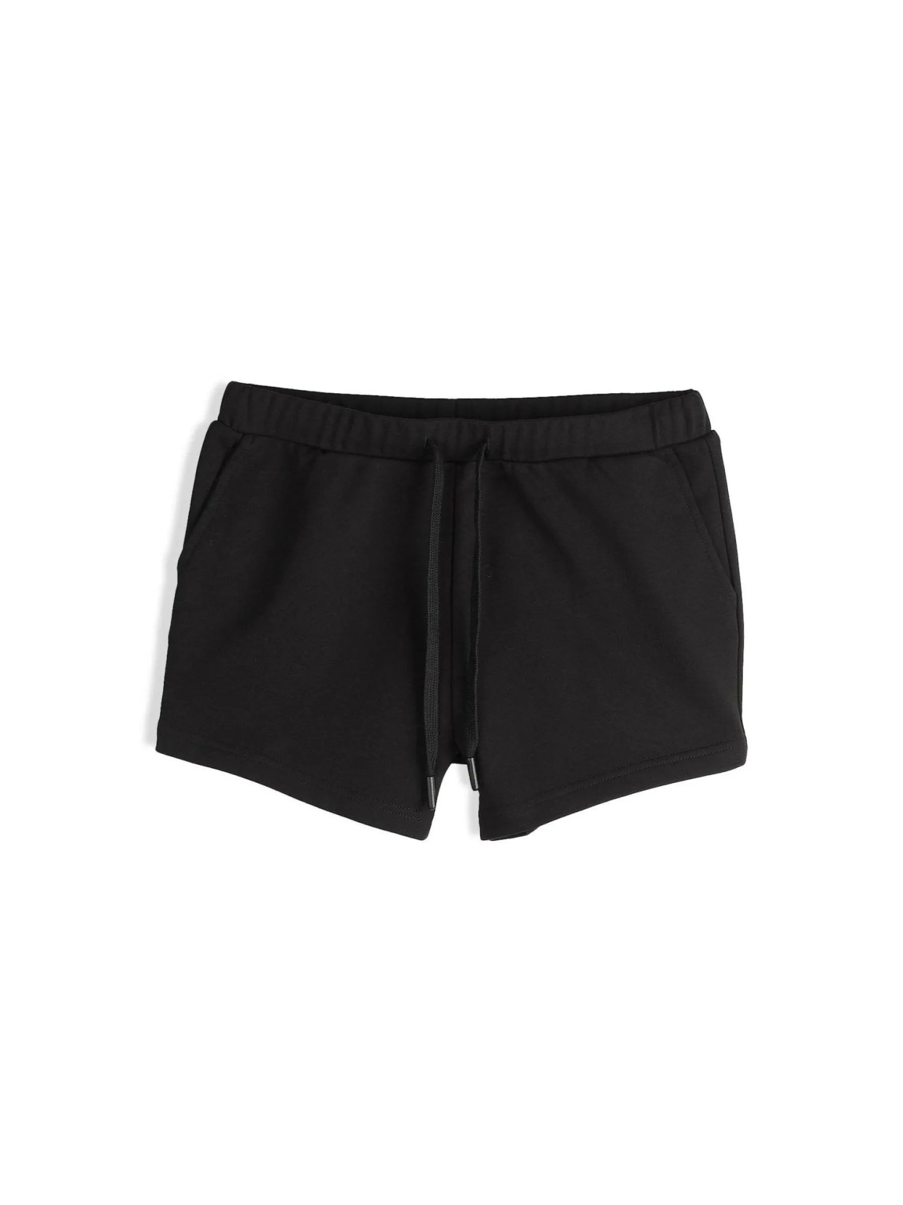 Kolor: czarnyKrój: straightTyp: spodenkiDługość: krótkiPattern style: pojedynczy kolorDetal: ze sznurowaniemMateria…