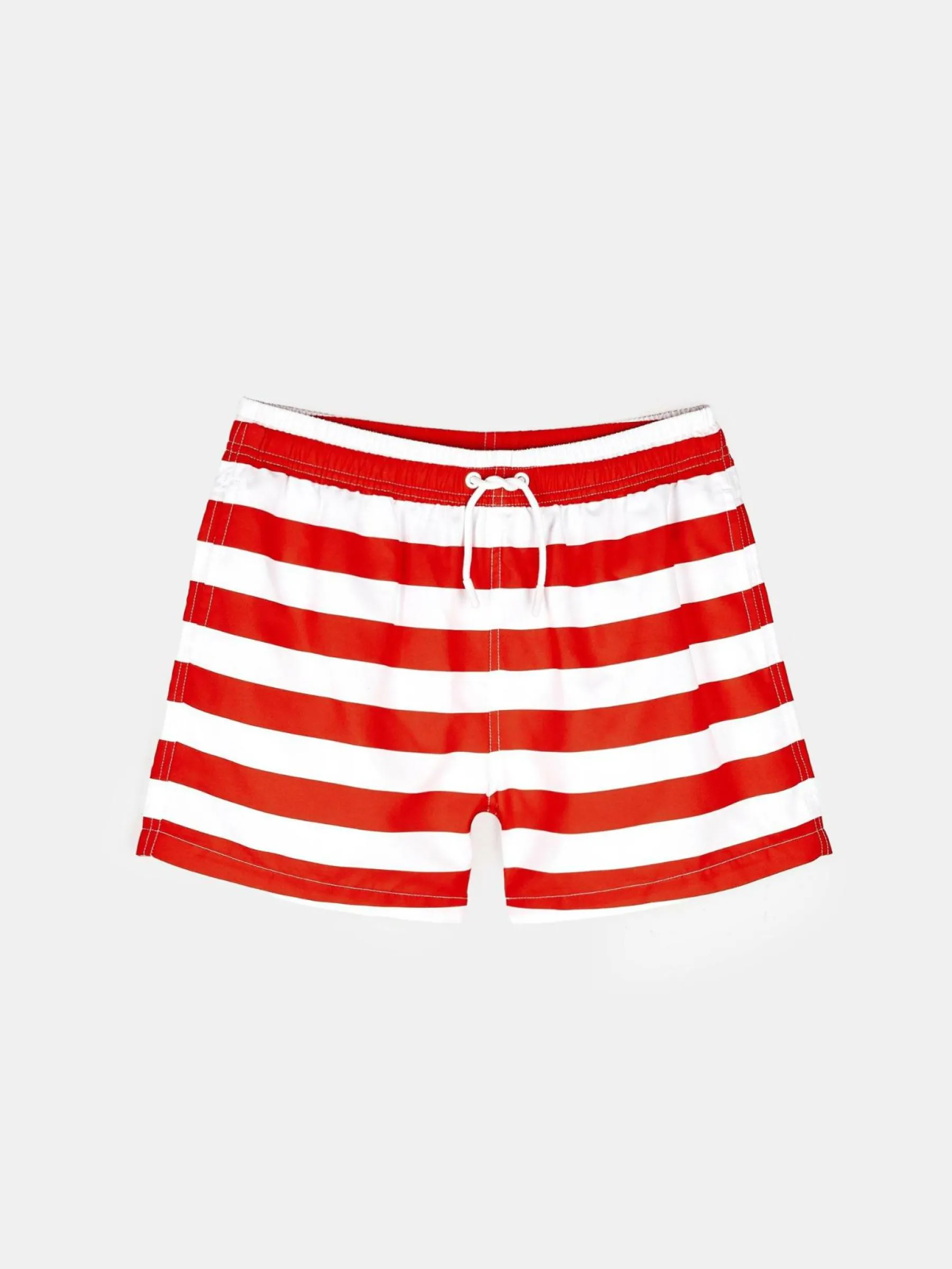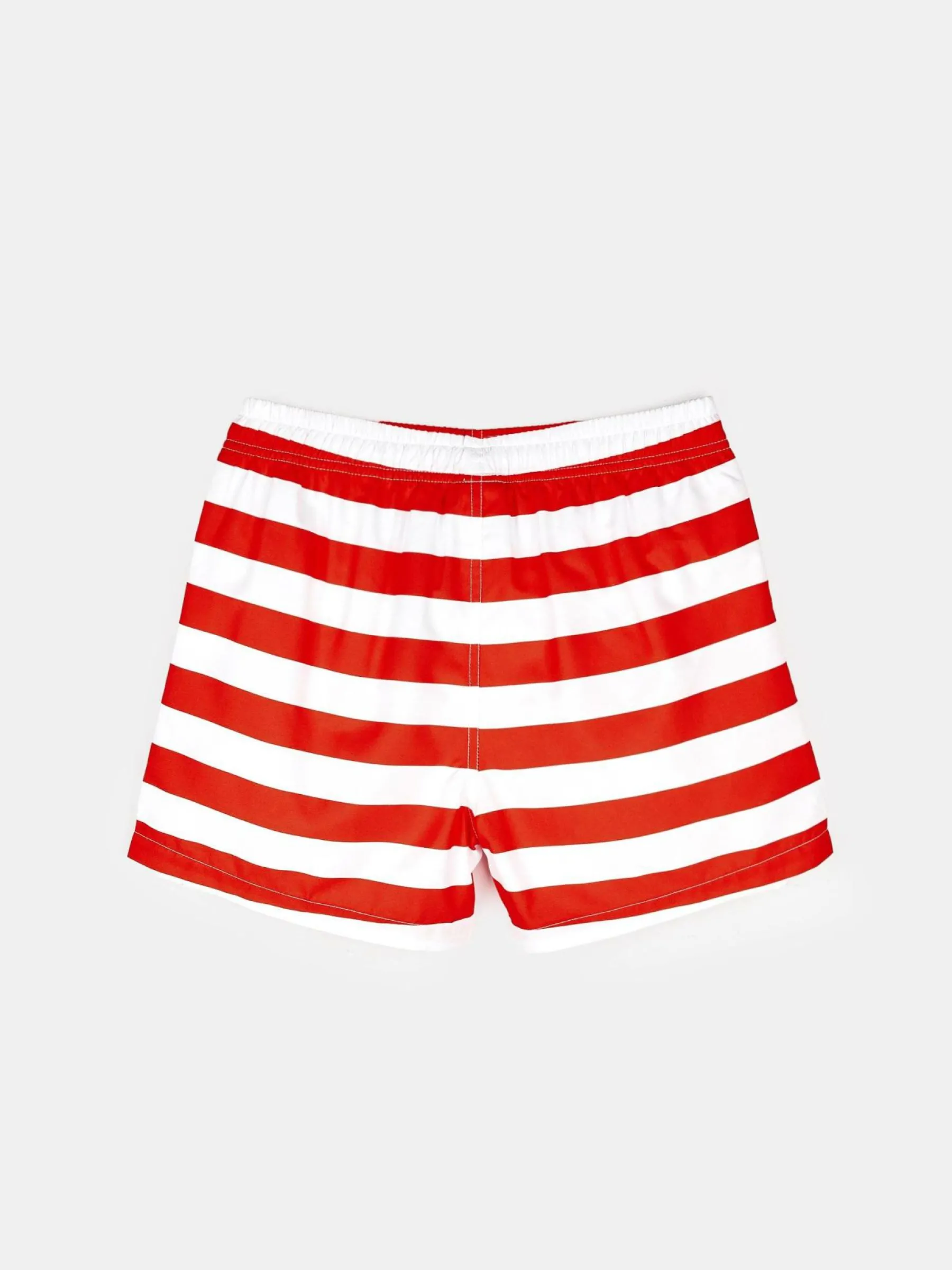 Kolor: czerwonyKrój: straightTyp: kostiumy kąpieloweDługość: krótkiPattern style: w prążkiDetal: ze sznurowaniem…