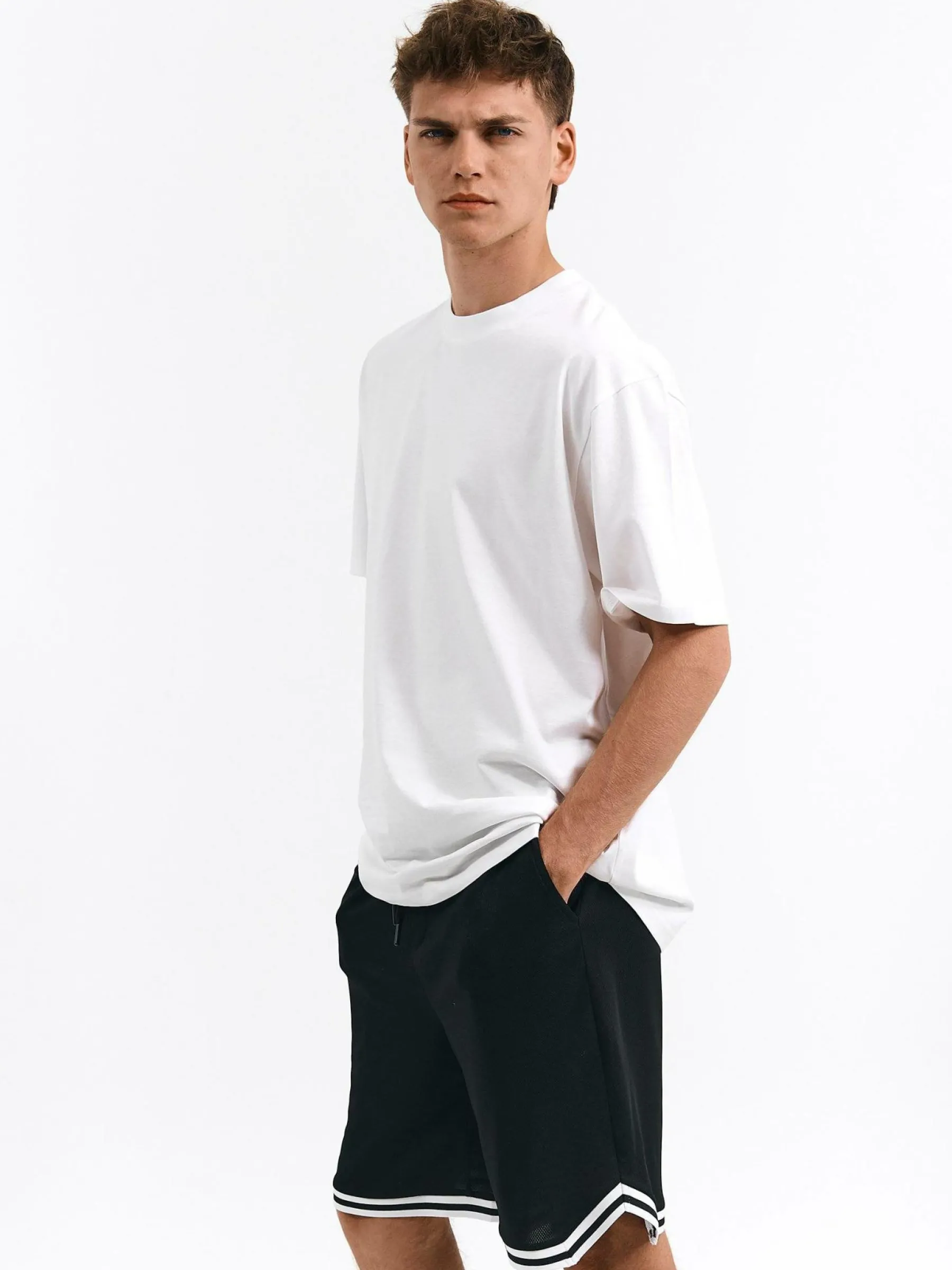 Kolor: czarnyKrój: regularDługość: krótkiPattern style: pojedynczy kolorDetal: ze sznurowaniem, z kieszeniami, z pa…