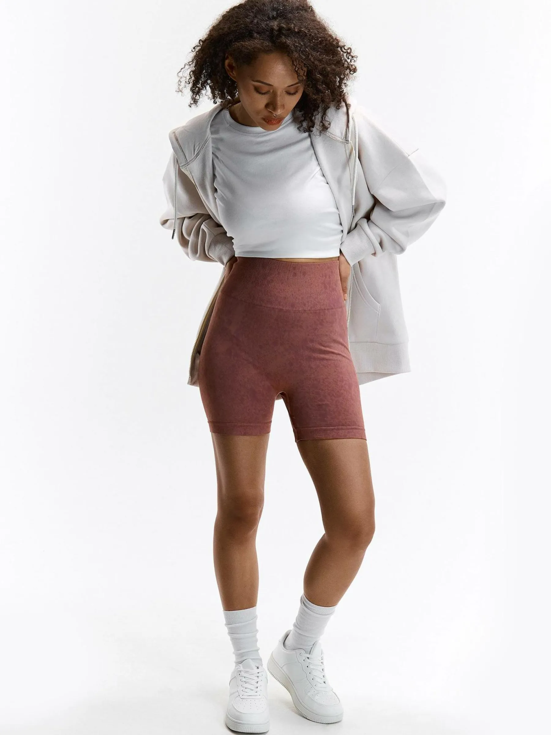 Kolor: różowyKrój: push-up, bikerTyp: spodenkiDługość: krótkiPattern style: pojedynczy kolorDetal: z elastyczną …