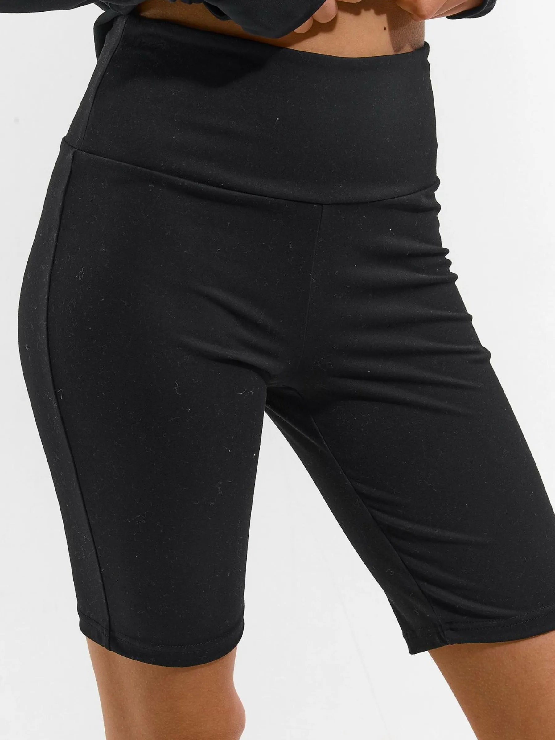 Kolor: czarnyKrój: bikerTyp: spodenkiDługość: krótkiPattern style: pojedynczy kolorMateriał: syntetycznePłeć: ko…