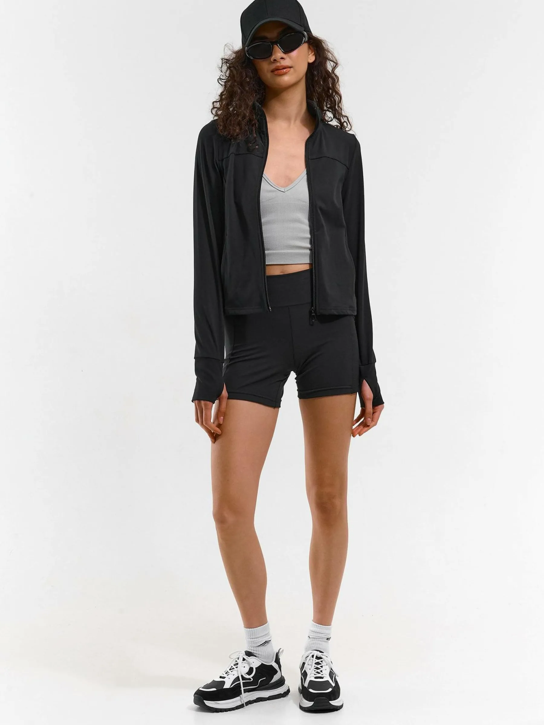 Kolor: czarnyKrój: bikerTyp: spodenkiDługość: krótkiPattern style: pojedynczy kolorDetal: z kieszeniamiMateriał: s…