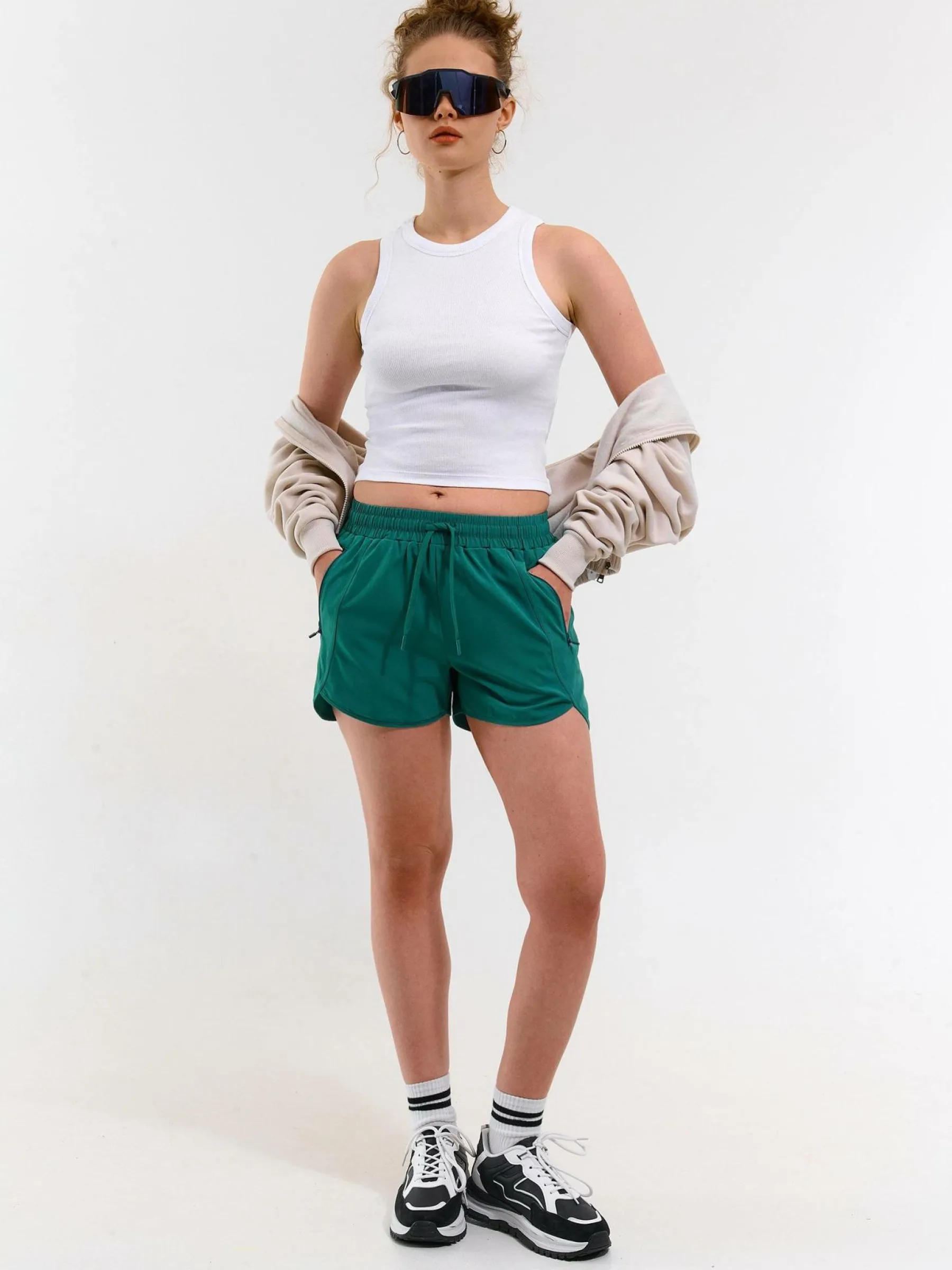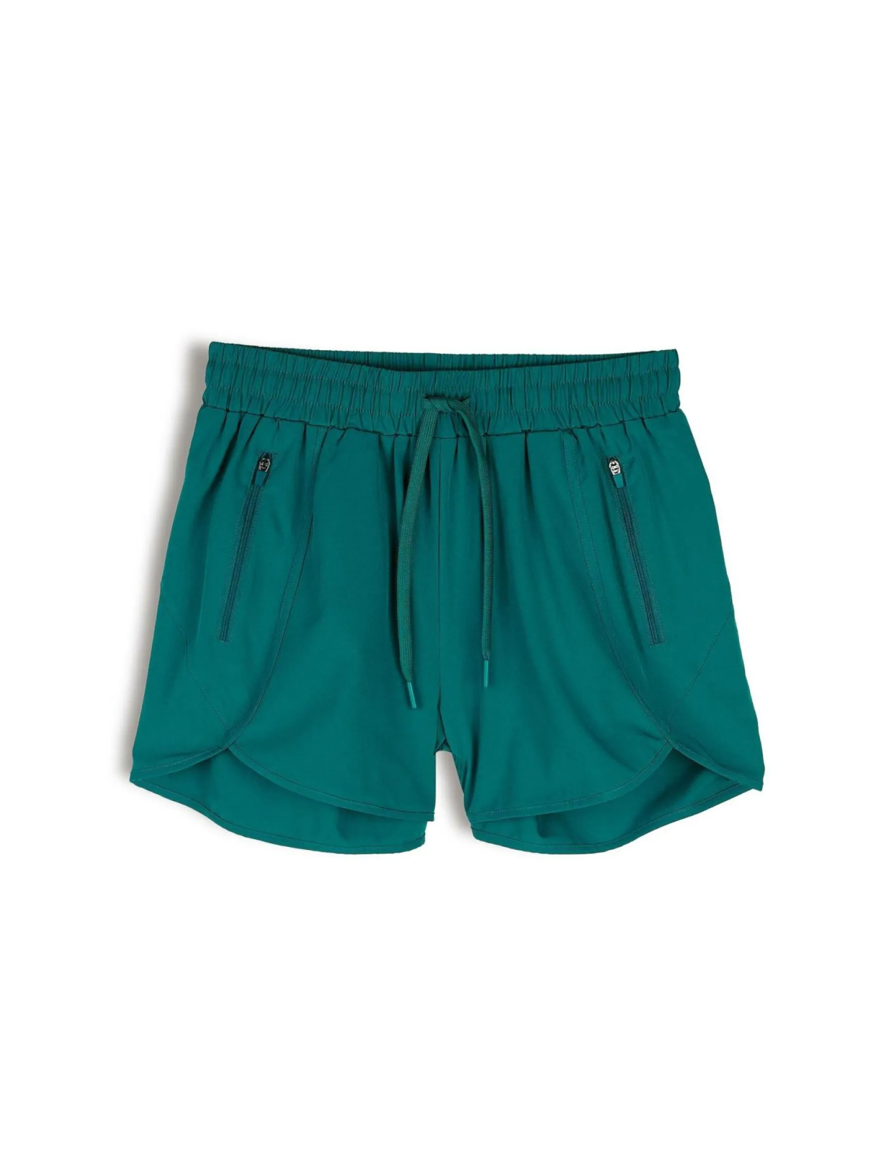 Kolor: zielonyKrój: straightTyp: spodenkiDługość: krótkiPattern style: pojedynczy kolorDetal: ze sznurowaniem, z ki…