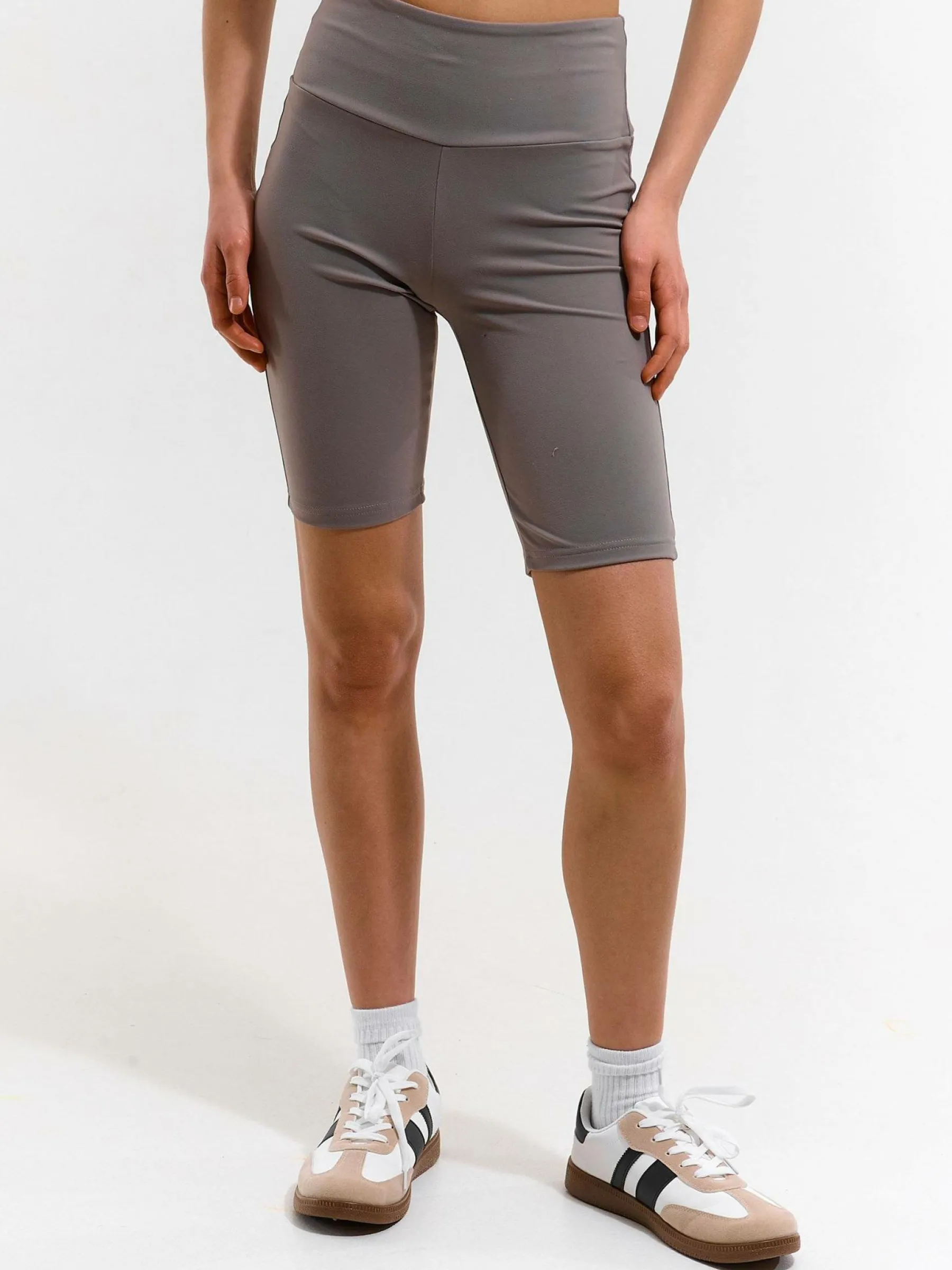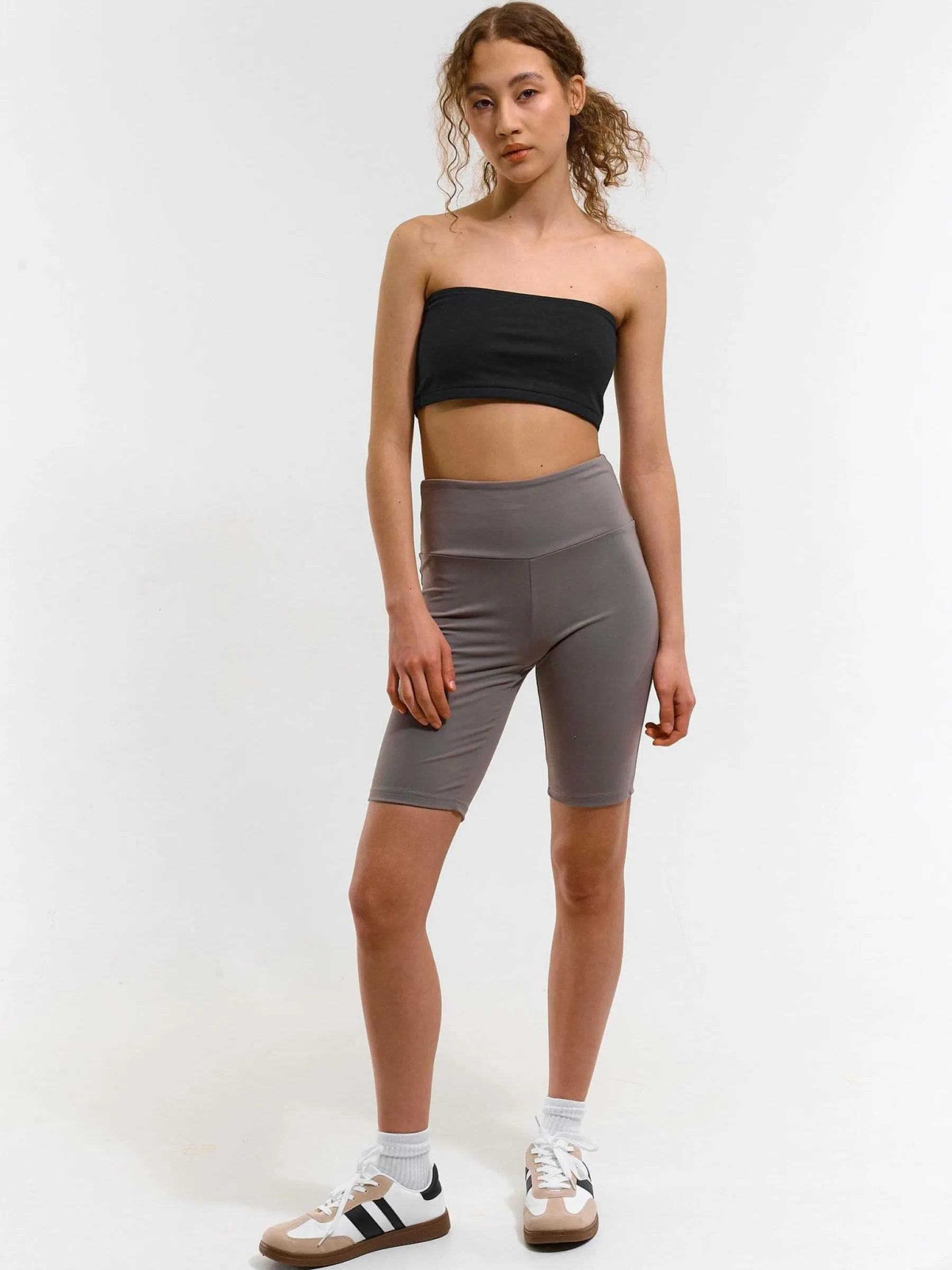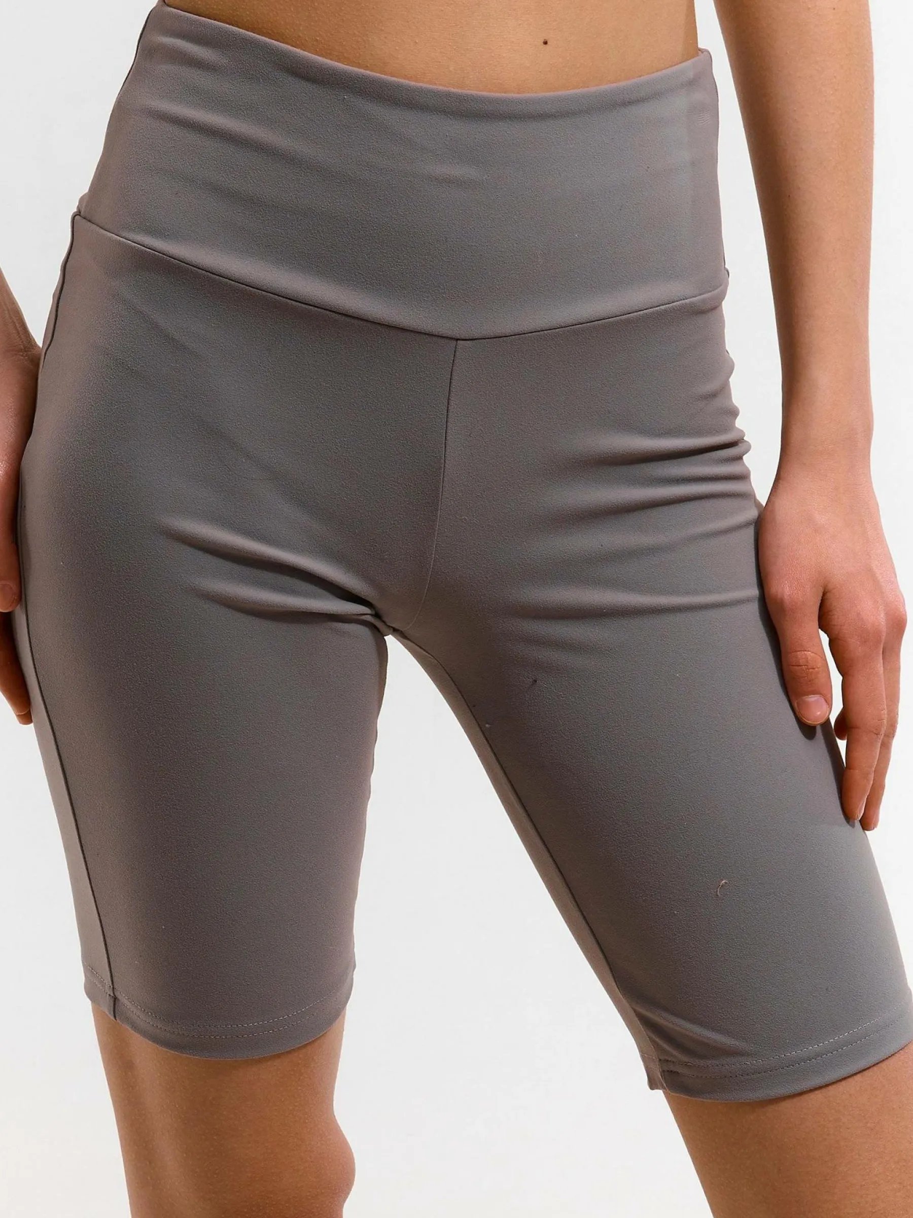 Kolor: szaryKrój: bikerTyp: spodenkiDługość: krótkiPattern style: pojedynczy kolorMateriał: syntetycznePłeć: kob…